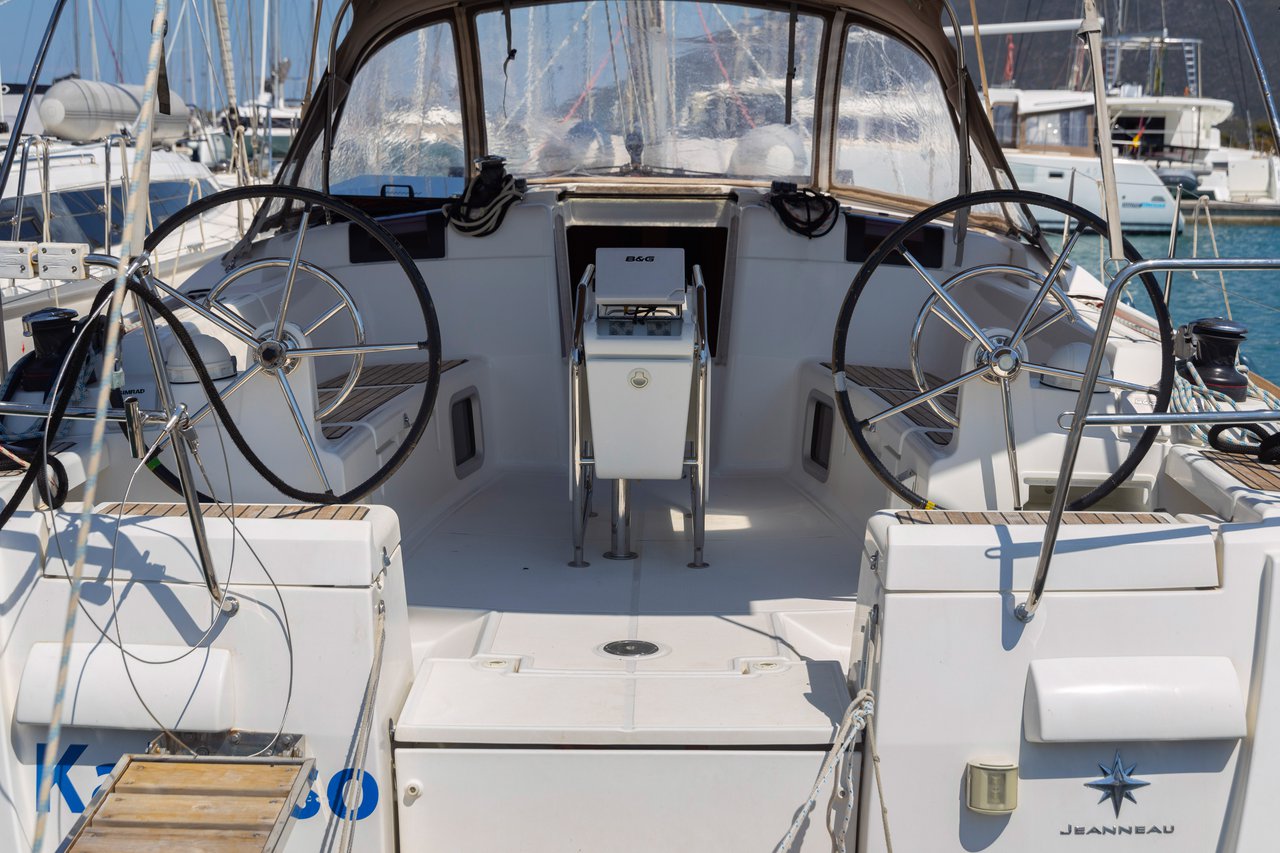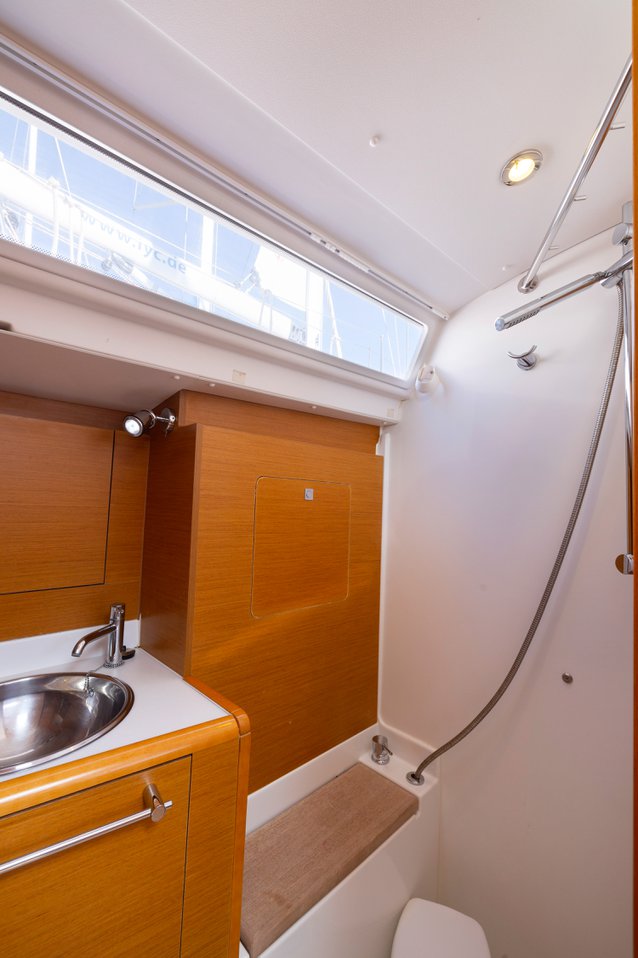 | Outside | Anker mit Kette, Badeleiter, Badeplattform, Biminitop, Bootshaken, Cockpitdusche, Cockpitlautsprecher, Cockpitpolster, Cockpittisch, Deckbürste, elektr. Ankerwinsch, Fender, Festmacherleinen, Kugelfender, Solaranlage, Sprayhood, Teak im Cockpit, Wasserkanister , Wasserschlauch, Windex |
