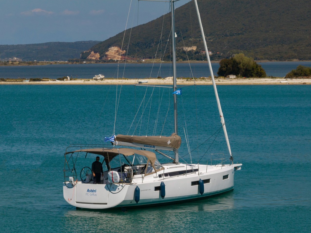 | Outside | Anker mit Kette, Badeleiter, Biminitop, Bootshaken, Cockpitdusche, Cockpitlautsprecher, Cockpitpolster, Cockpittisch, Deckbürste, elektr. Ankerwinsch, Fender, Festmacherleinen, Kugelfender, Solaranlage, Sprayhood, Teak im Cockpit, Wasserkanister , Wasserschlauch, Windex |