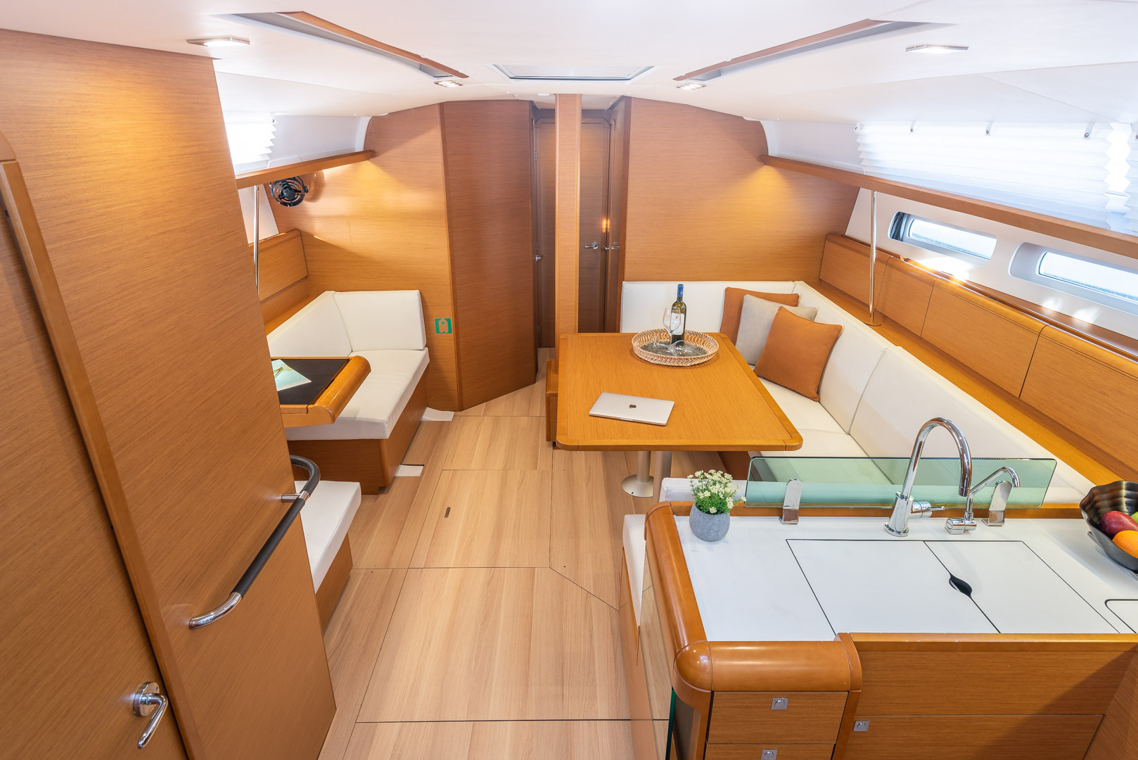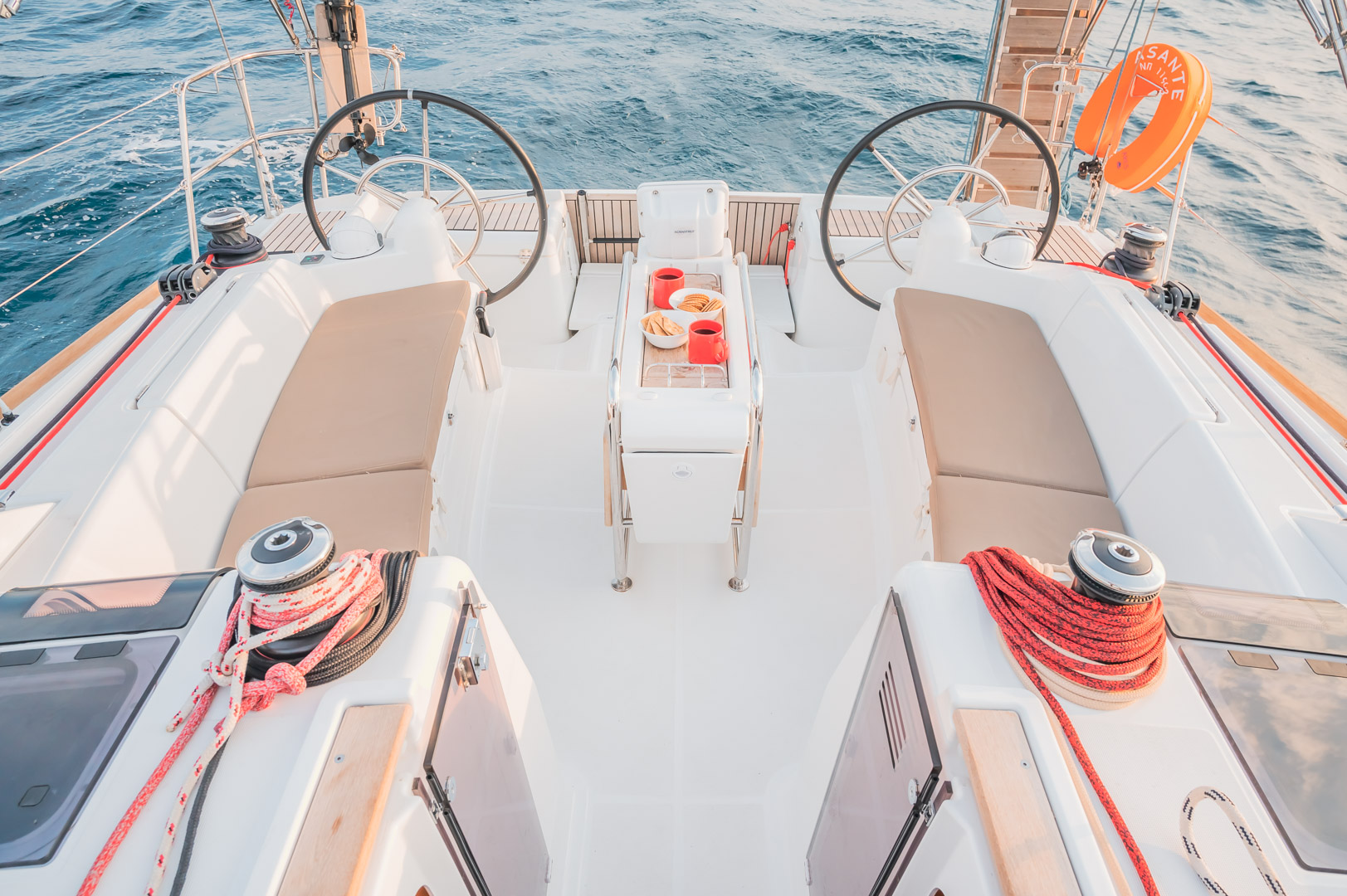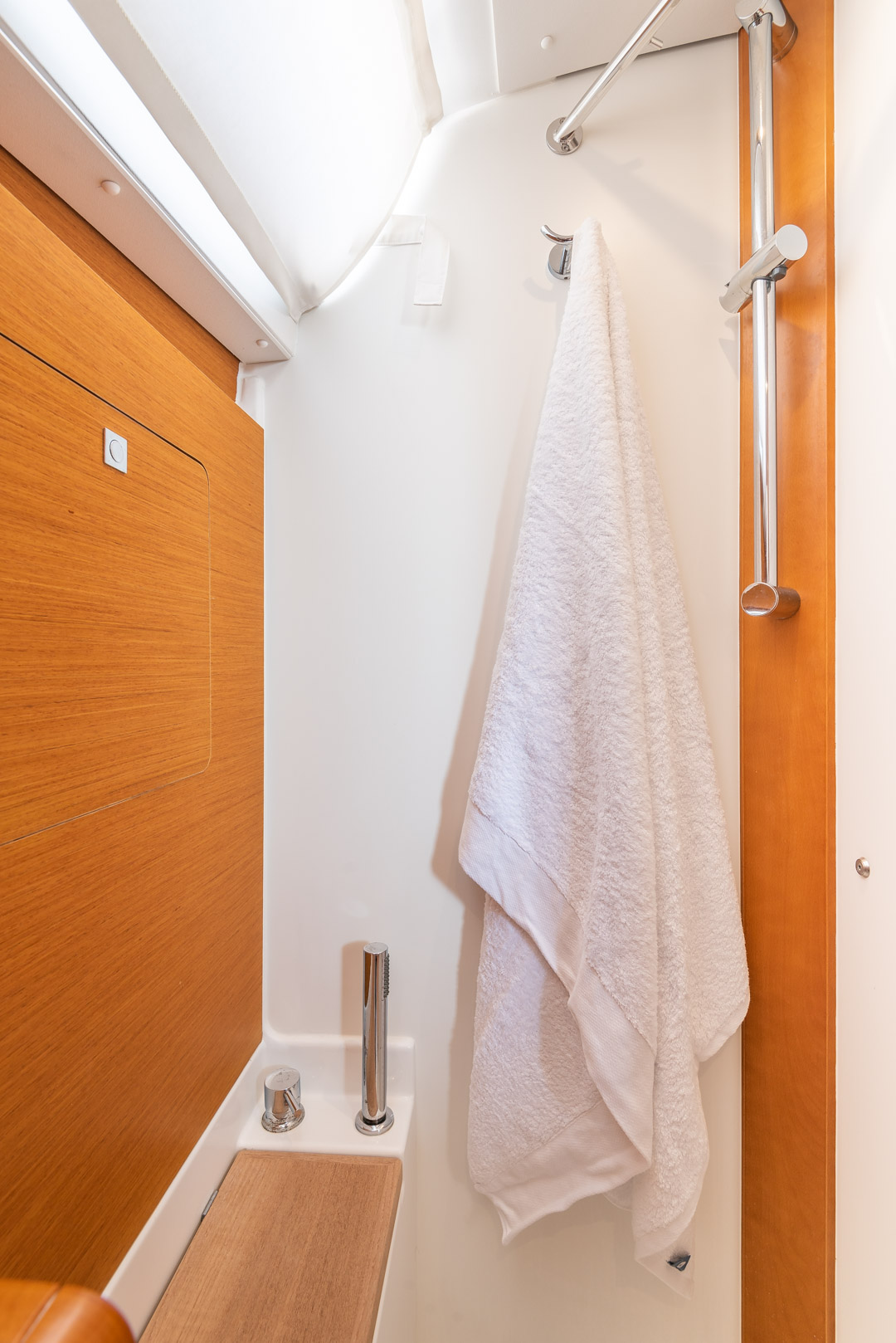 | Outside | Biminitop, Cockpitdusche, Cockpitlautsprecher, Cockpittisch, elektr. Ankerwinsch, Gangway, Schnorchelausrüstung, Solaranlage, Sprayhood |