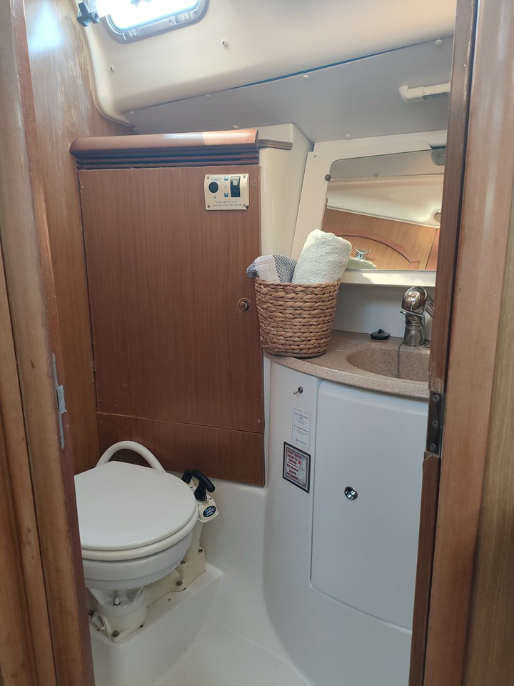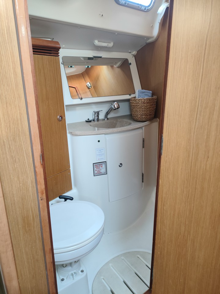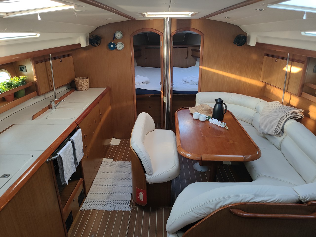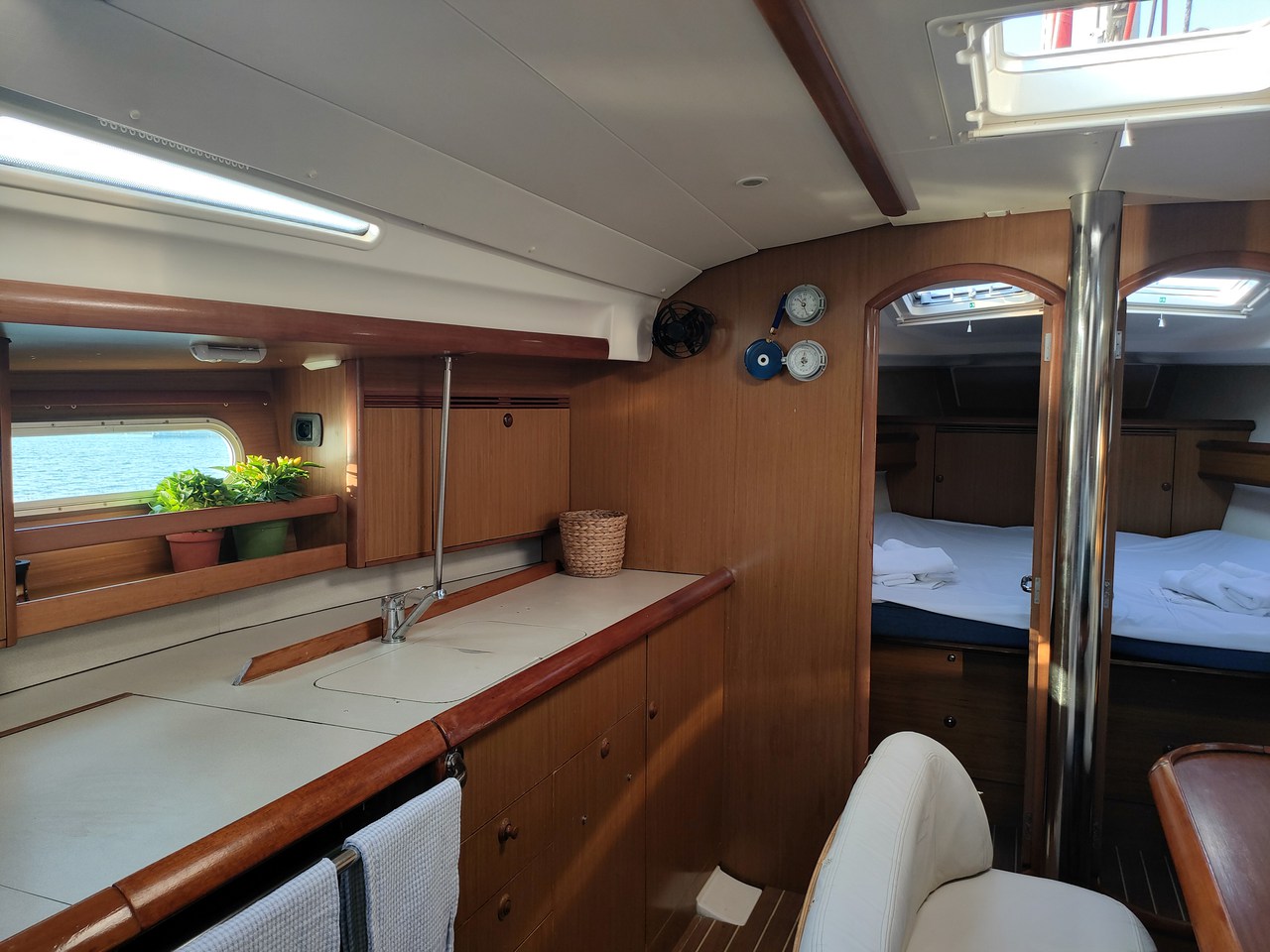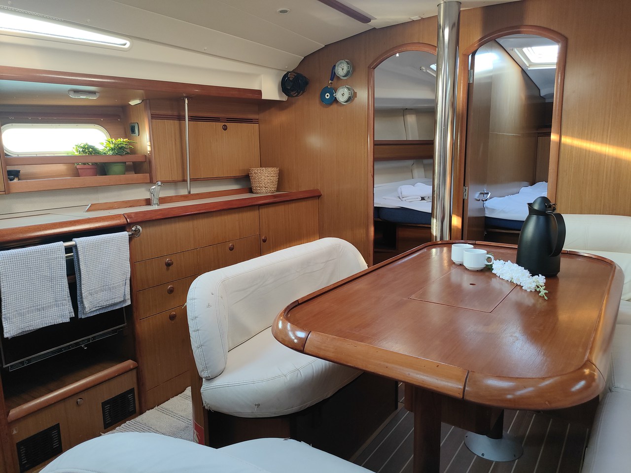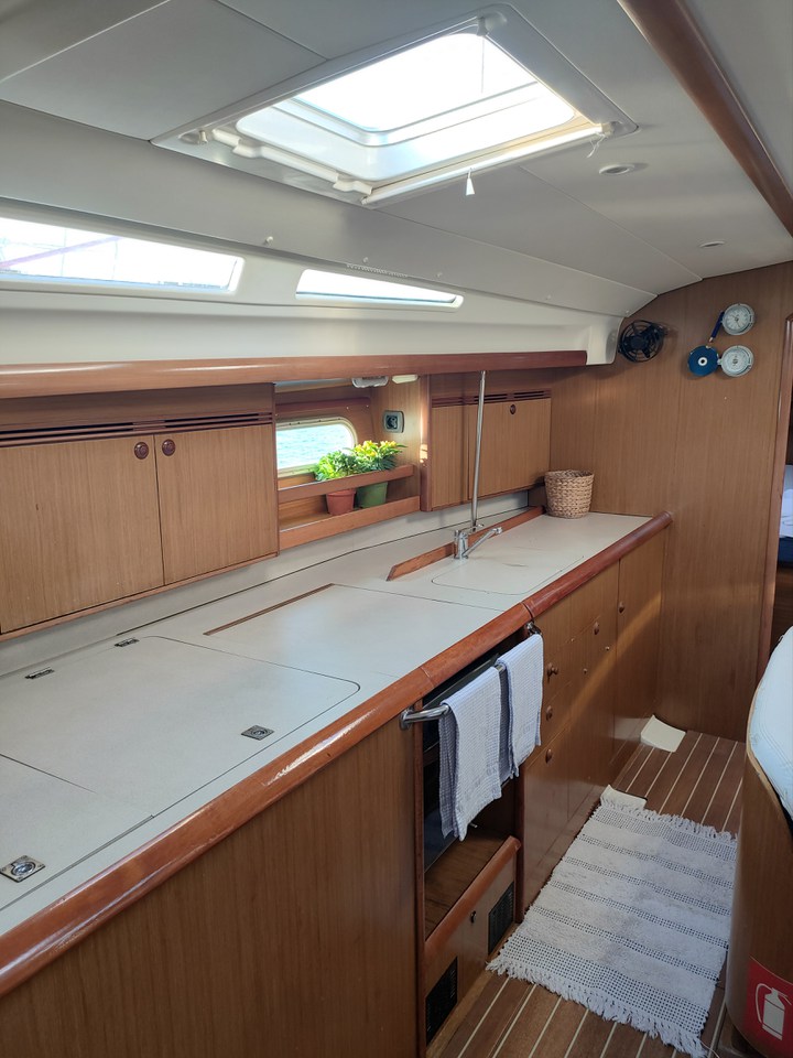 | Outside | 220 V-Landanschluss, Biminitop, Cockpitdusche, Cockpitlautsprecher, Cockpittisch, Cockpittisch mit Eisbox, elektr. Ankerwinsch, Gangway, Solaranlage, Sprayhood |