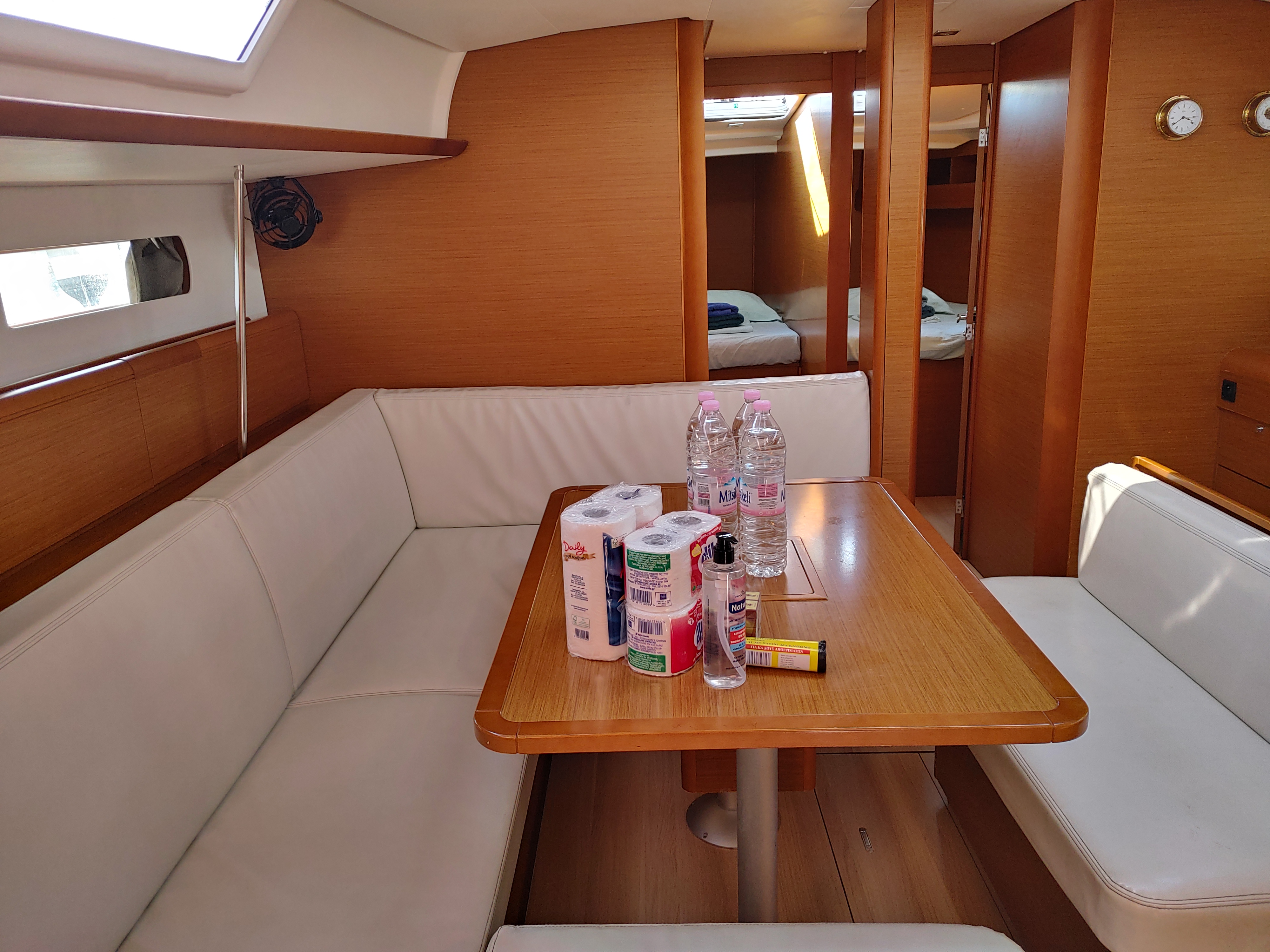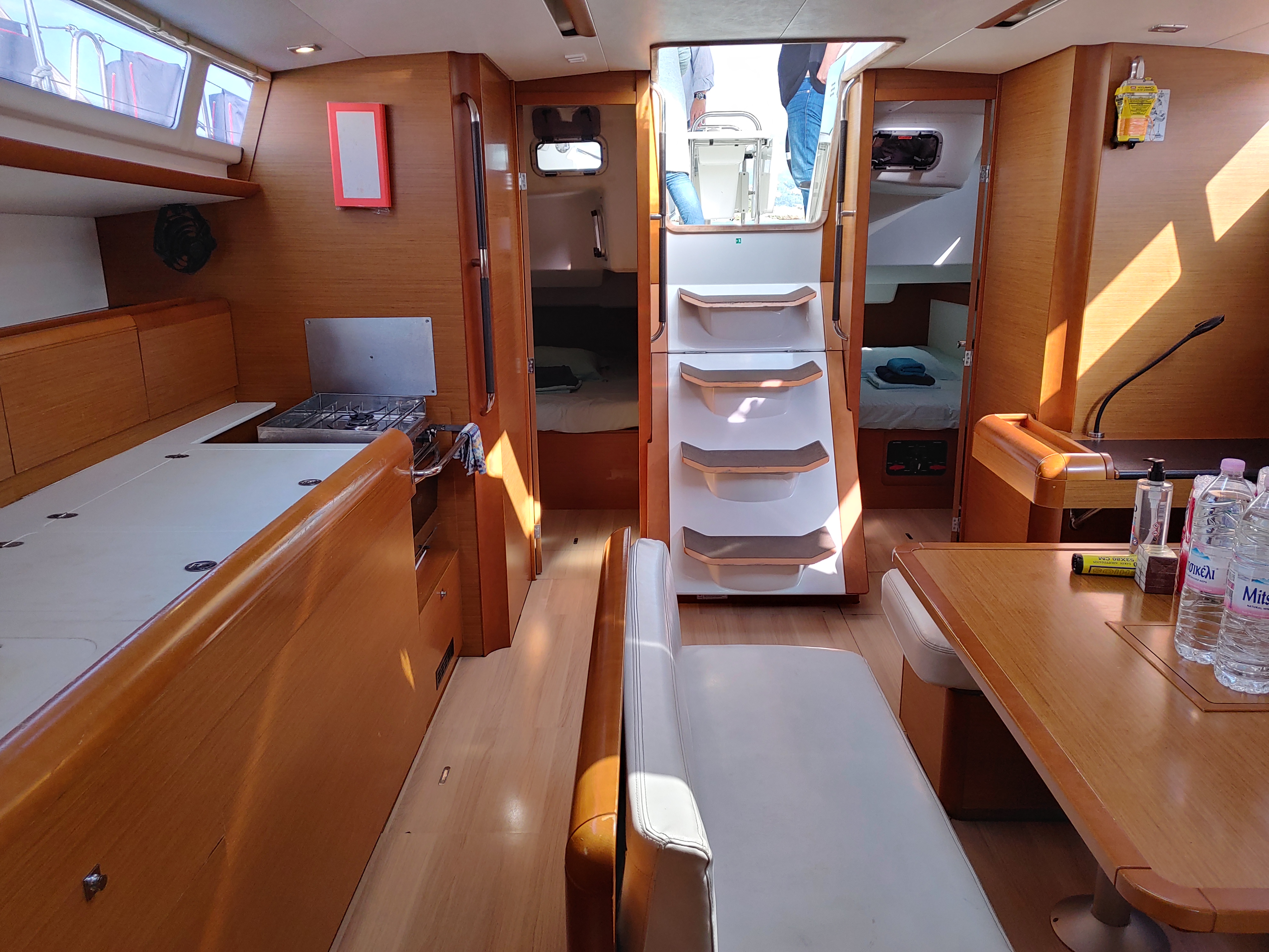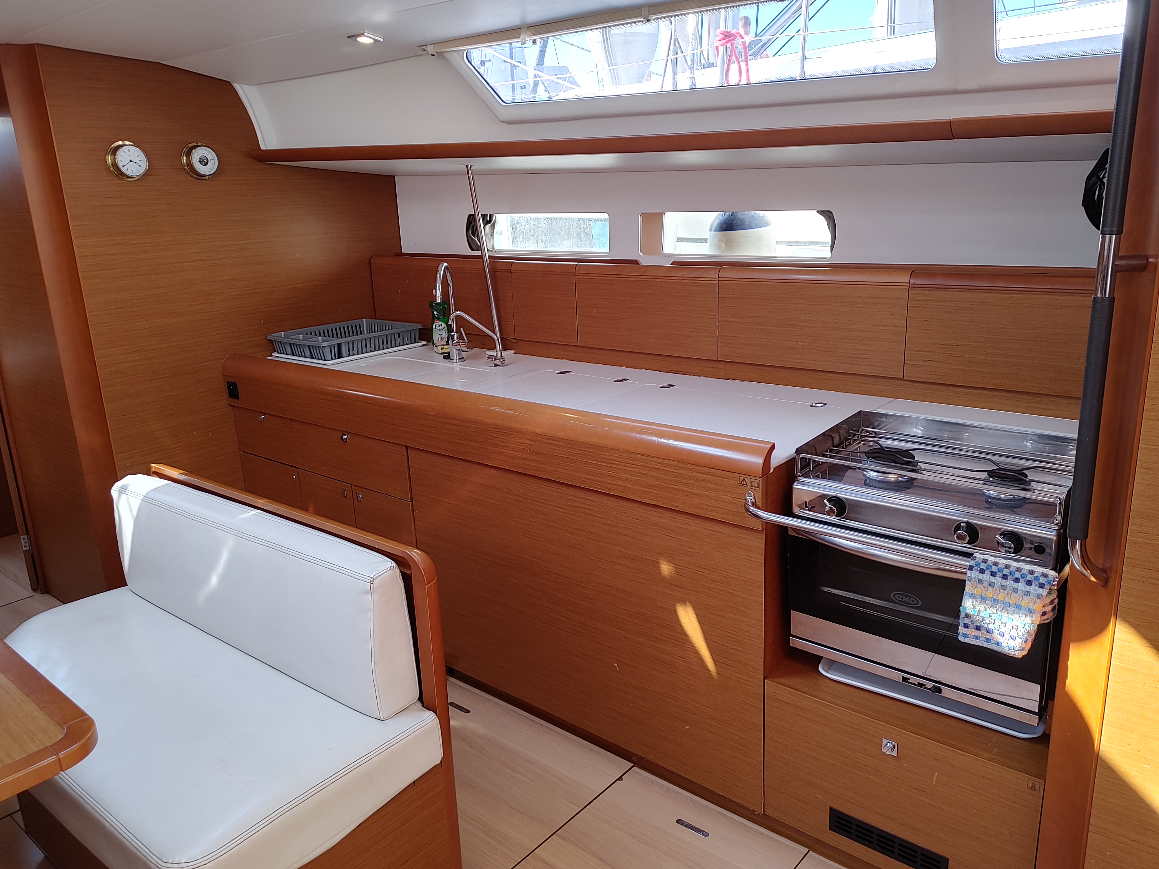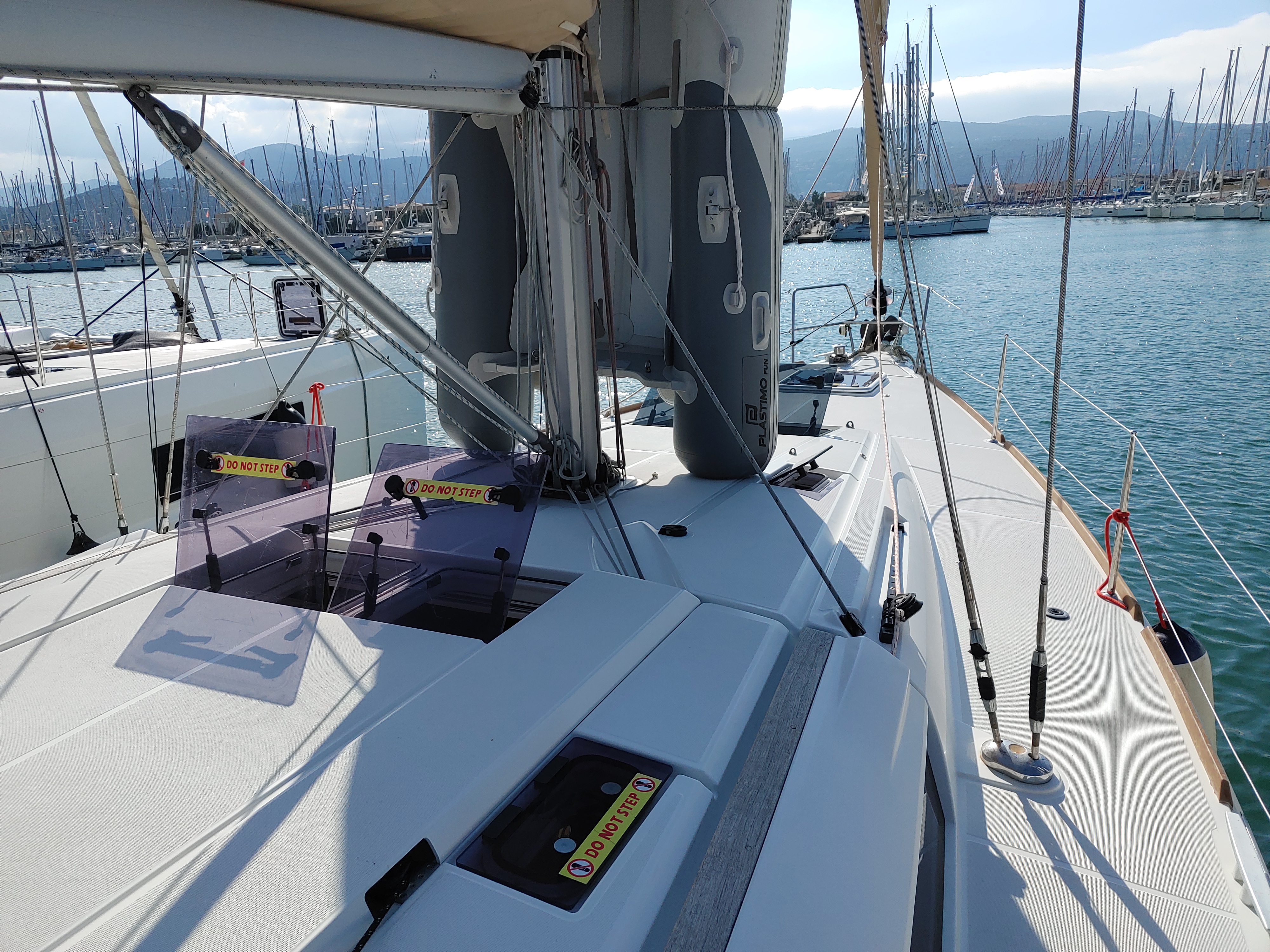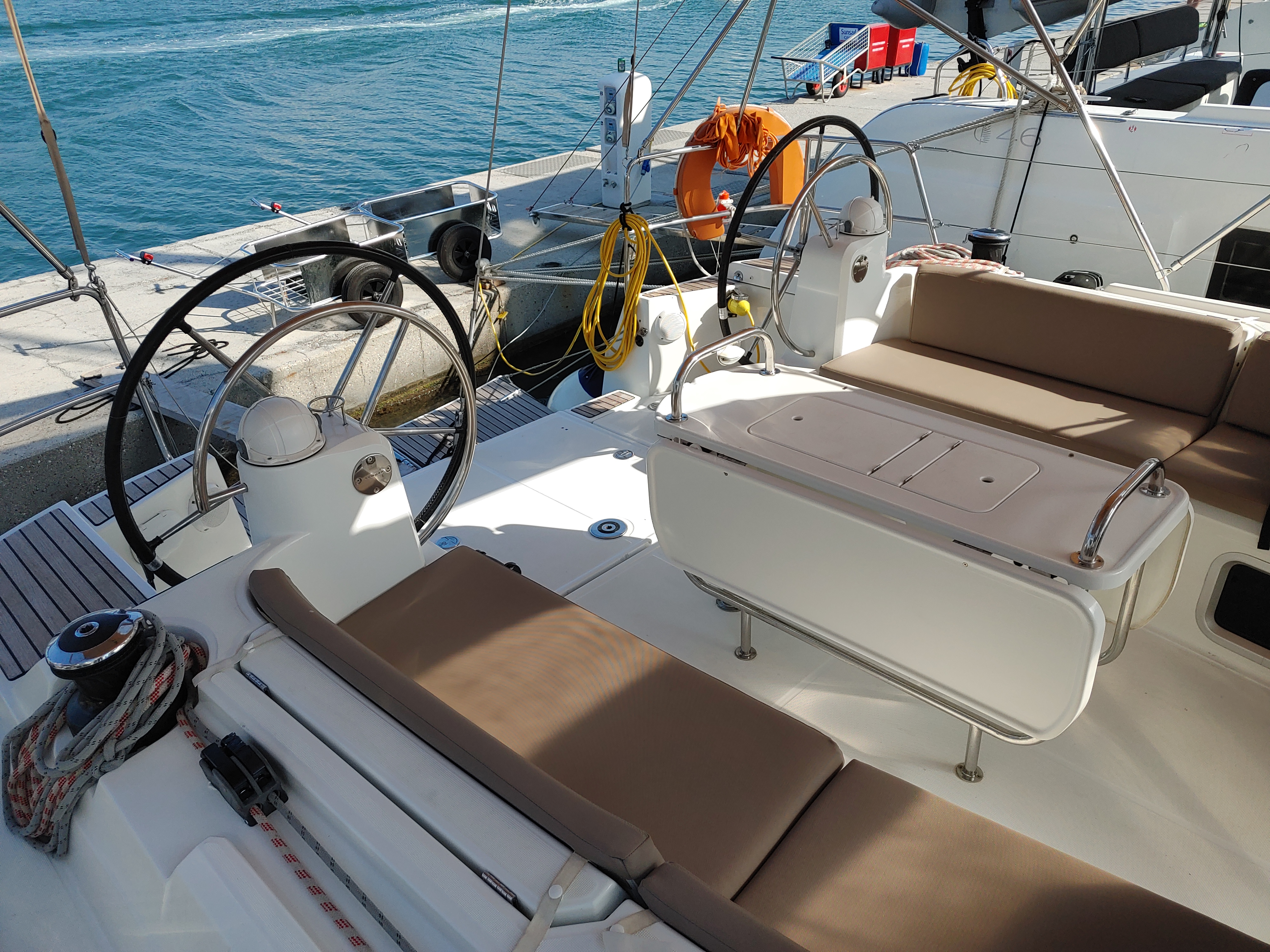 | Outside | Badeleiter, Biminitop, Cockpitdusche, Cockpitlautsprecher, Cockpitpolster, Cockpittisch, elektr. Ankerwinsch, Sprayhood |