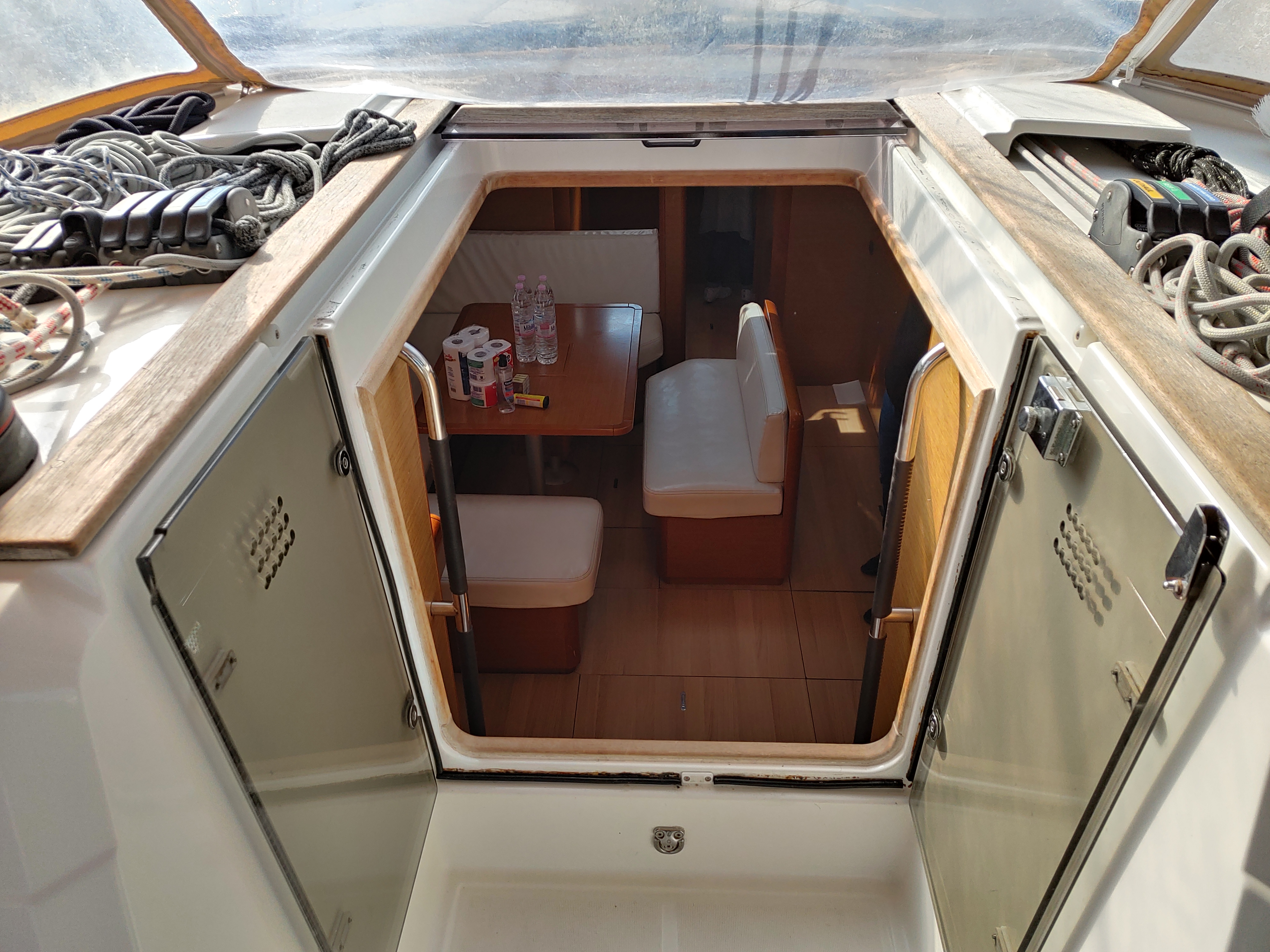 Einziges Manko am Boot war eine nicht durchsichtige Sprayhood. Uns hat es nicht gestört, wir hatten sie unten aber eine Familie mit kleinen Kindern hätte es stören können (Zugluft).
