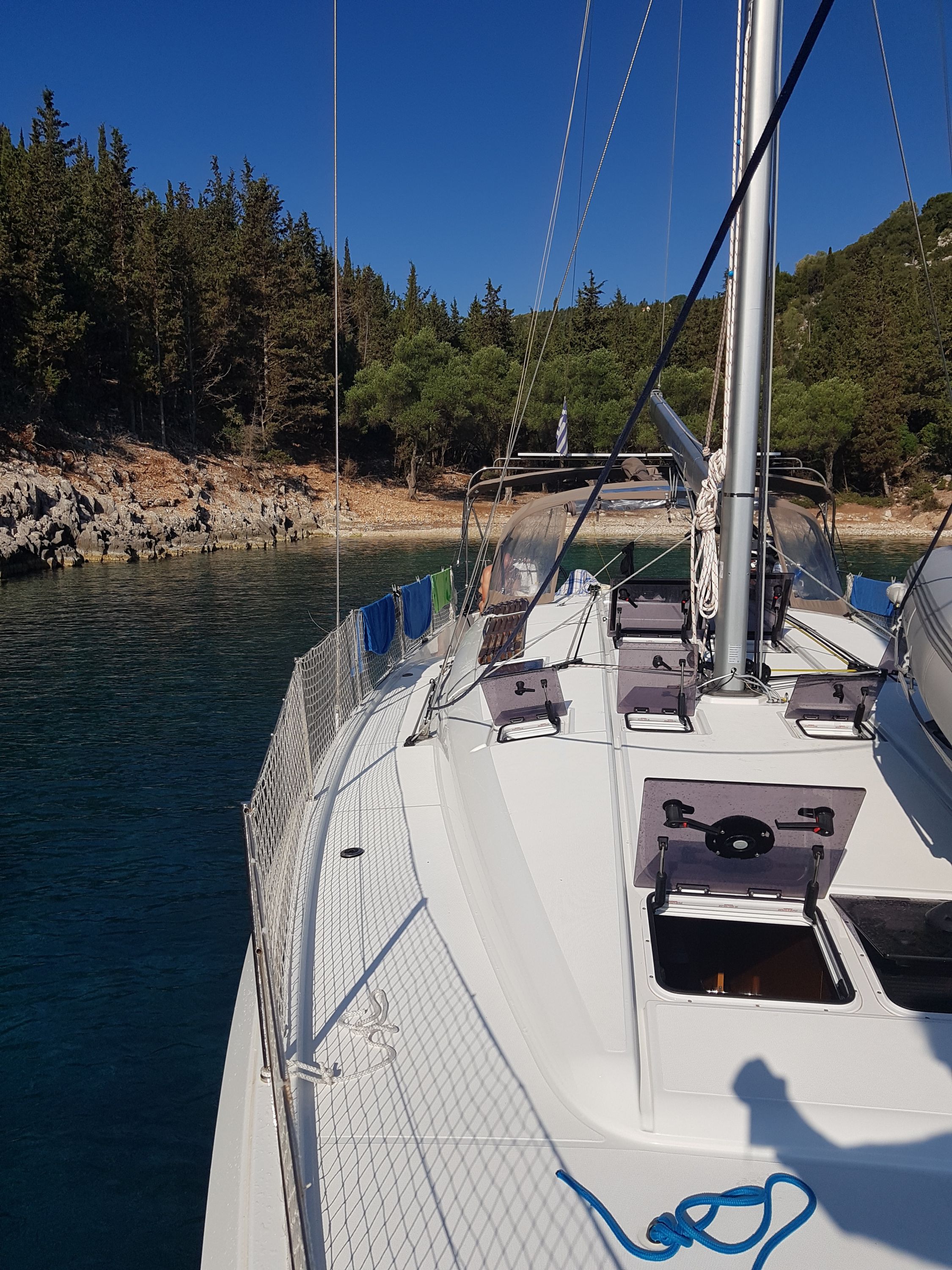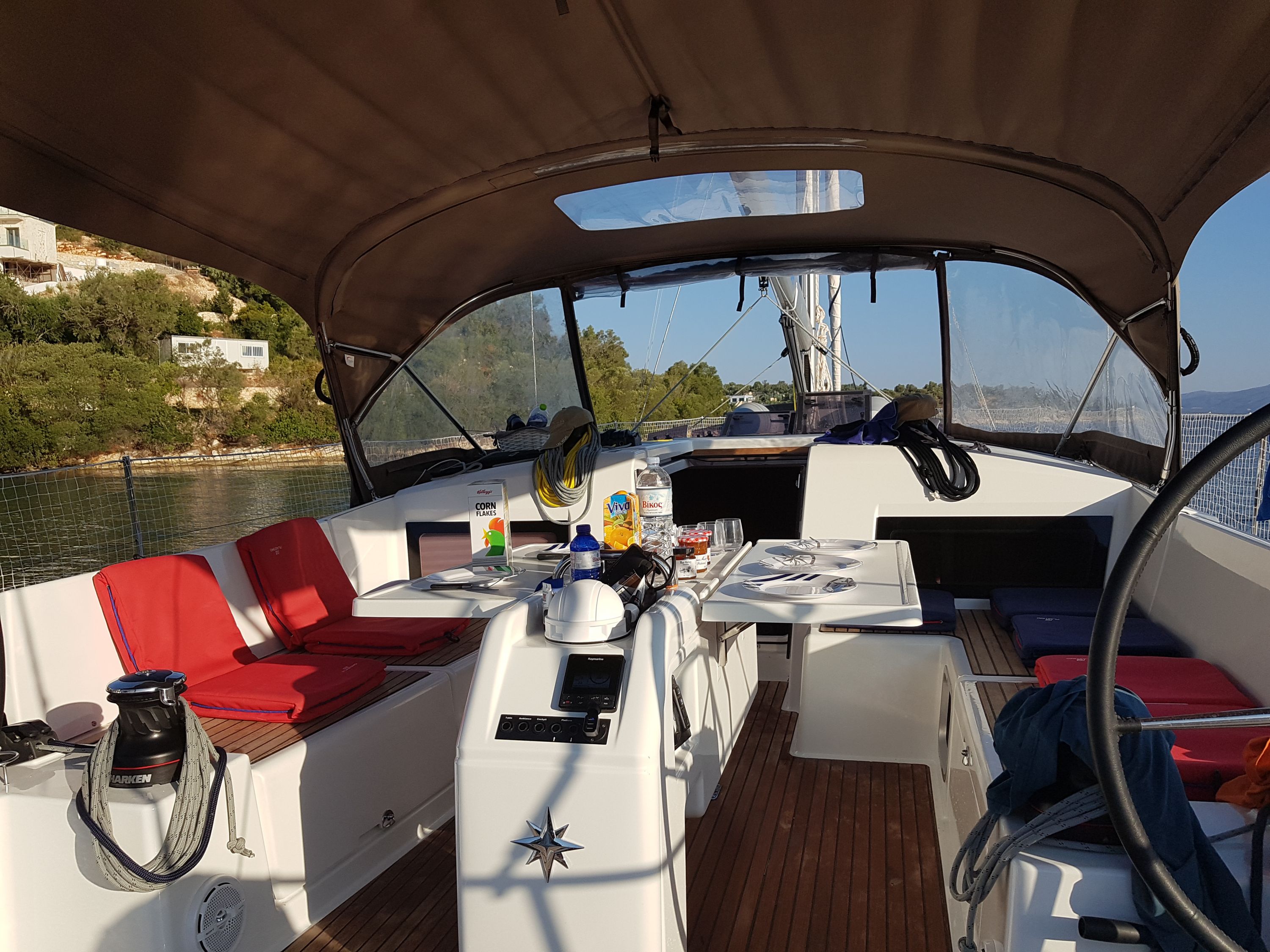 | Outside | Anker mit Kette, Badeleiter, Badeplattform, Biminitop, Bootshaken, Cockpitdusche, Cockpitlautsprecher, Cockpitpolster, Cockpittisch, Deckbürste, elektr. Ankerwinsch, Fender, Festmacherleinen, Kugelfender, Solaranlage, Sprayhood, Teak im Cockpit, Wasserkanister , Wasserschlauch, Windex |