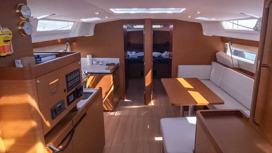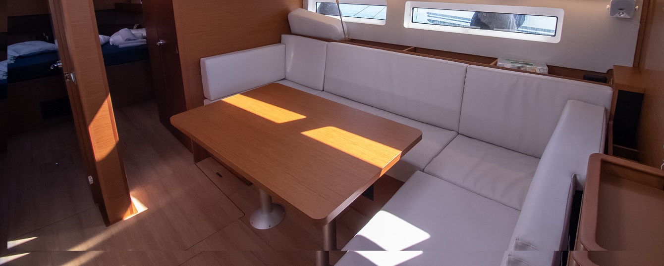 | Inside | Gasherd, Generator, Klimaanlage (ohne Landstrombedarf), Kühlschrank, Radio mit USB und Bluetooth, Salontisch absenkbar, USB Steckdosen in den Kabinen, Ventilatoren in Kabinen, WC (elektr.) |