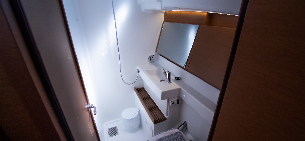 | Outside | Ankerwinsch, Biminitop, Cockpitdusche, Cockpitlautsprecher, Cockpittisch, elektr. Ankerwinsch, Solaranlage, Sprayhood |