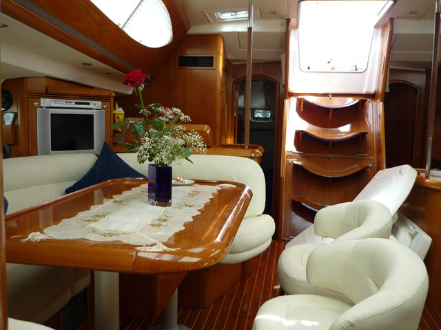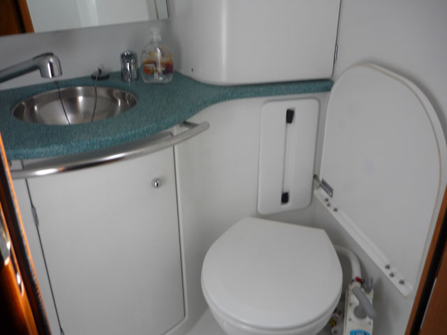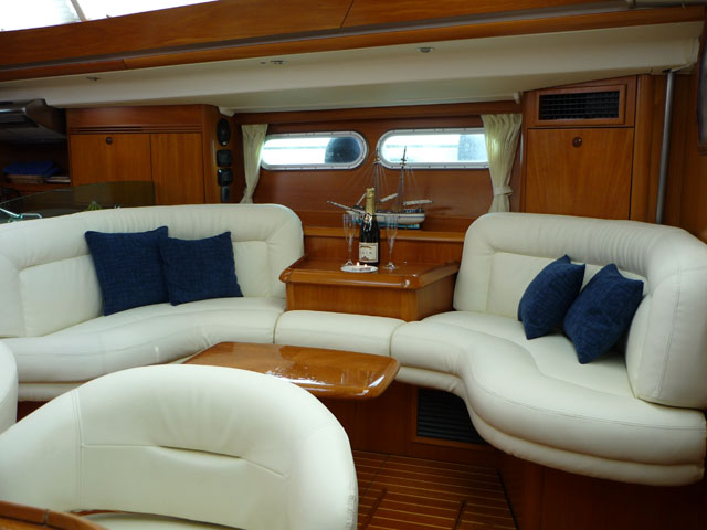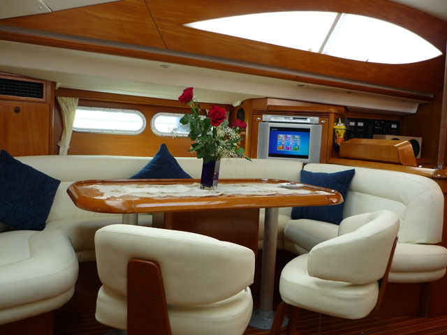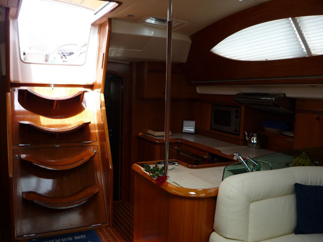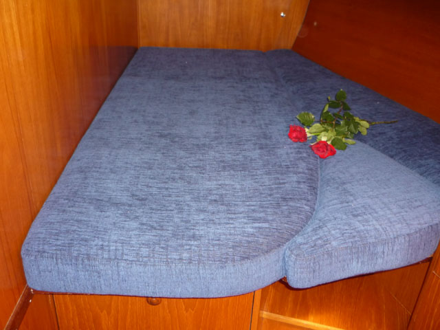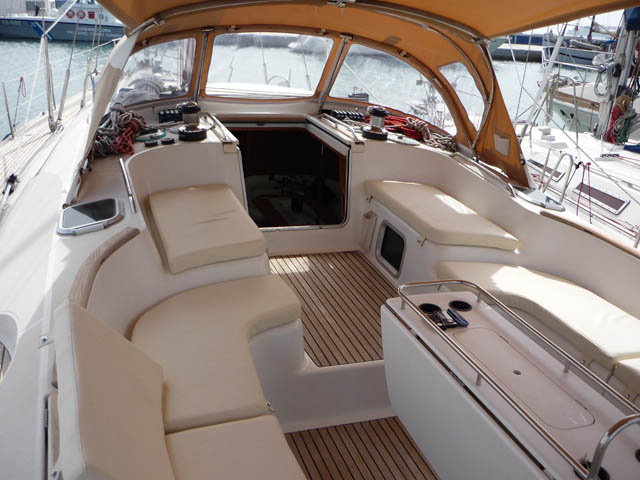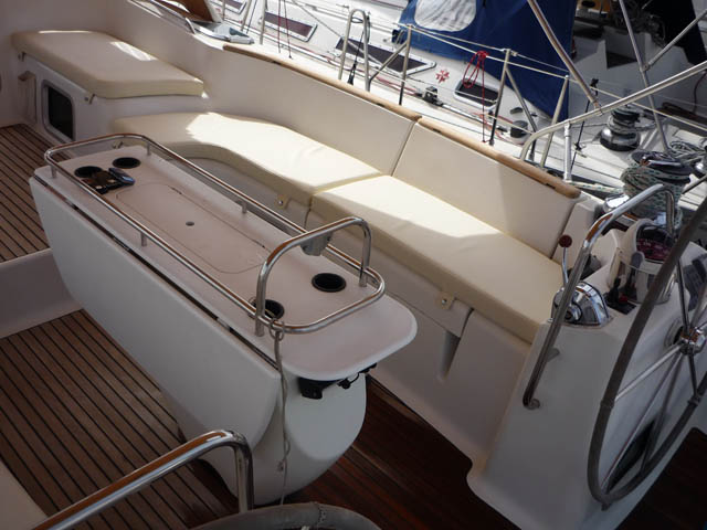| Outside | 220 V-Landanschluss, Biminitop, Cockpitpolster, Deckpolster, elektr. Ankerwinsch, elektr. Winsch, Gangway, Solaranlage, Sprayhood, Teak im Cockpit, Teakdeck |