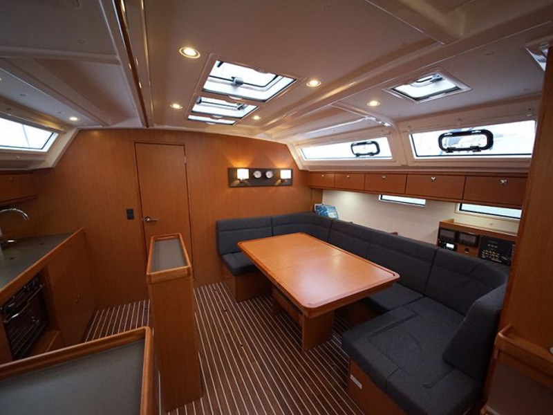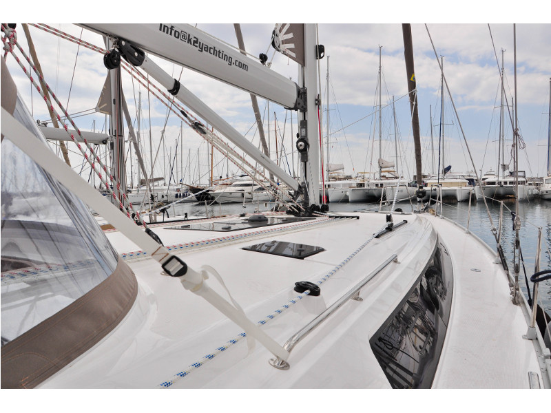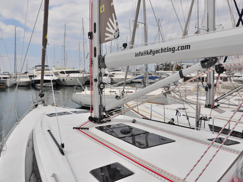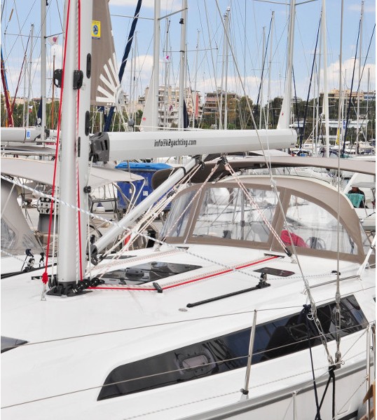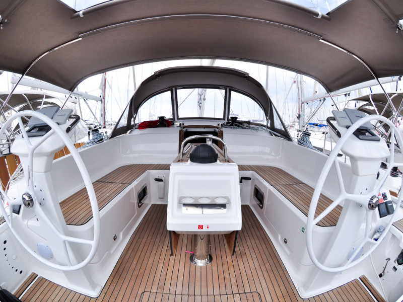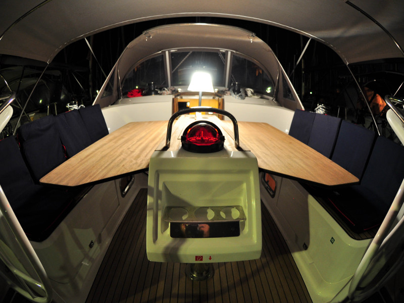 | Outside | Badeleiter, Biminitop, Cockpitlautsprecher, Cockpittisch, elektr. Ankerwinsch, Gangway, Solaranlage, Sprayhood, Teak im Cockpit |