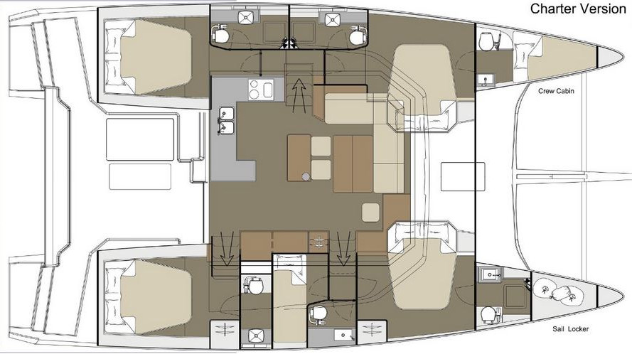 | Inside | Gefrierschrank, Generator, Inverter 12V/220V, Kaffeemaschine, Klimaanlage (ohne Landstrombedarf), Kühlschrank, Radio mit CD und MP3, Watermaker |