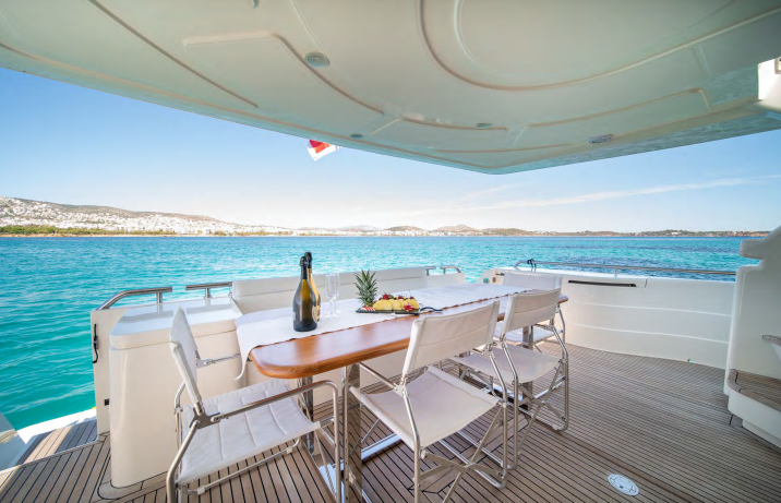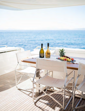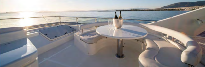 | Outside | Badeleiter, Badeplattform, Biminitop, Cockpitdusche, Grill, Jetski, Schnorchelausrüstung, Sonnensegel, Wasserski |