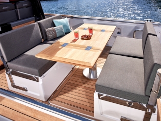 | Outside | Badeplattform, Biminitop, Cockpitlautsprecher, Grill, Heckdusche, Solaranlage |