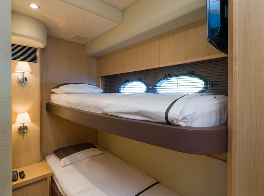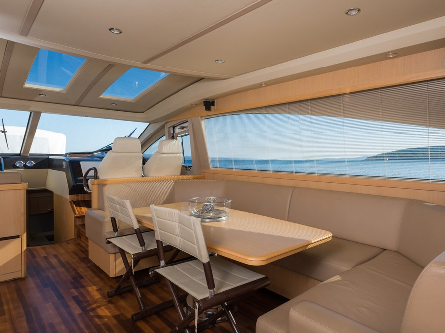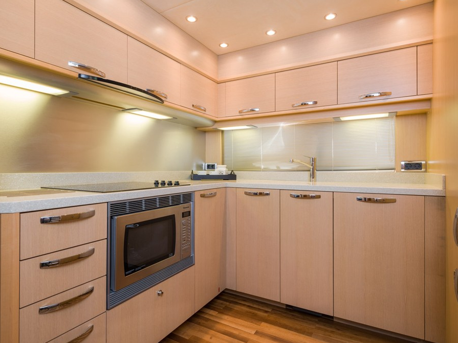 | Inside | Backofen, Dusche, DVD-Player, Eiswürfelmaschine, Gefrierschrank, Generator, Geschirrspüler, Heizung, Inverter 12V/220V, Kaffeemaschine, Klimaanlage (ohne Landstrombedarf), Kühlschrank, LCD Fernseher, Pantryausstattung, Radio mit CD und MP3, Spülbecken, Waschmaschine, Watermaker |