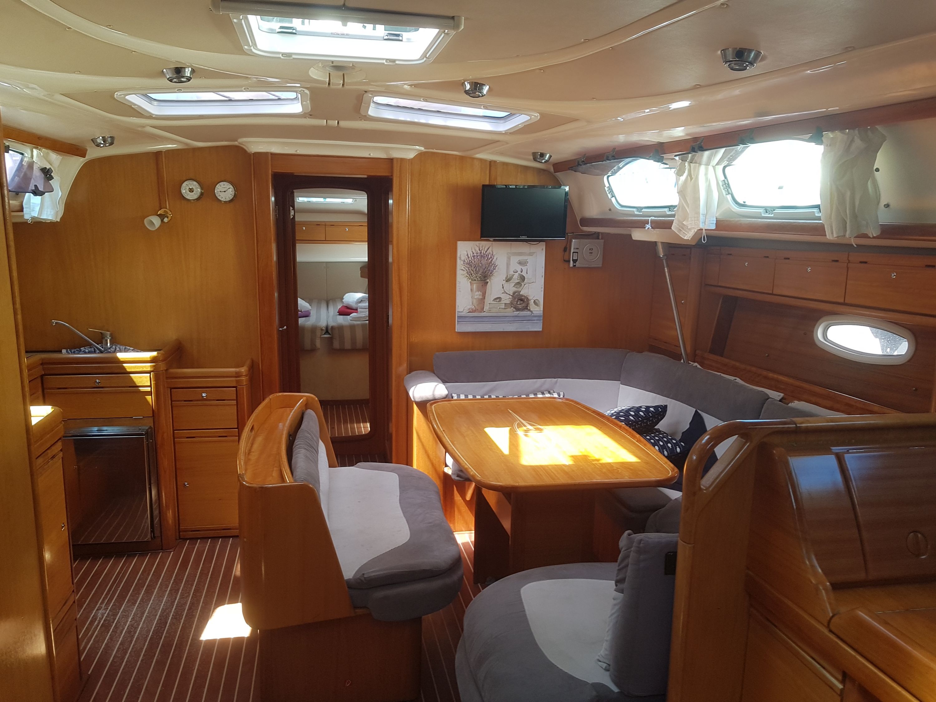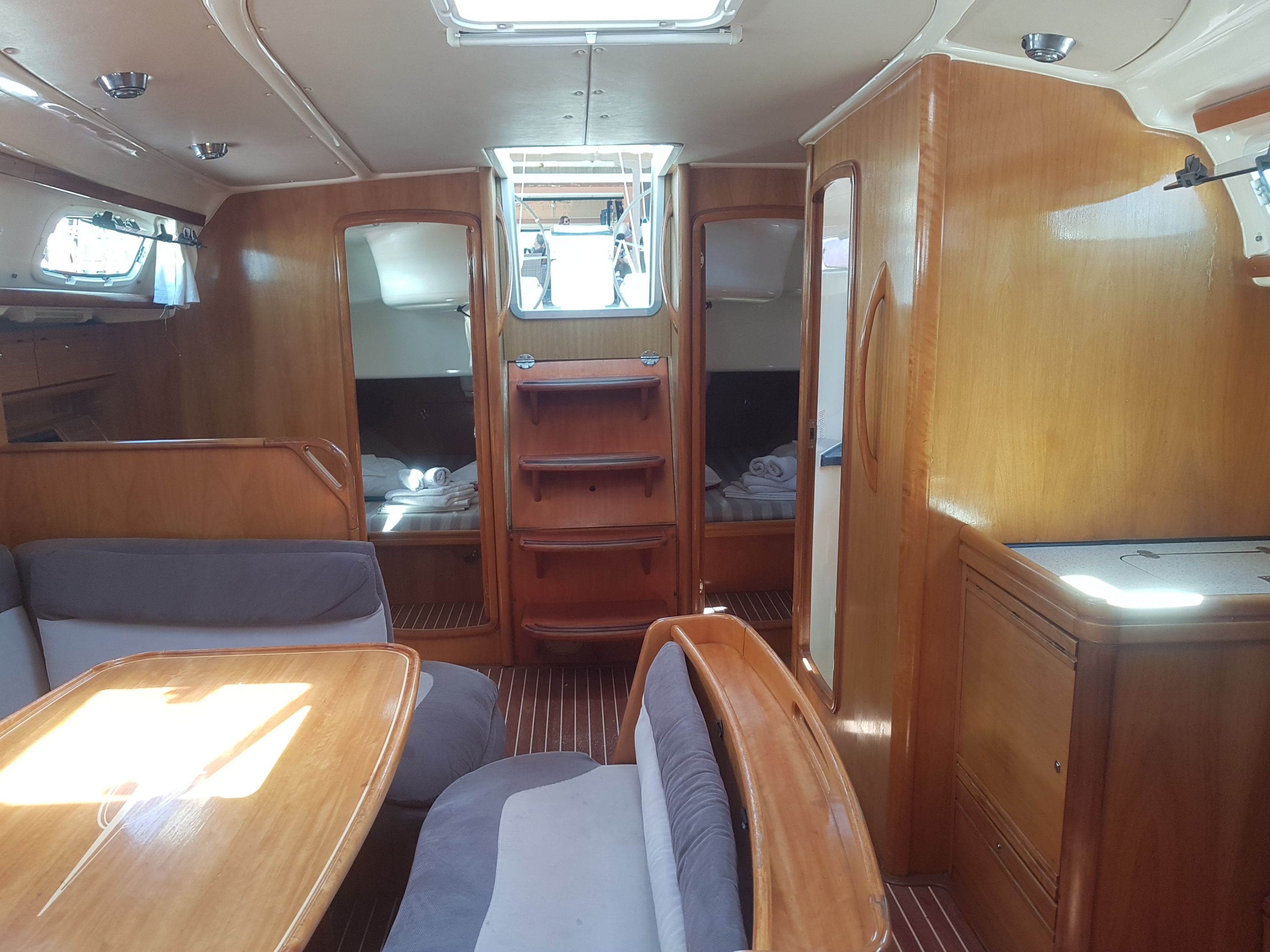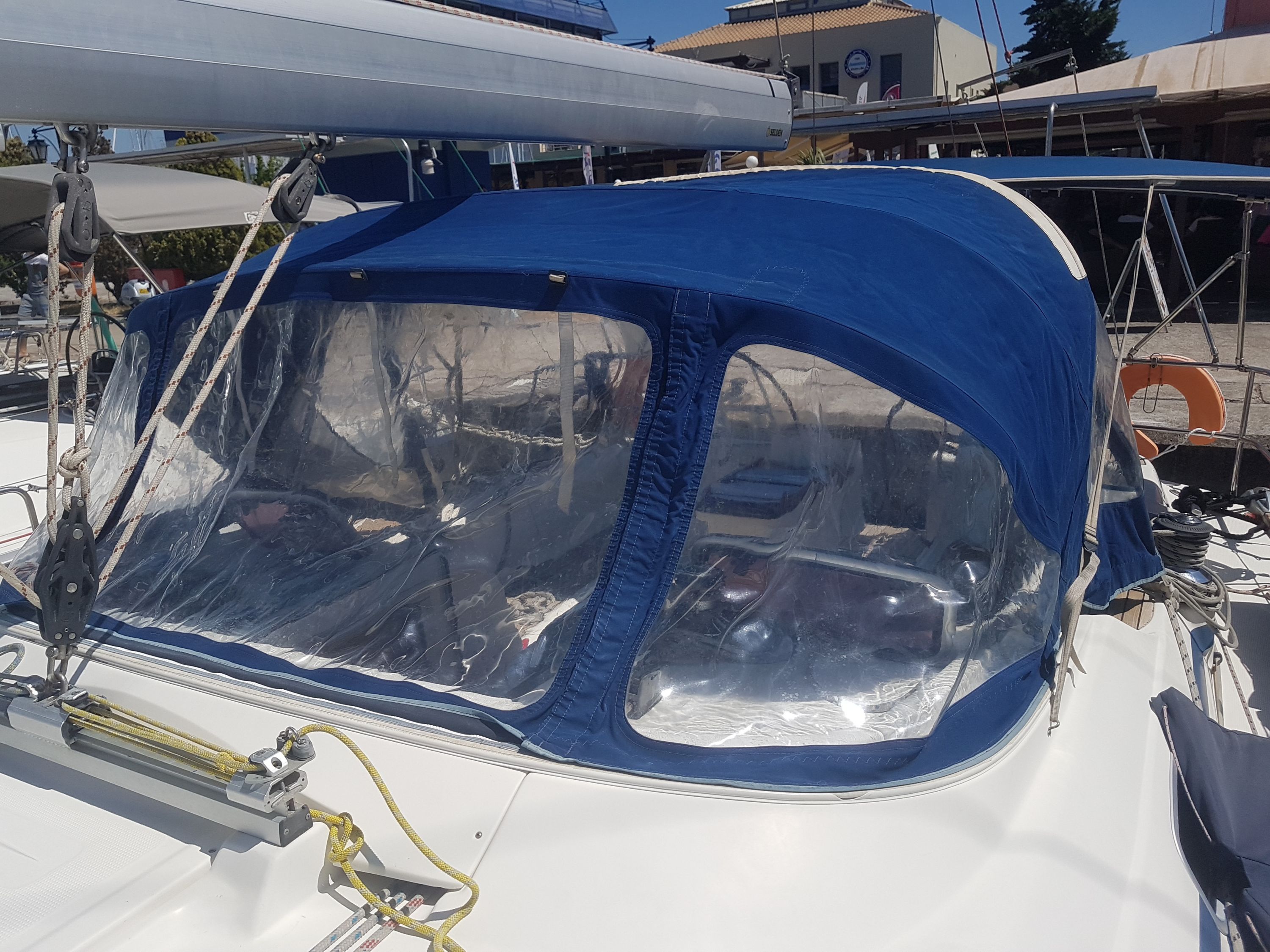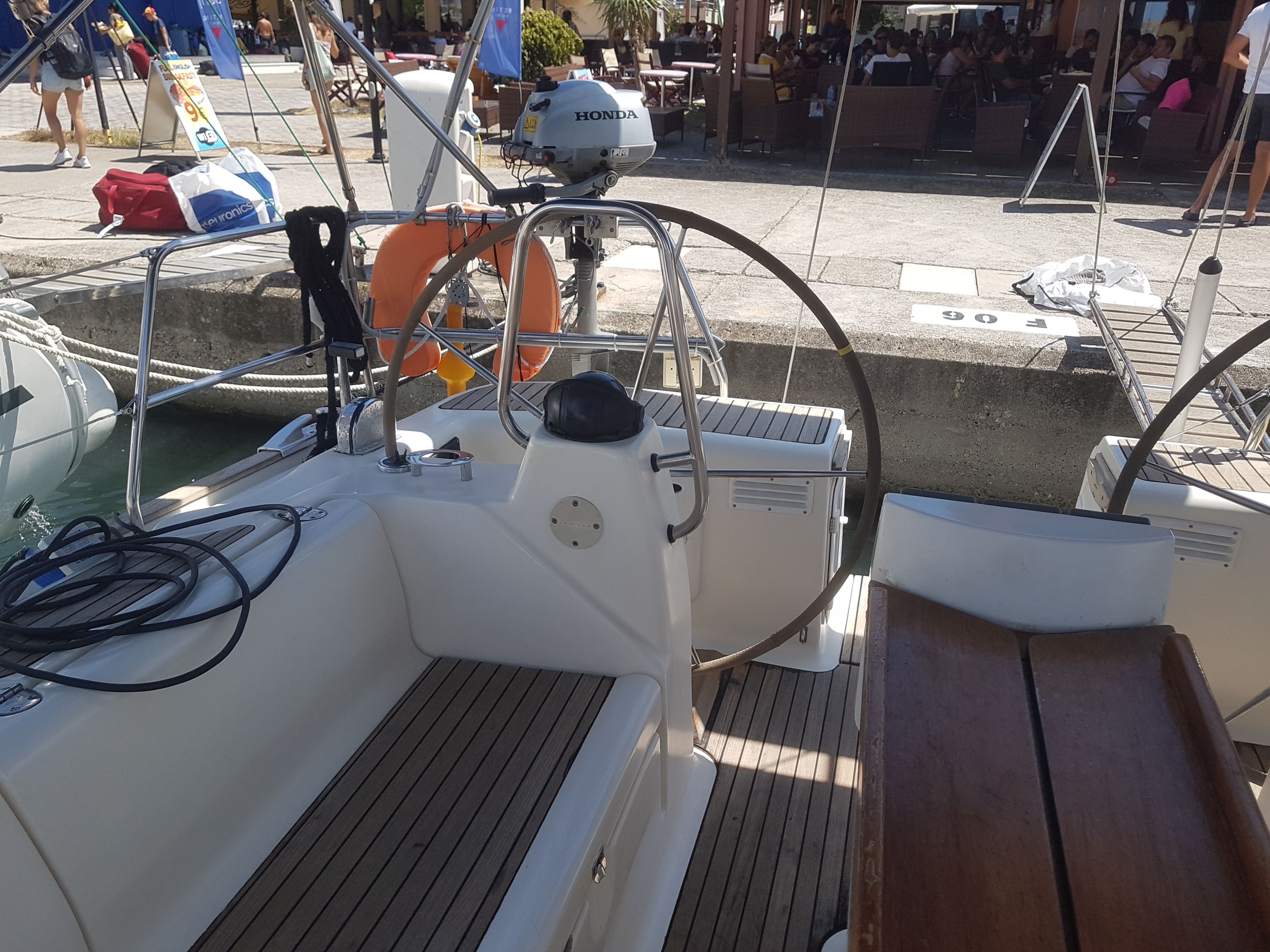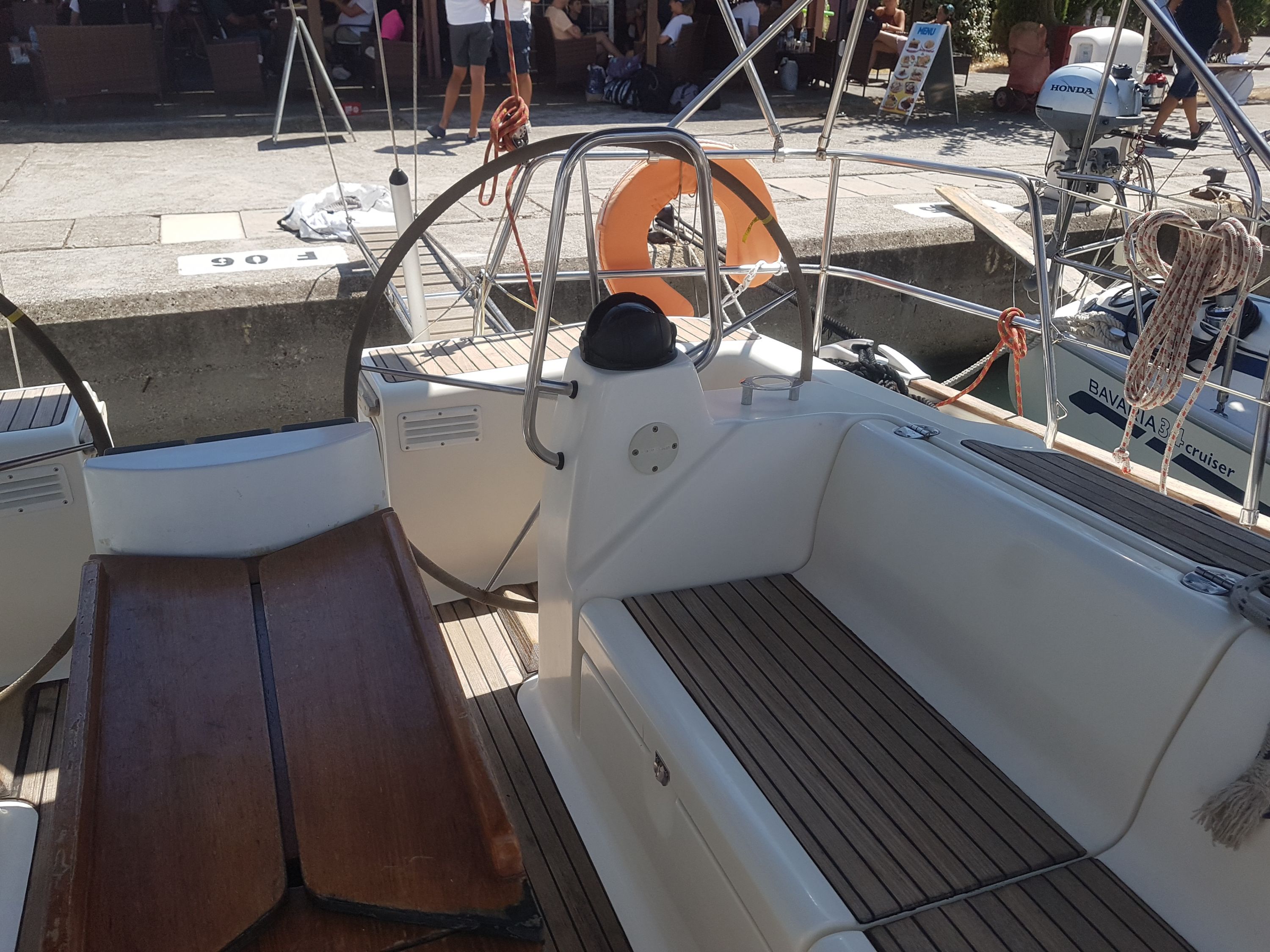 | Outside | 220 V-Landanschluss, Badeleiter, Biminitop, Bootshaken, Cockpitpolster, Cockpittisch, elektr. Ankerwinsch, Fender, Gangway, Schnorchelausrüstung, Solaranlage, Sonnensegel, Sprayhood, Treibanker, Windex |