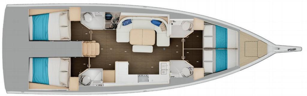 | Outside | Biminitop, Cockpitdusche, Cockpitpolster, Cockpittisch, elektr. Ankerwinsch, Gangway, Schnorchelausrüstung, Solaranlage, Sprayhood |