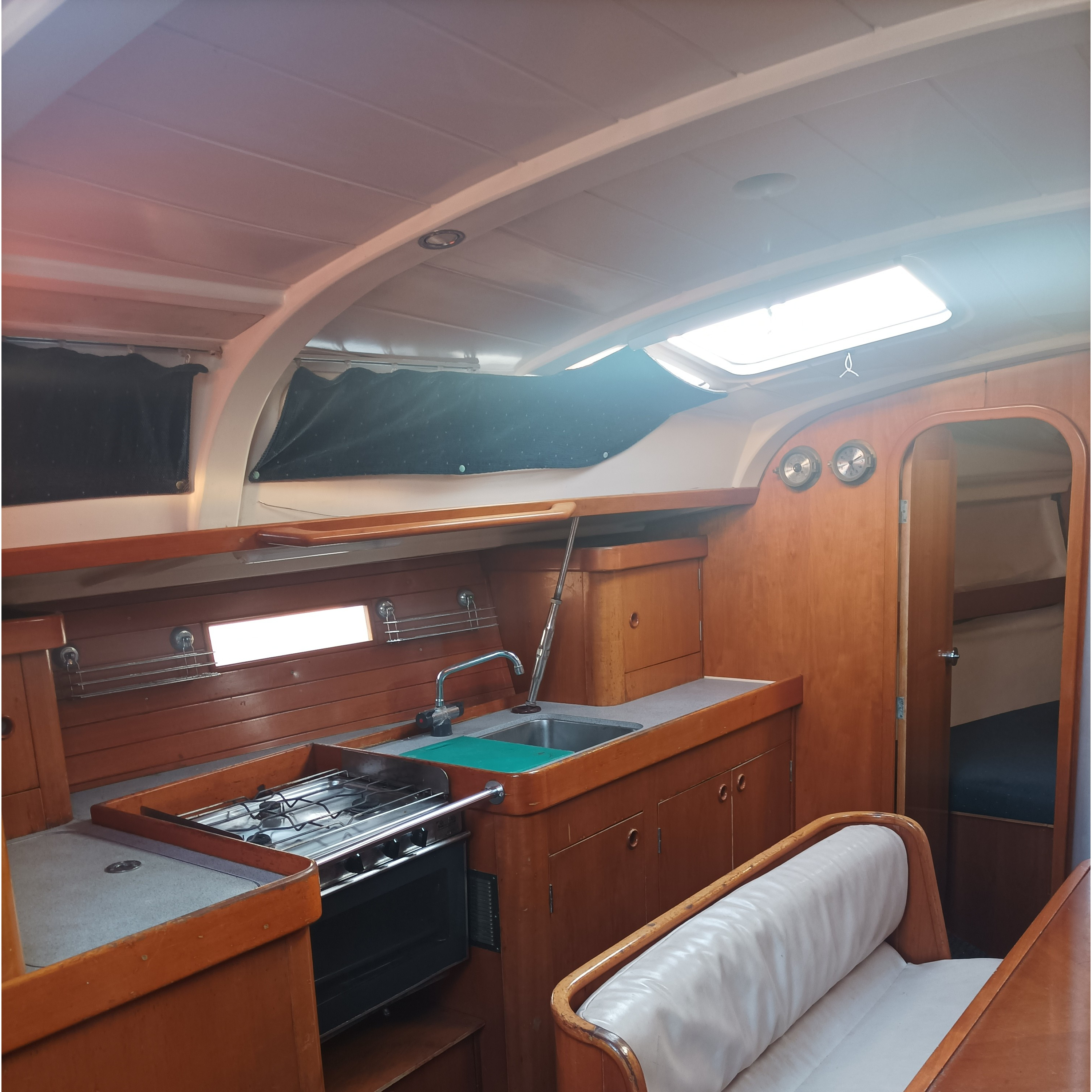 | Safety | Autopilot, Bordapotheke, Bordwerkzeug, Feststoffschwimmwesten, Feuerlöscher, Handbilgepumpe, Lifebelts, Motor-Ersatzteile, Notpinne, Reparaturset für Beiboot, Rettungsinsel, Rettungskragen, UKW-Funk, Zweitanker |