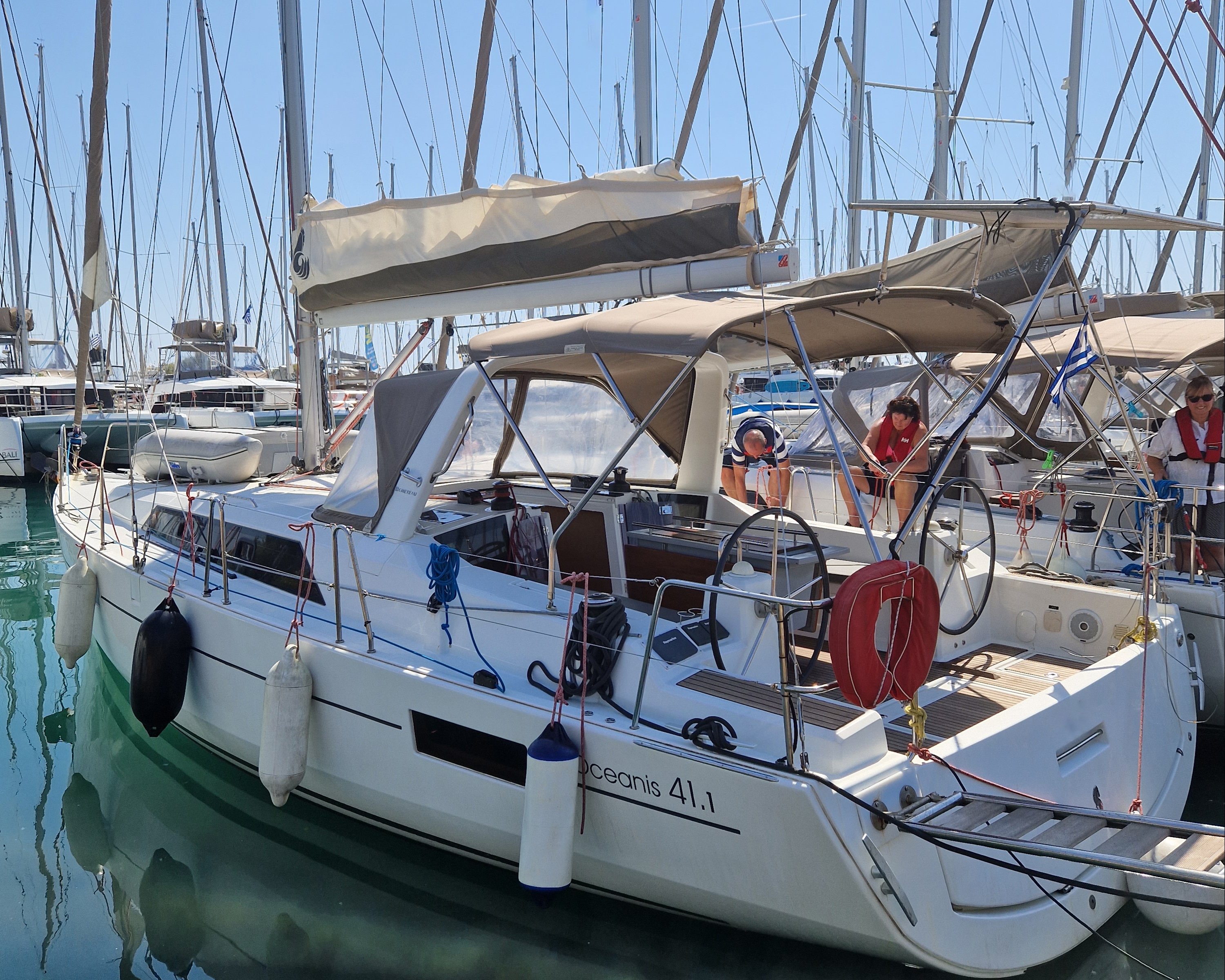 | Outside | 220 V-Landanschluss, Badeplattform, Biminitop, Cockpitlautsprecher, elektr. Ankerwinsch, Solaranlage, Sprayhood, Teak im Cockpit |