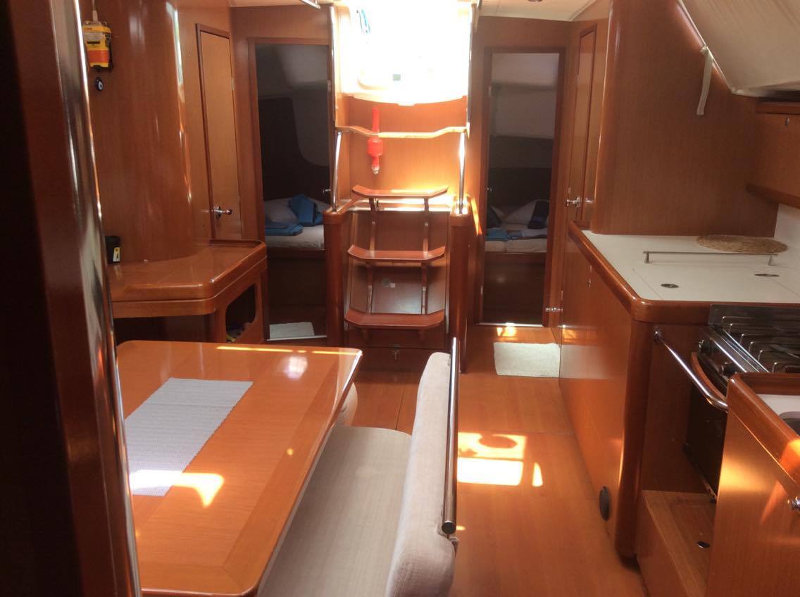 | Navigation | Barometer, Echolot, Fernglas, GPS mit Kartenplotter im Cockpit, Hafenhandbücher, Handpeilkompass, Kompass, Seekarten, Sumlog, Windmesser |
