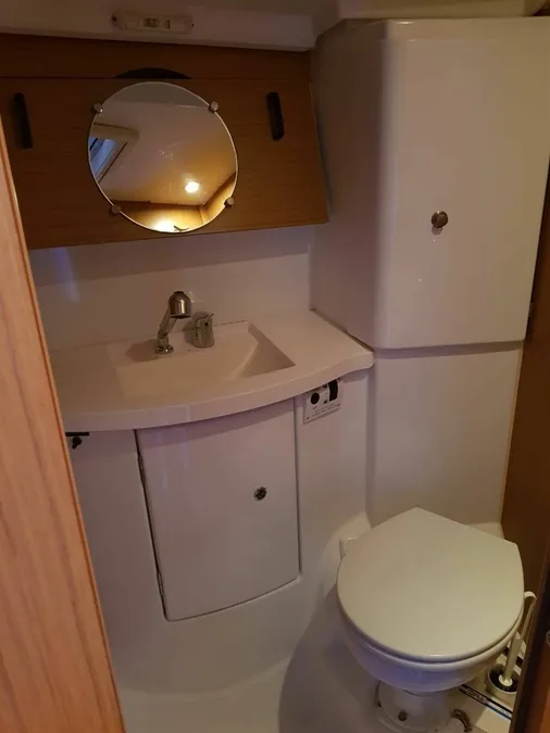 | Outside | Außendusche, Badeleiter, Badeplattform, Biminitop, Bootshaken, Cockpitlautsprecher, Cockpitpolster, Cockpittisch, Dieselkanister , elektr. Ankerwinsch, Fender, Festmacherleinen, Gangway, Kunststoff-Eimer (Pütz), Solaranlage, Wasserkanister , Winschen |