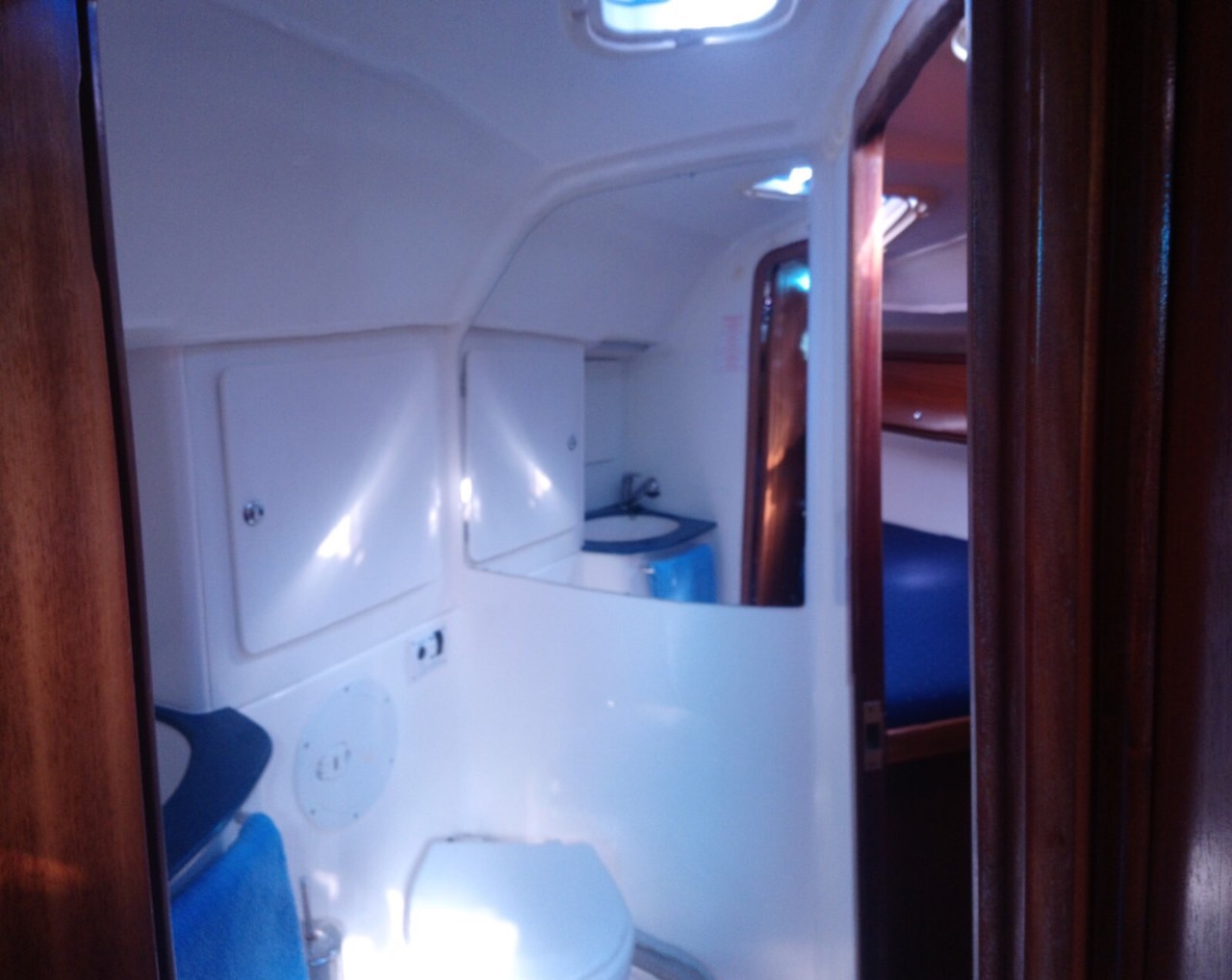 | Outside | 220 V-Landanschluss, Biminitop, Cockpitdusche, Cockpitlautsprecher, Cockpittisch, elektr. Ankerwinsch, Solaranlage, Sprayhood, Teak im Cockpit |
