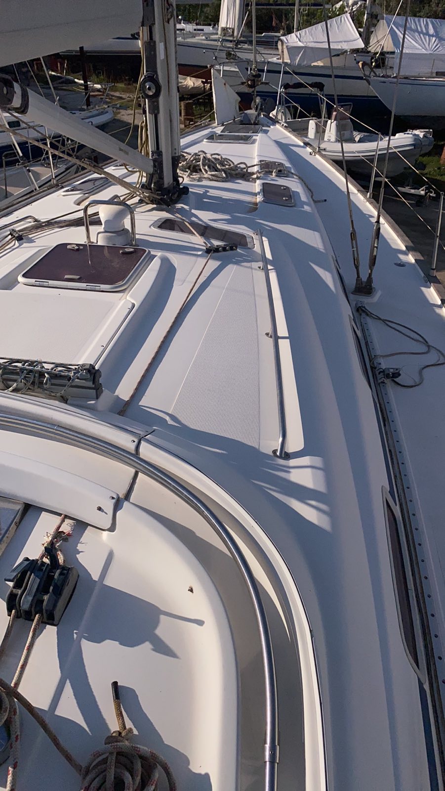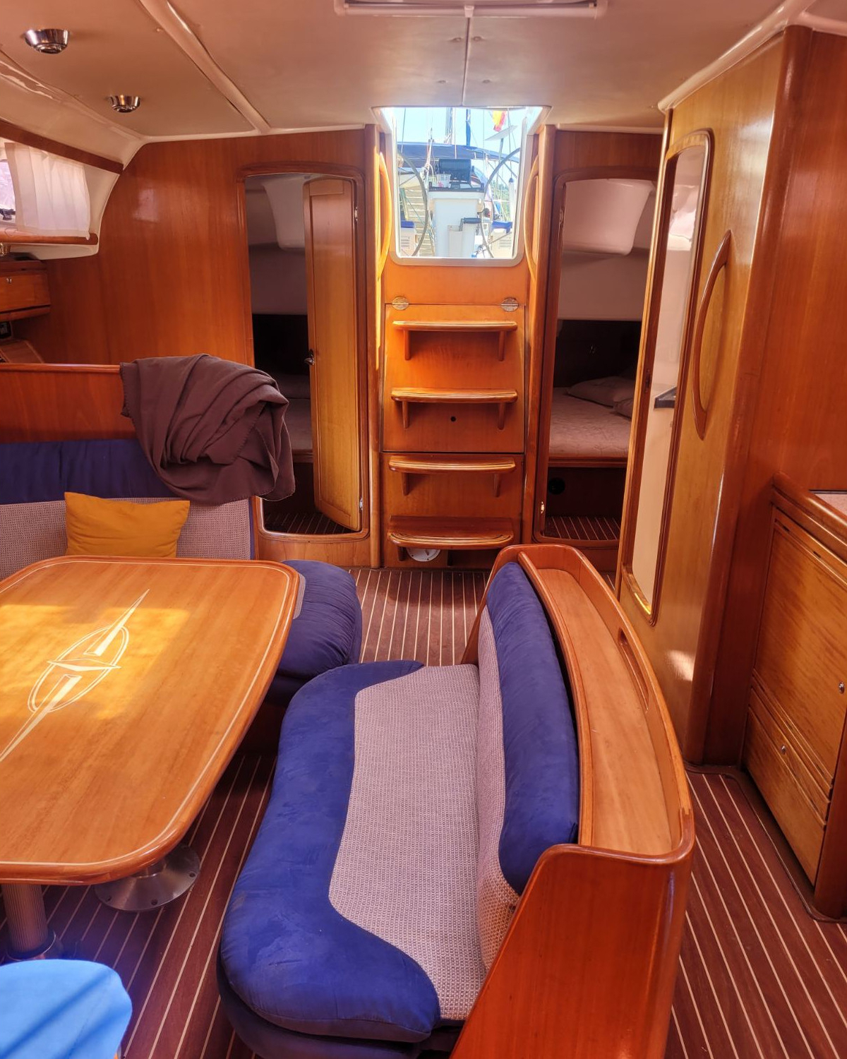 | Outside | 220 V-Landanschluss, Biminitop, Cockpitdusche, Cockpitlautsprecher, Cockpittisch, elektr. Ankerwinsch, Solaranlage, Sprayhood, Teak im Cockpit, Unterwasserbeleuchtung |