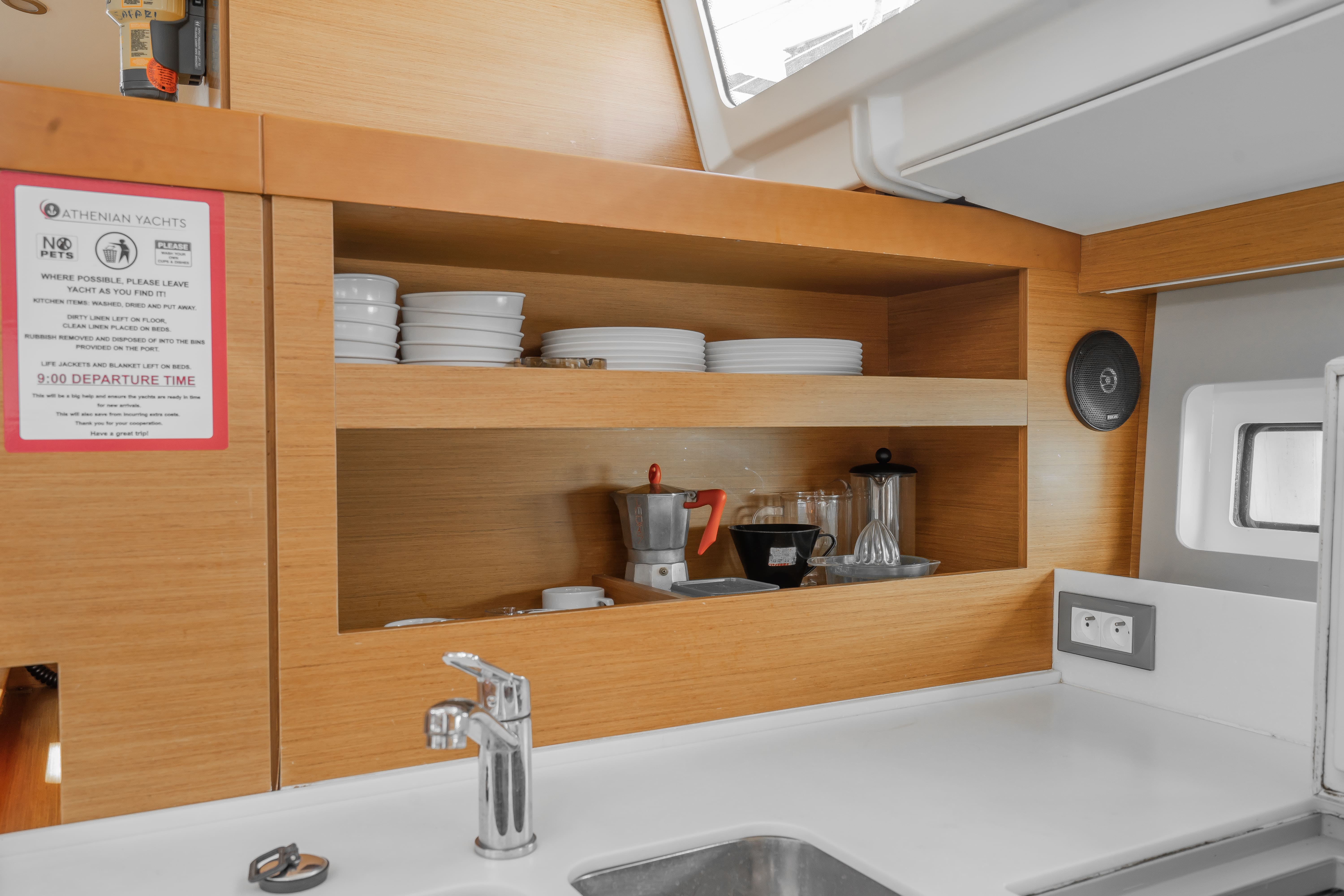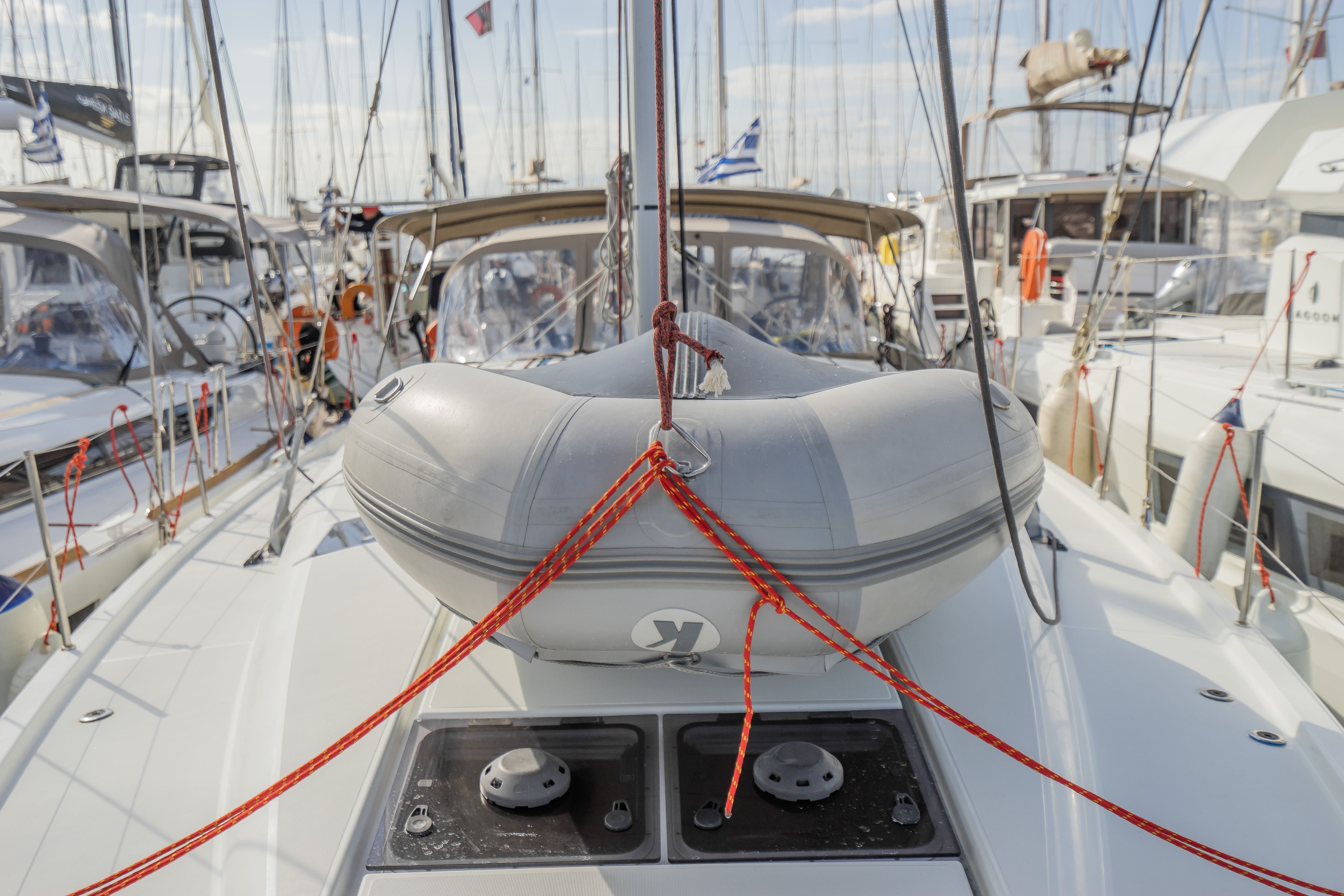 Outside 220 V-Landanschluss, Badeleiter, Badeplattform, Biminitop, Cockpitdusche, Cockpitpolster, Cockpittisch, elektr. Ankerwinsch, Fender, Heckdusche, Schnorchelausrüstung, Solaranlage, Sprayhood