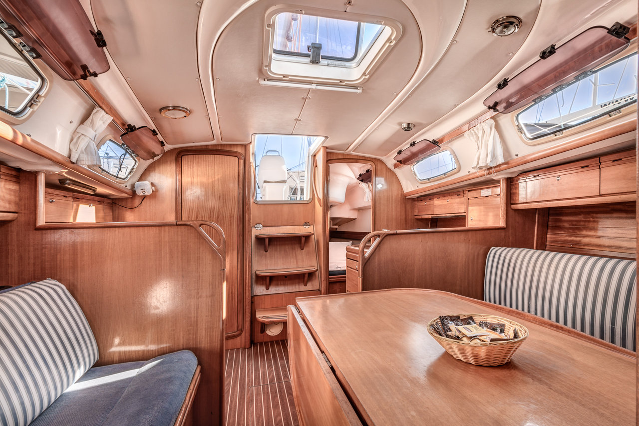| Navigation | Echolot, Fernglas, GPS mit Kartenplotter im Cockpit, Hafenhandbücher, Handpeilkompass, Navigationsbesteck, Seekarten, Sumlog |