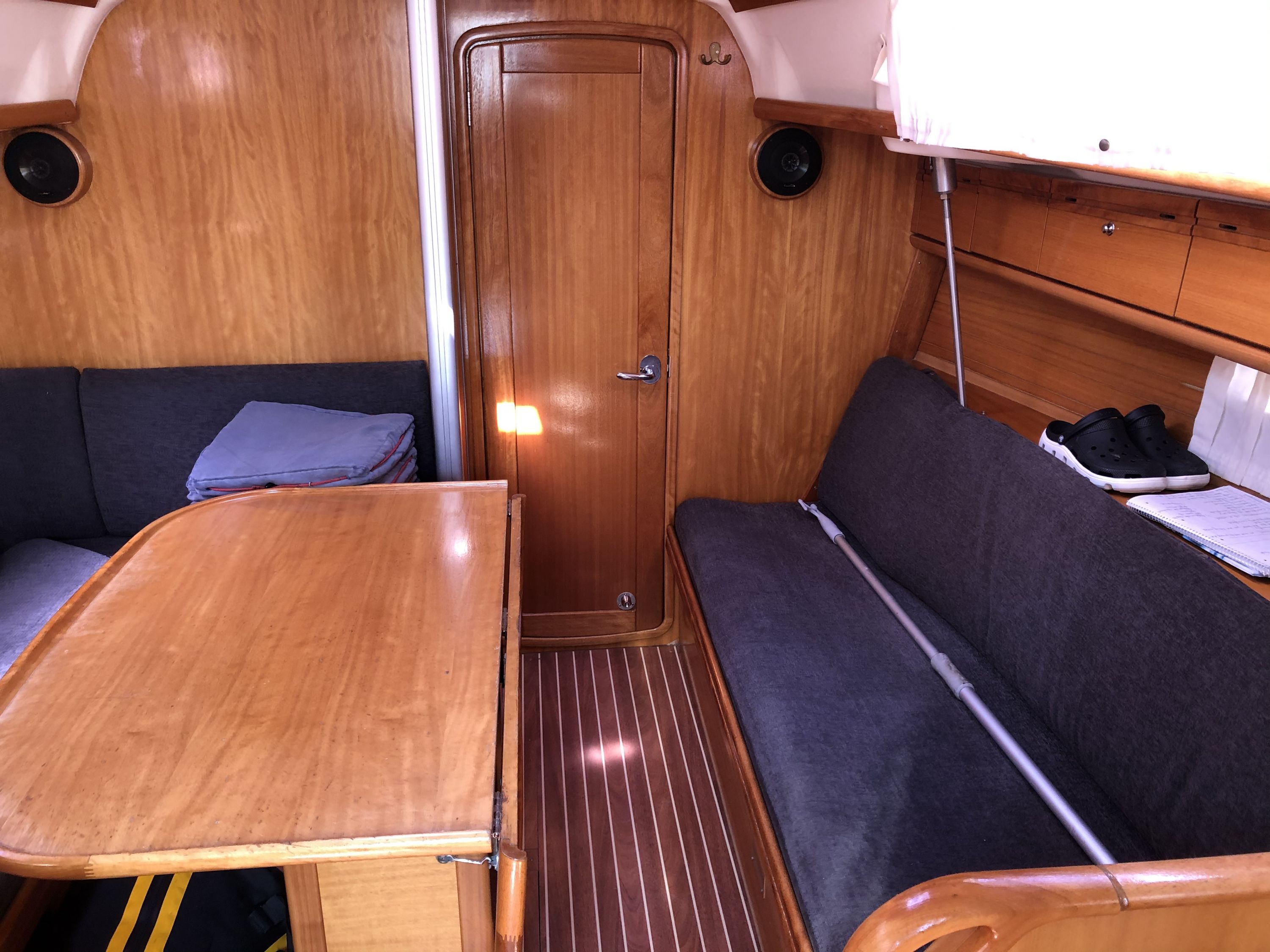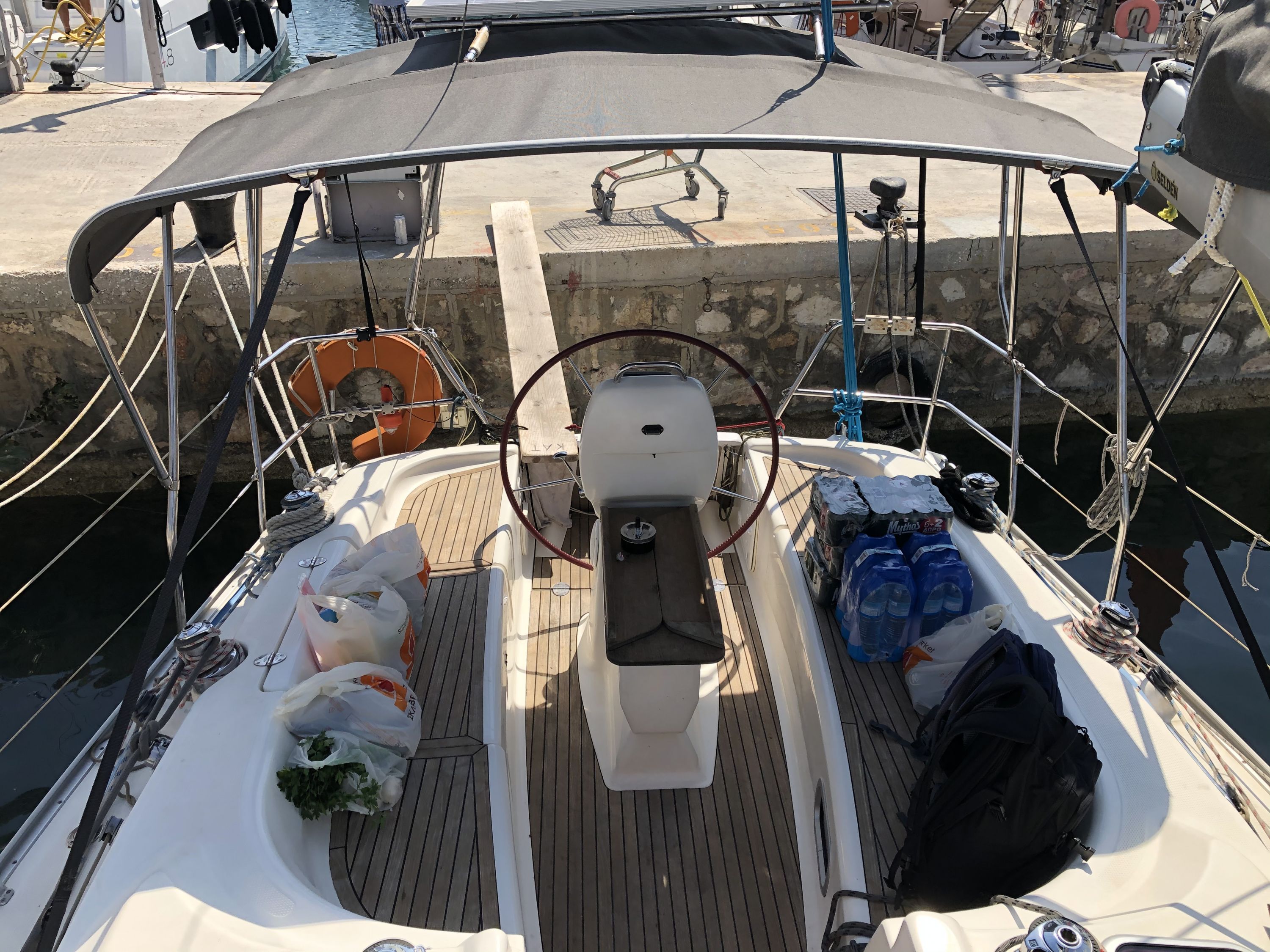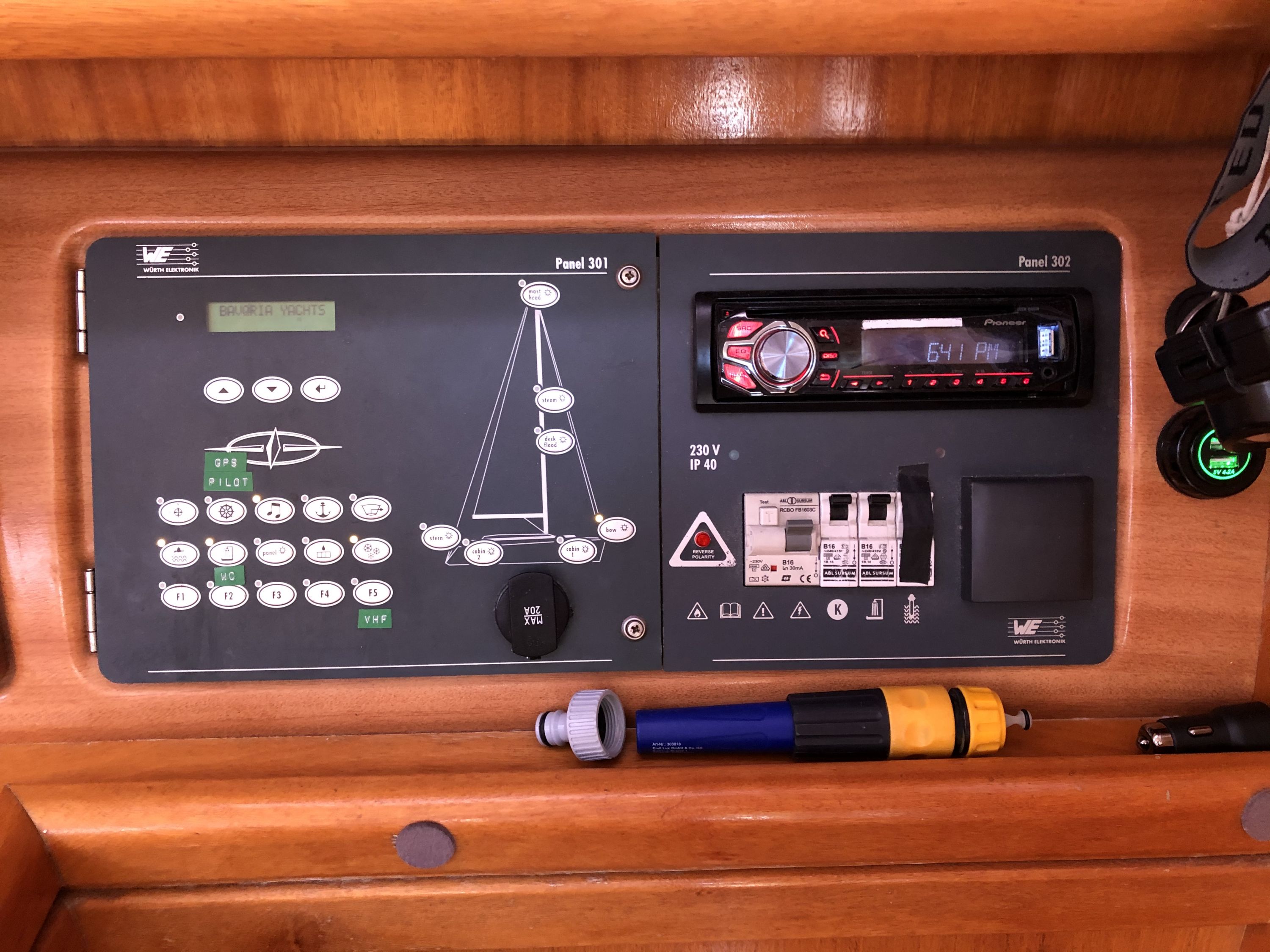 | Outside | Biminitop, Cockpitlautsprecher, elektr. Ankerwinsch, Solaranlage, Sprayhood |