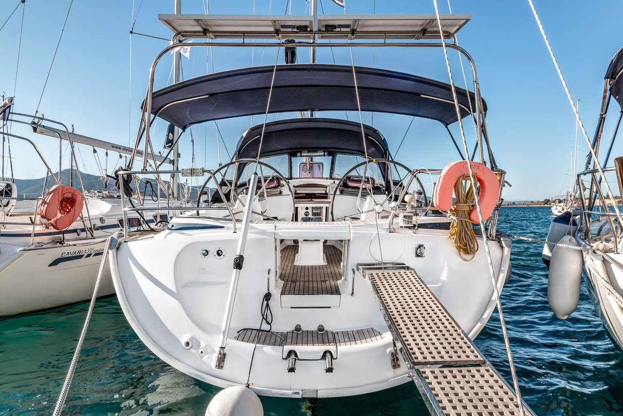 | Outside | 220 V-Landanschluss, Biminitop, Cockpitdusche, Cockpitlautsprecher, Cockpitpolster, Cockpittisch, elektr. Ankerwinsch, Gangway, Selbstholende Winschen, Solaranlage, Sonnensegel, Sprayhood, Windex |
