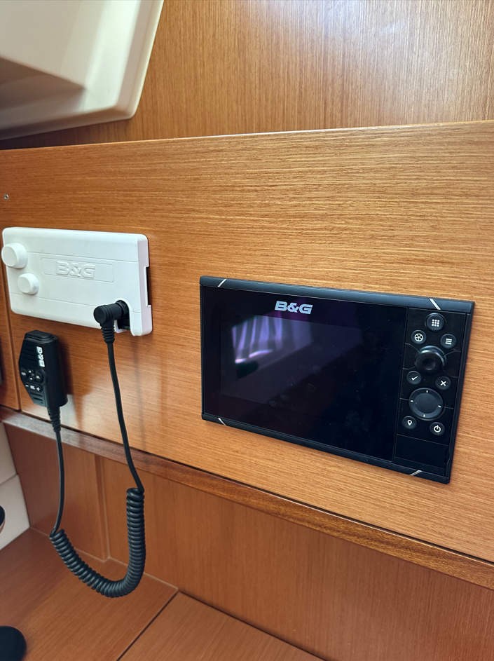 | Navigation | GPS mit Kartenplotter im Cockpit, Tridata (Log, Echolot, Windm.) |