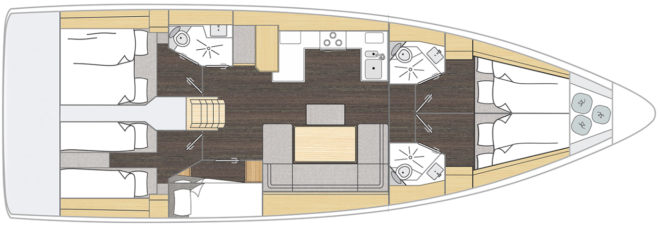 | Kabinen: | 5 | Kojen: | 10+2 |