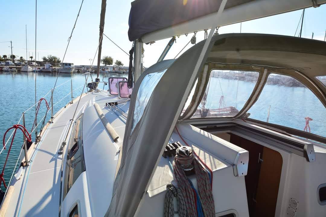 | Outside | Biminitop, Cockpitdusche, Cockpitlautsprecher, Cockpitpolster, Cockpittisch, elektr. Ankerwinsch, Gangway, Selbstholende Winschen, Solaranlage, Sonnensegel, Sprayhood, Windex |