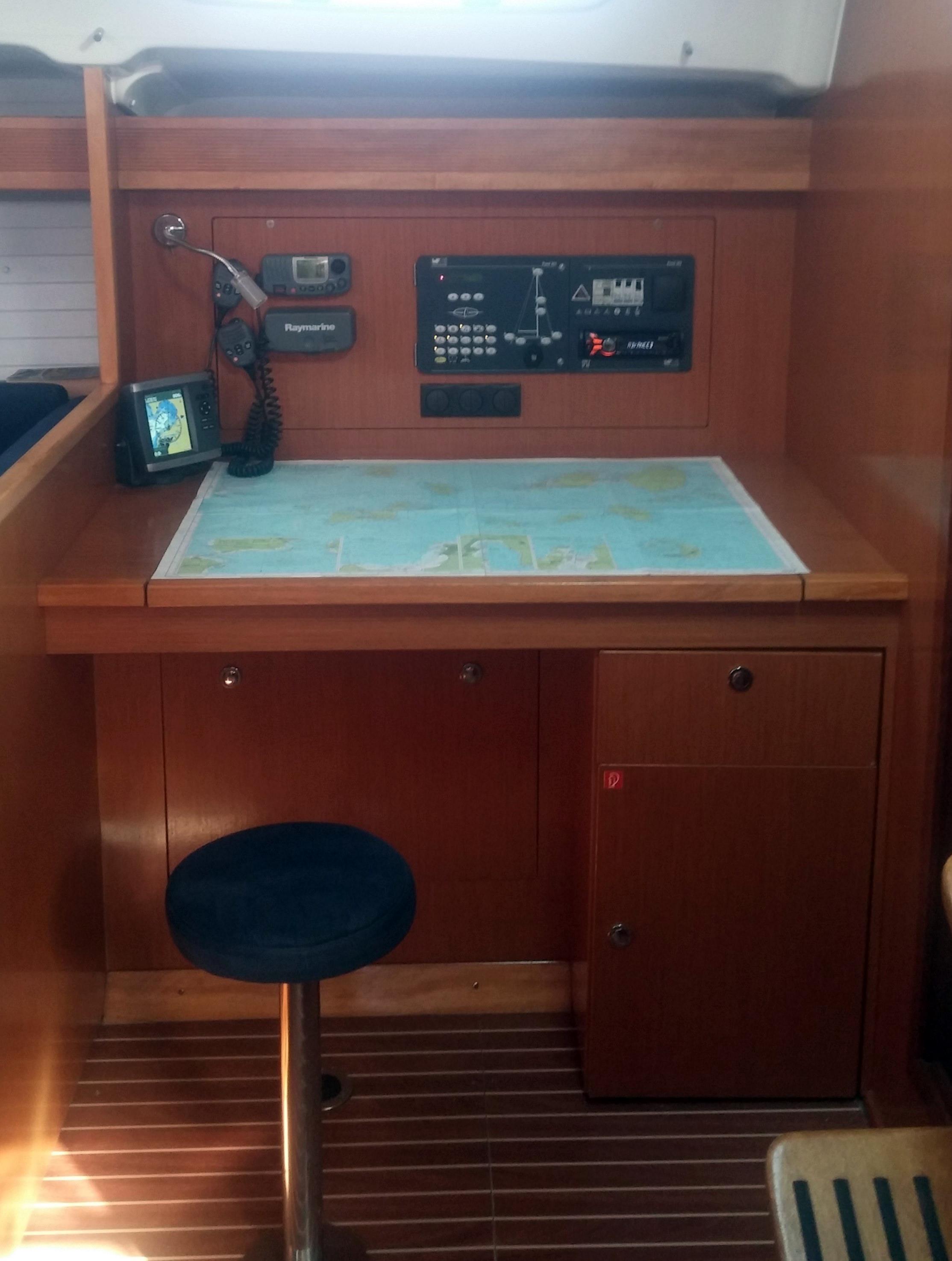 | Navigation | Echolot, GPS mit Kartenplotter, Sumlog, Windmesser |