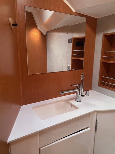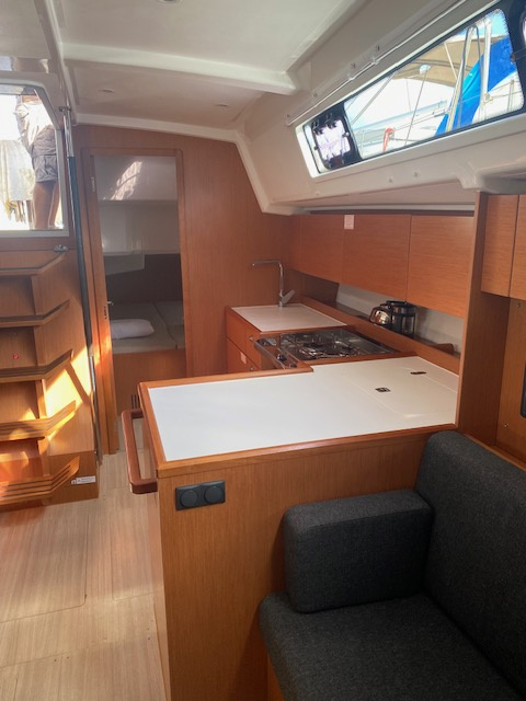 | Outside | Badeleiter, Biminitop, Cockpitdusche, Cockpitlautsprecher, Cockpitpolster, Cockpittisch, elektr. Ankerwinsch, Sprayhood |