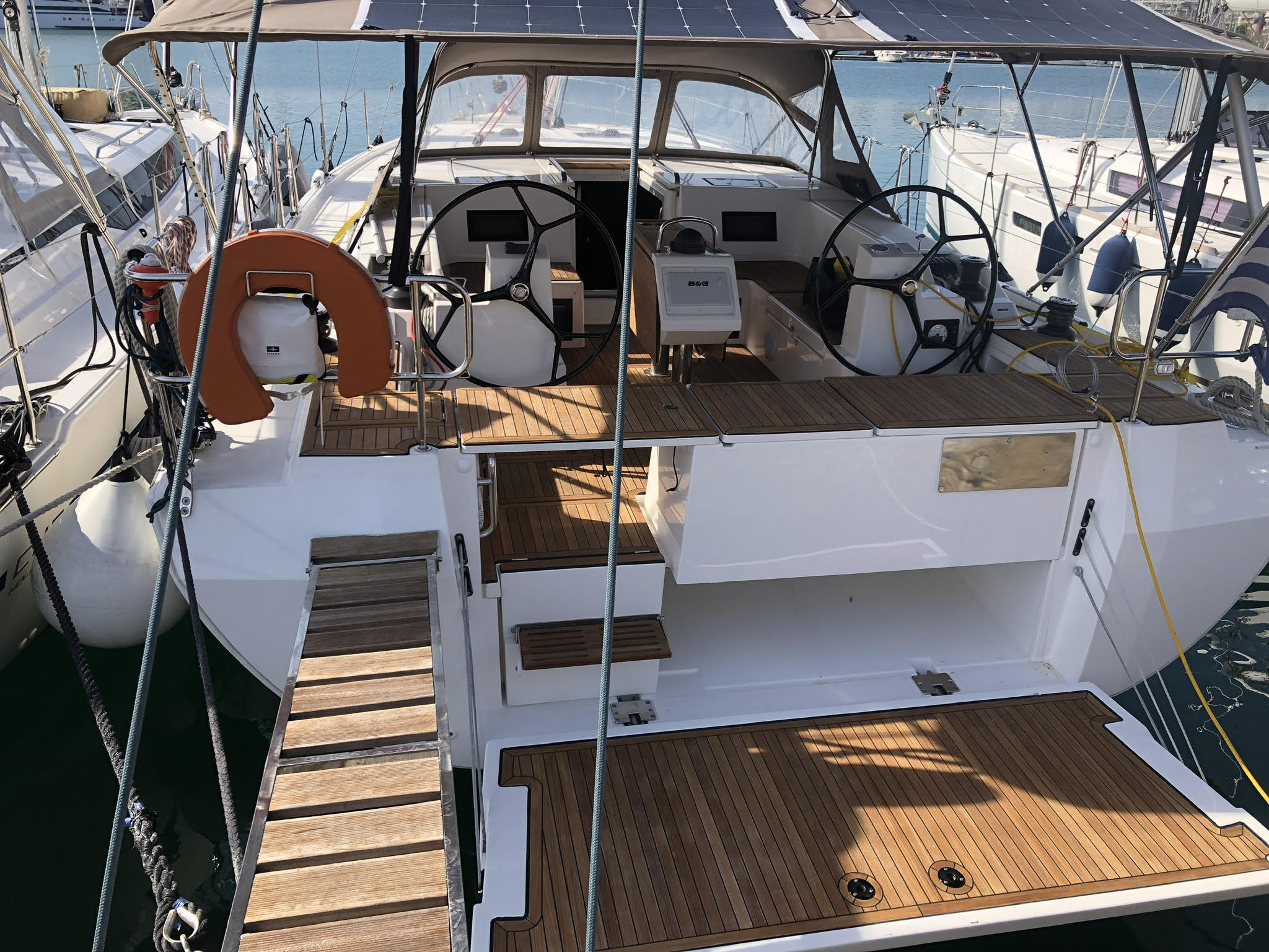 | Outside | Anker mit Kette, Biminitop, Cockpitdusche, Cockpitlautsprecher, Cockpitpolster, Cockpittisch (klappbar), Deckbürste, elektr. Ankerwinsch, Fender, Kunststoff-Eimer (Pütz), Solaranlage, Sprayhood, Teak im Cockpit |