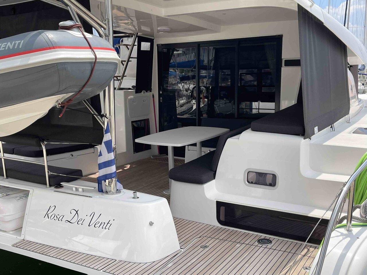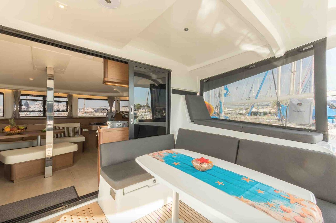 | Outside | Cockpitpolster, Deckpolster, elektr. Winsch, Hardtop, Schnorchelausrüstung, Solaranlage, Sonnendeck, Teak im Cockpit, Unterwasserbeleuchtung |
