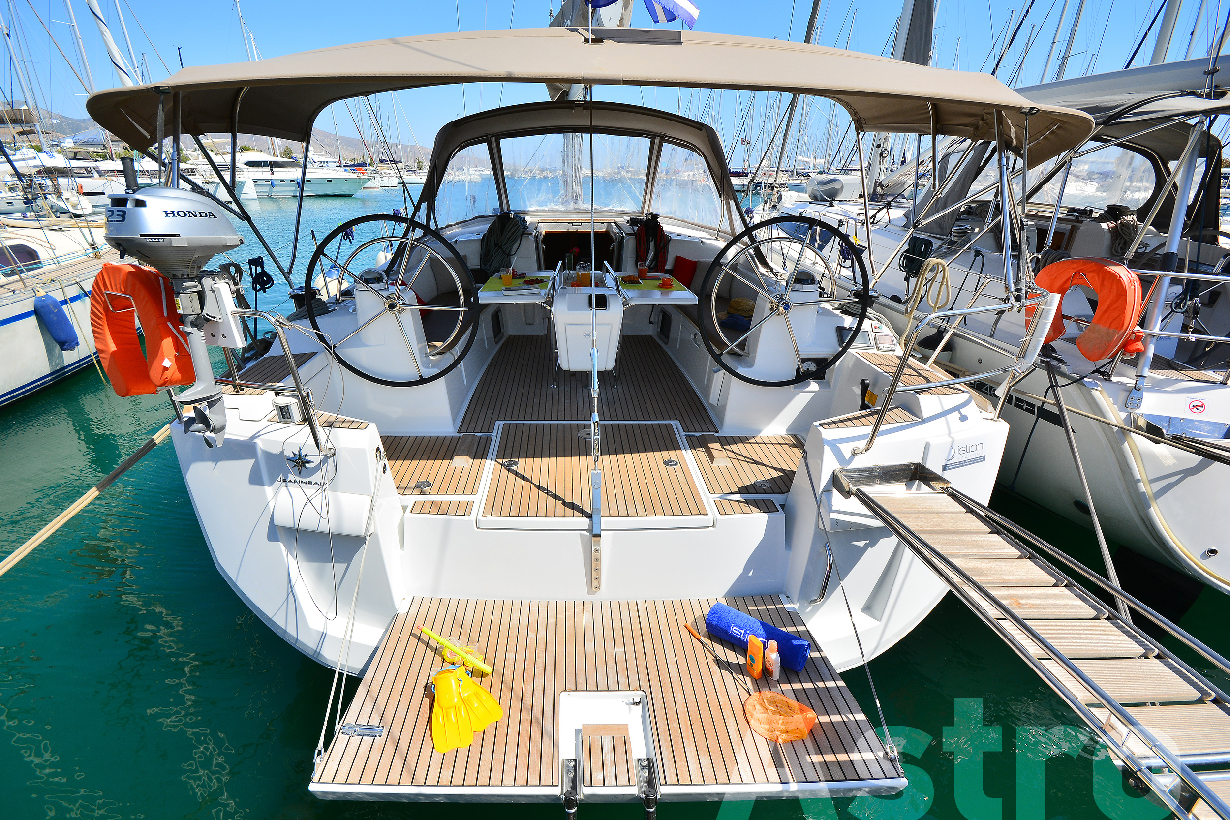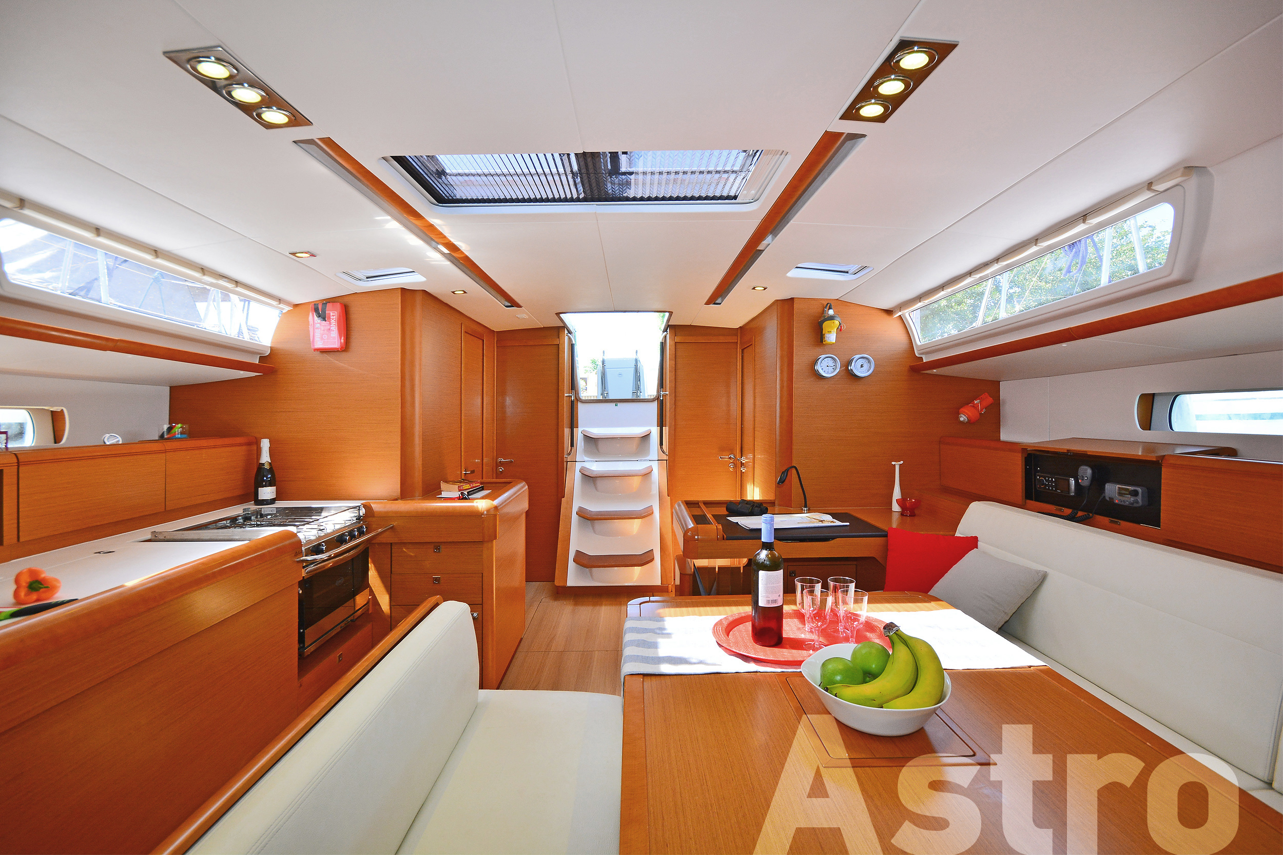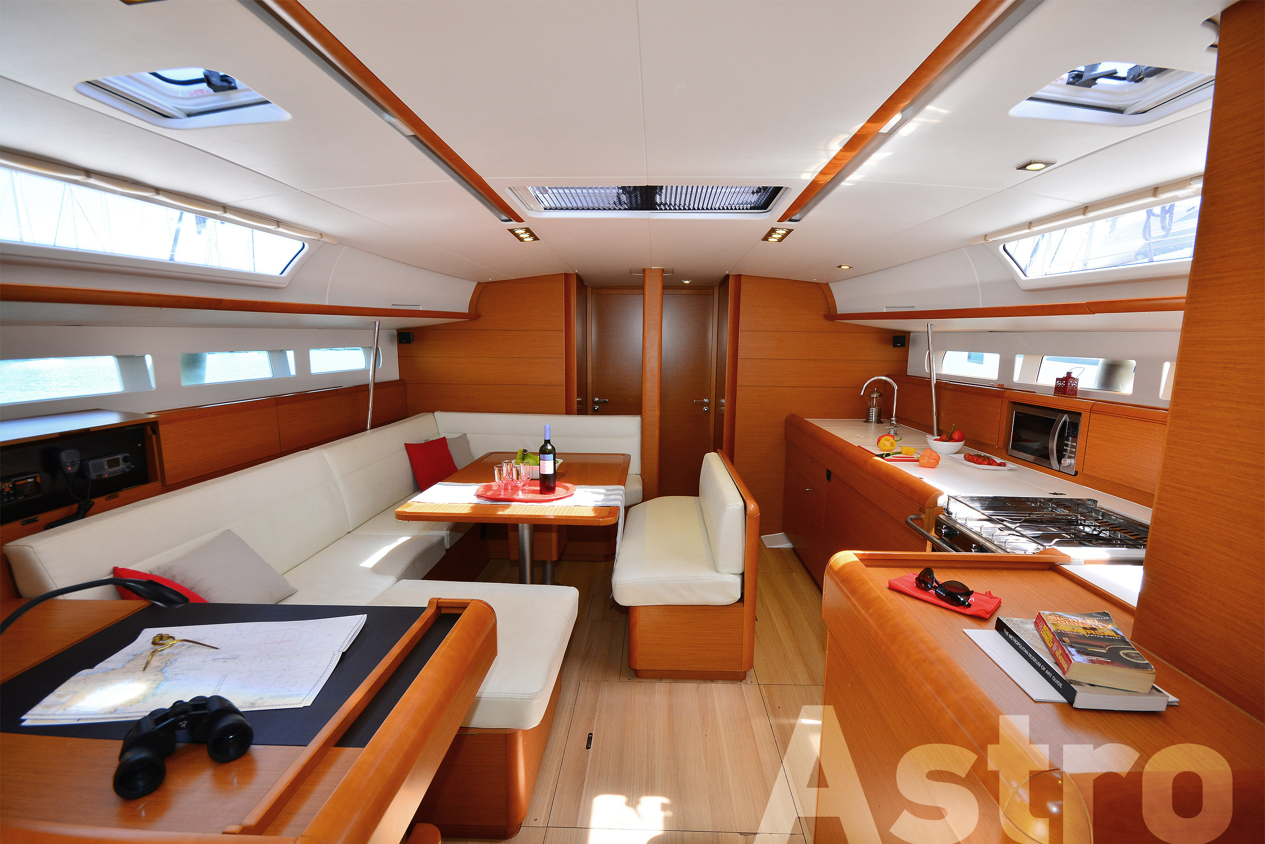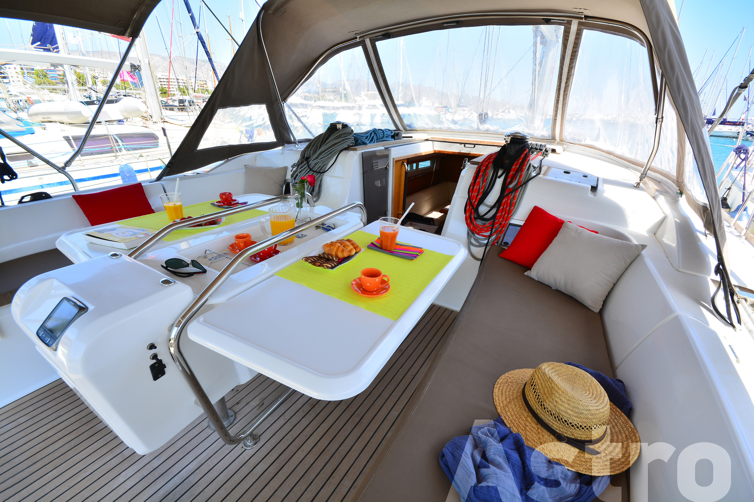 | Outside | 220 V-Landanschluss, Anker mit Kette, Badeleiter, Badeplattform, Biminitop, Bootshaken, Cockpitpolster, Cockpittisch, elektr. Ankerwinsch, Fender, Festmacherleinen, Gangway, Schnorchelausrüstung, Solaranlage, Sprayhood, Wantenschneider, Wasserschlauch, Winschen |