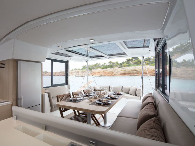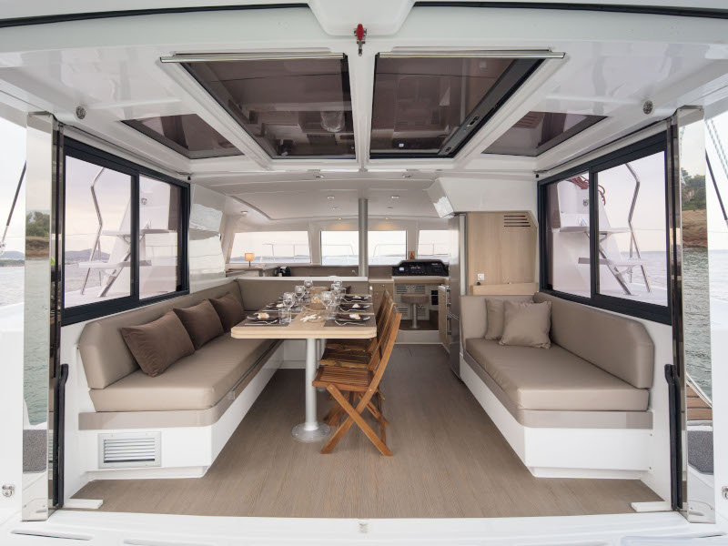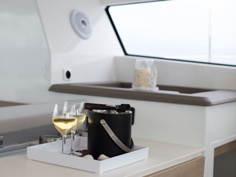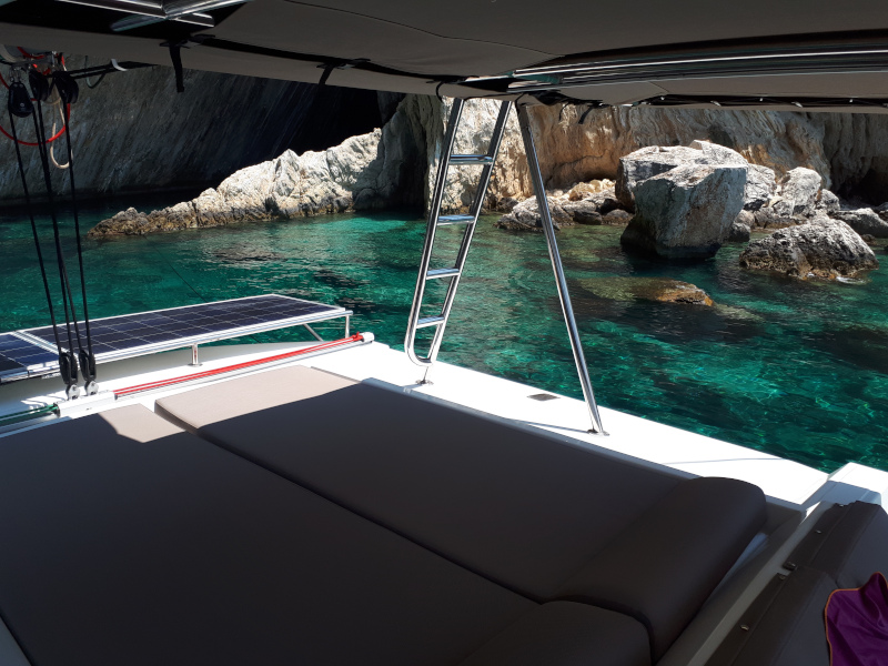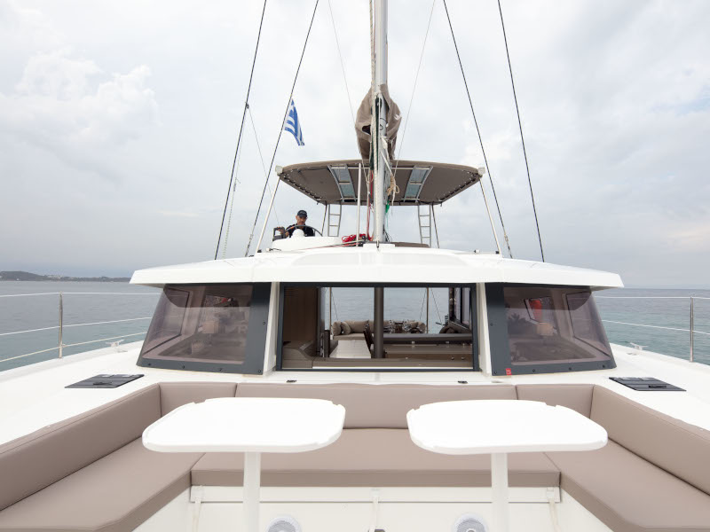 | Outside | Badeplattform, Biminitop auf Flybridge, Cockpitdusche, Cockpitpolster, Davits, elektr. Ankerwinsch, elektr. Winsch, Polster auf Flybridge, Selbstholende Winschen, Sprayhood, Windex |