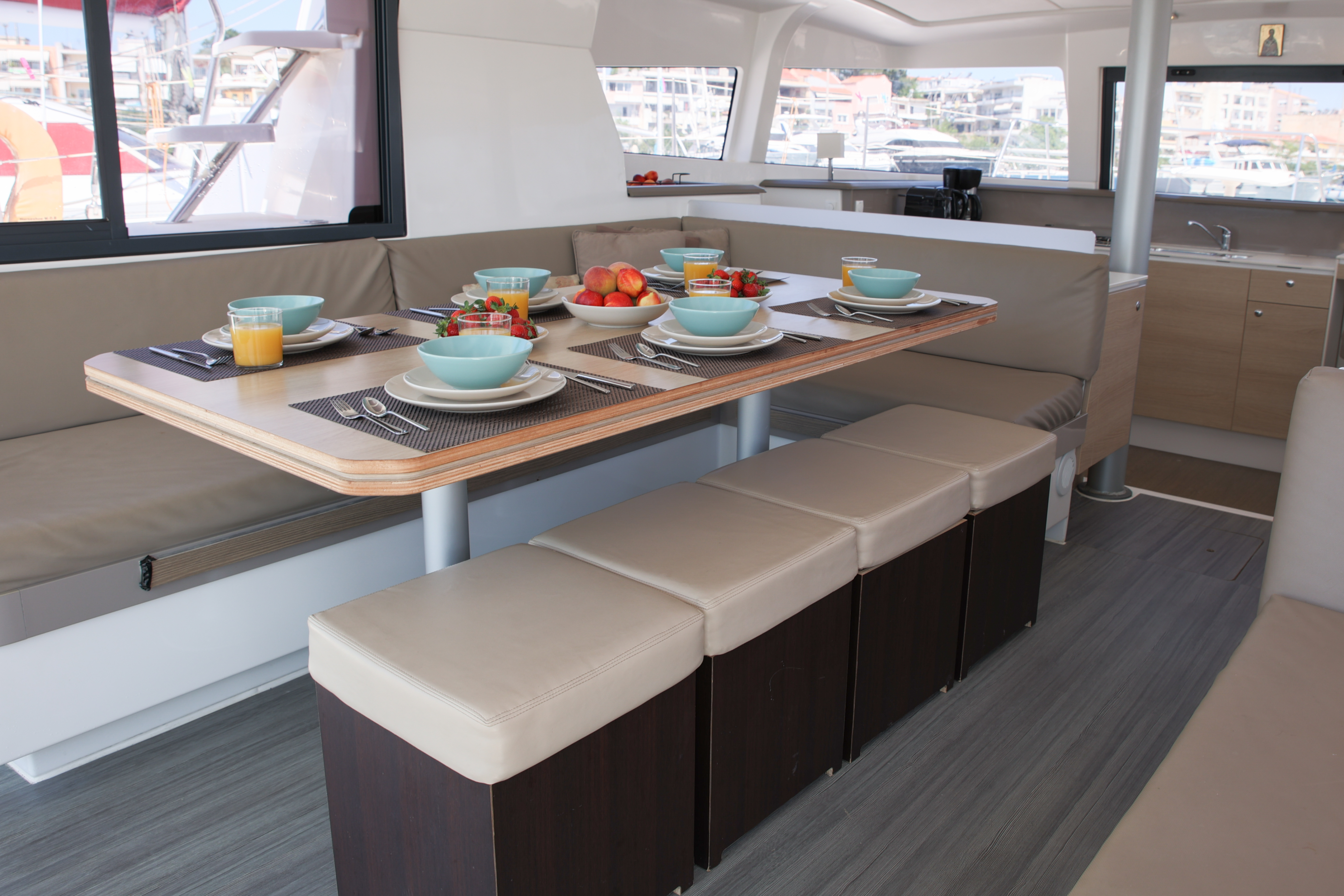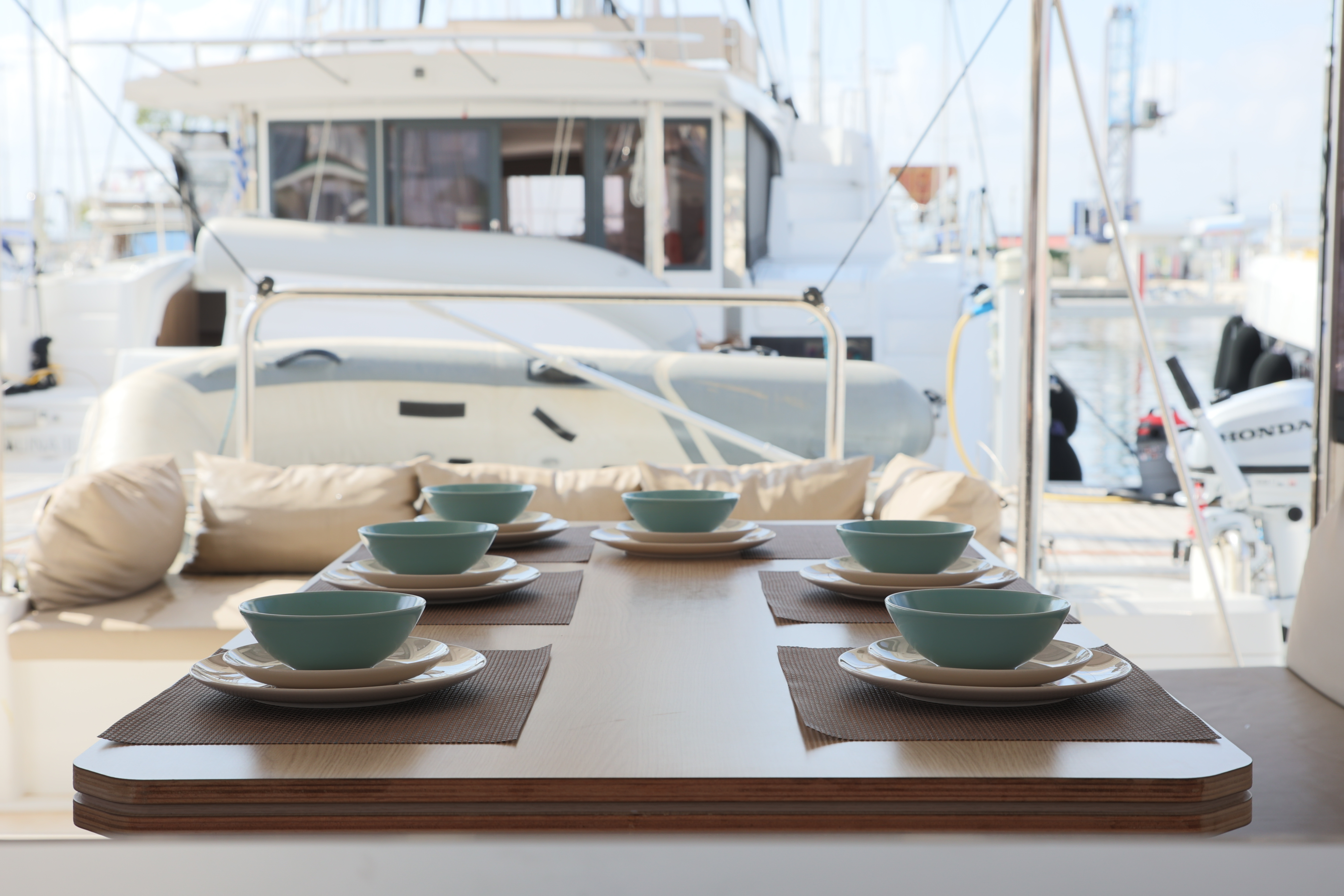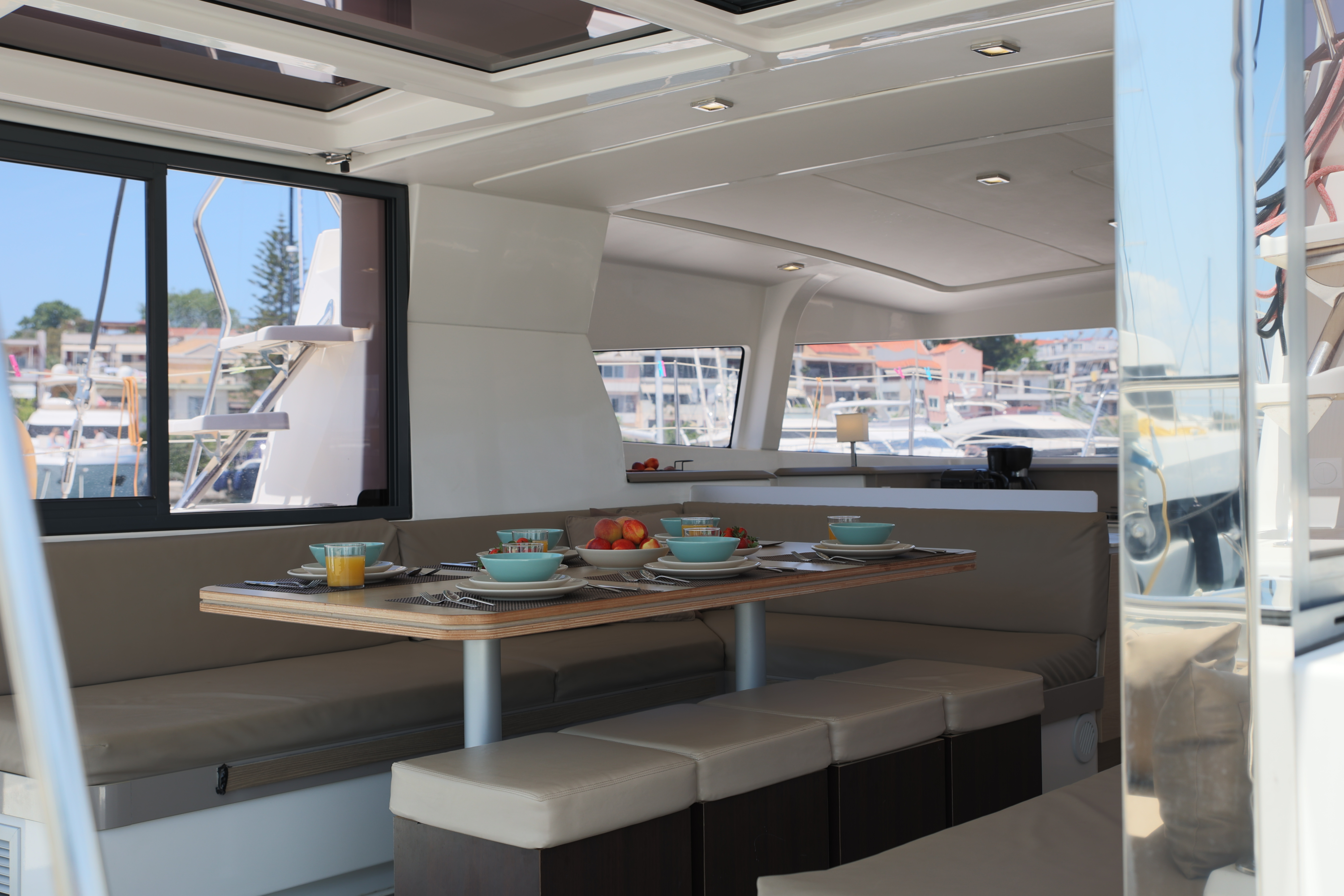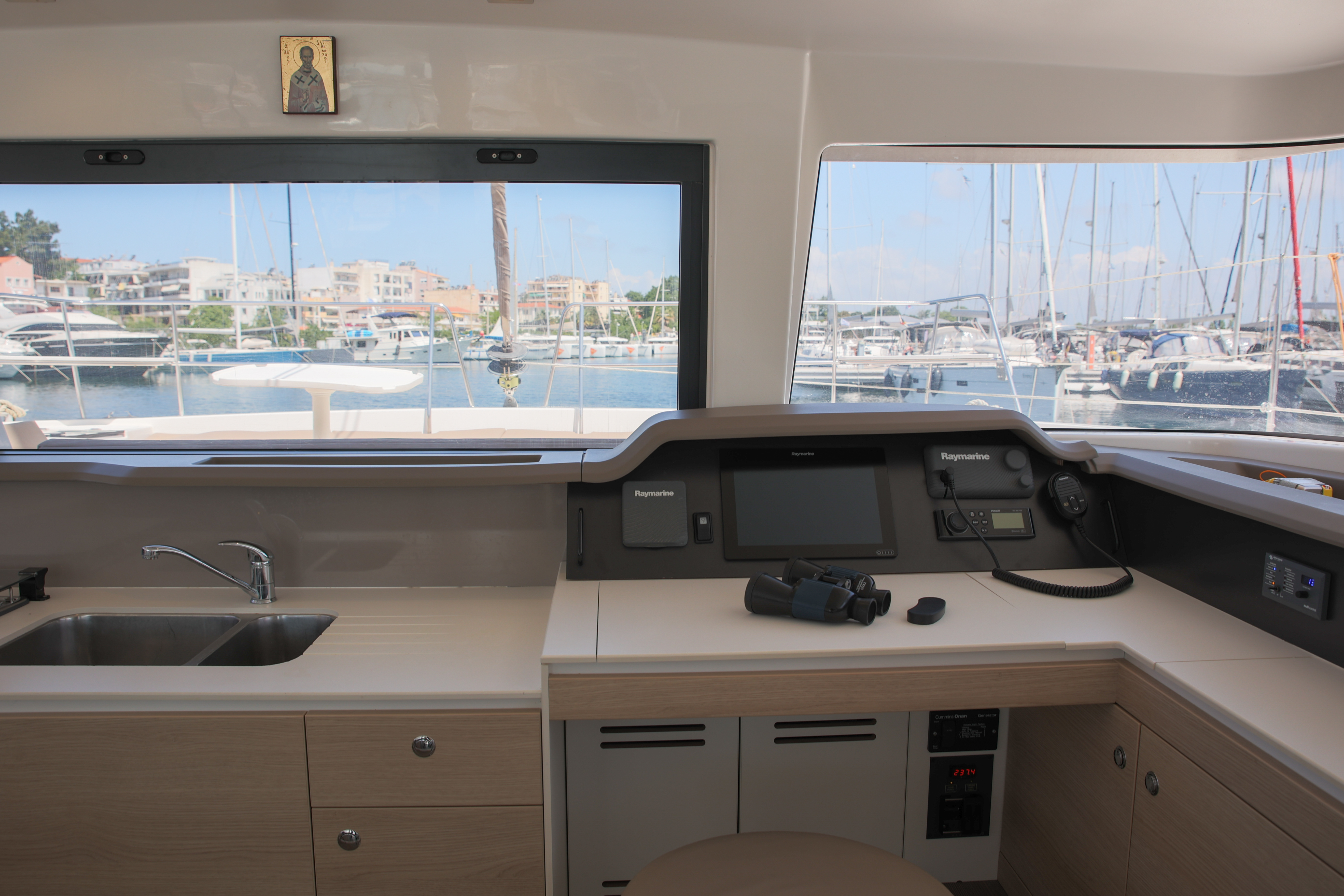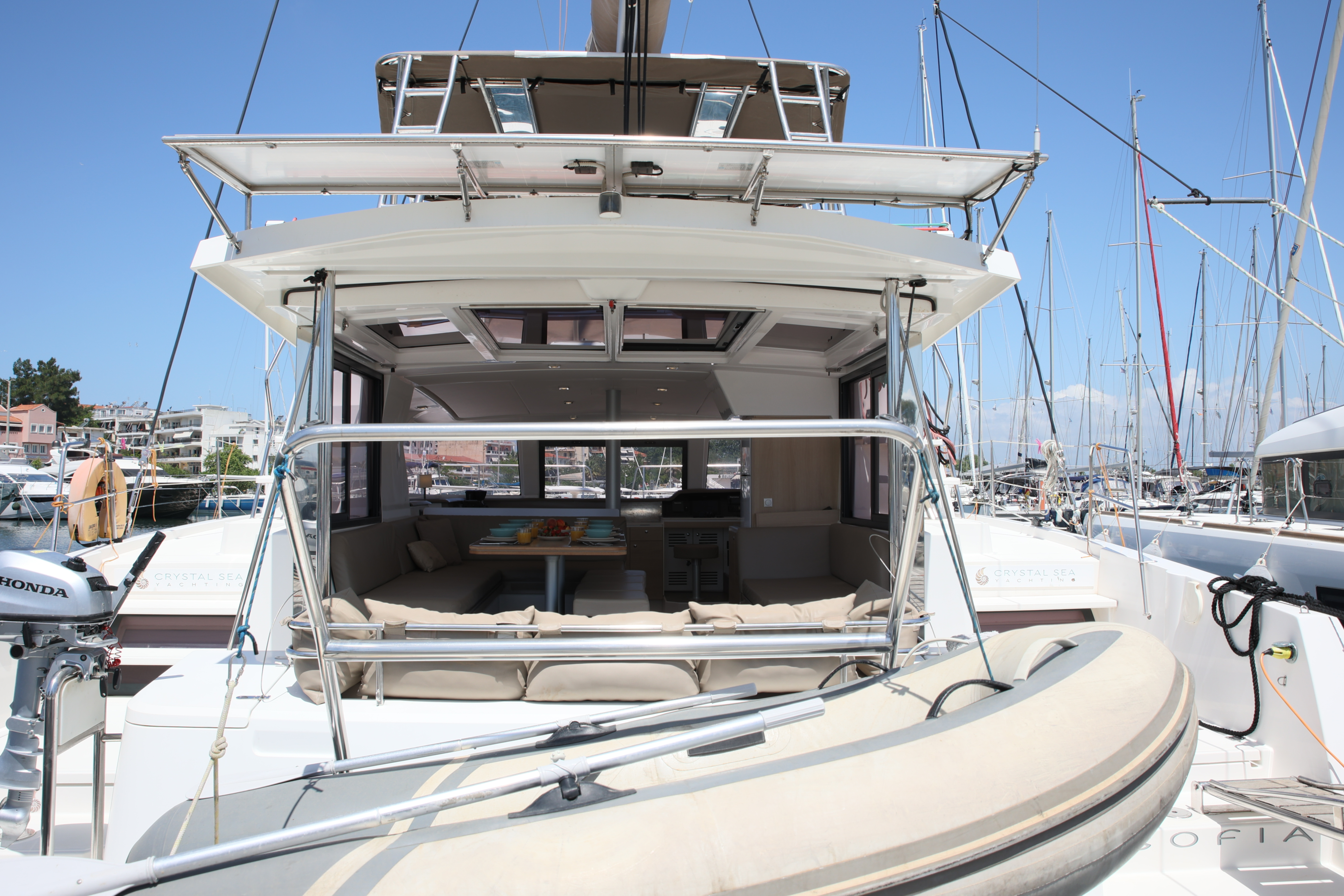 | Outside | Badeplattform, Biminitop auf Flybridge, Cockpitdusche, Cockpitpolster, Davits, elektr. Ankerwinsch, elektr. Winsch, Polster auf Flybridge, Schnorchelausrüstung, Selbstholende Winschen, Solaranlage, Sprayhood, Windex |