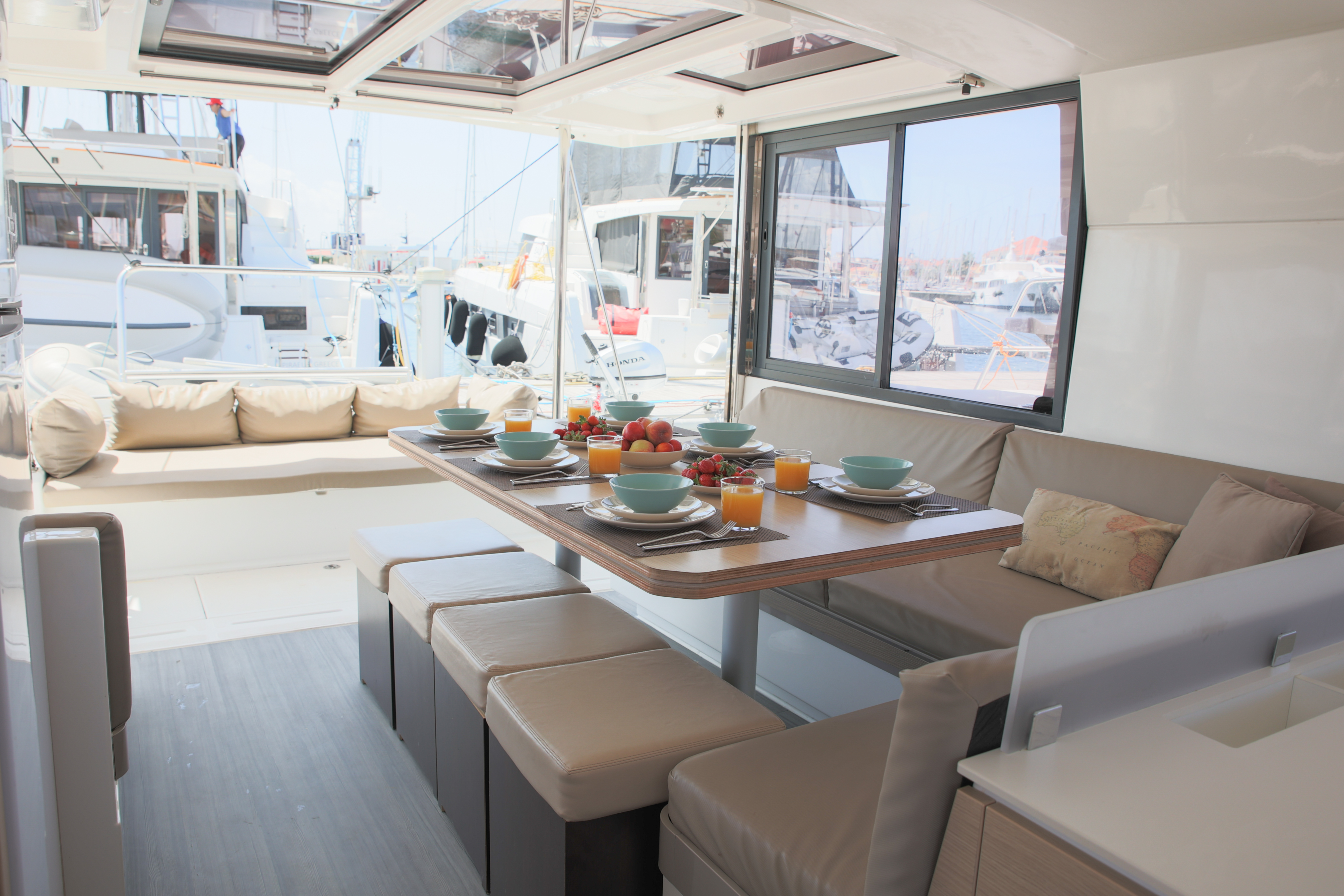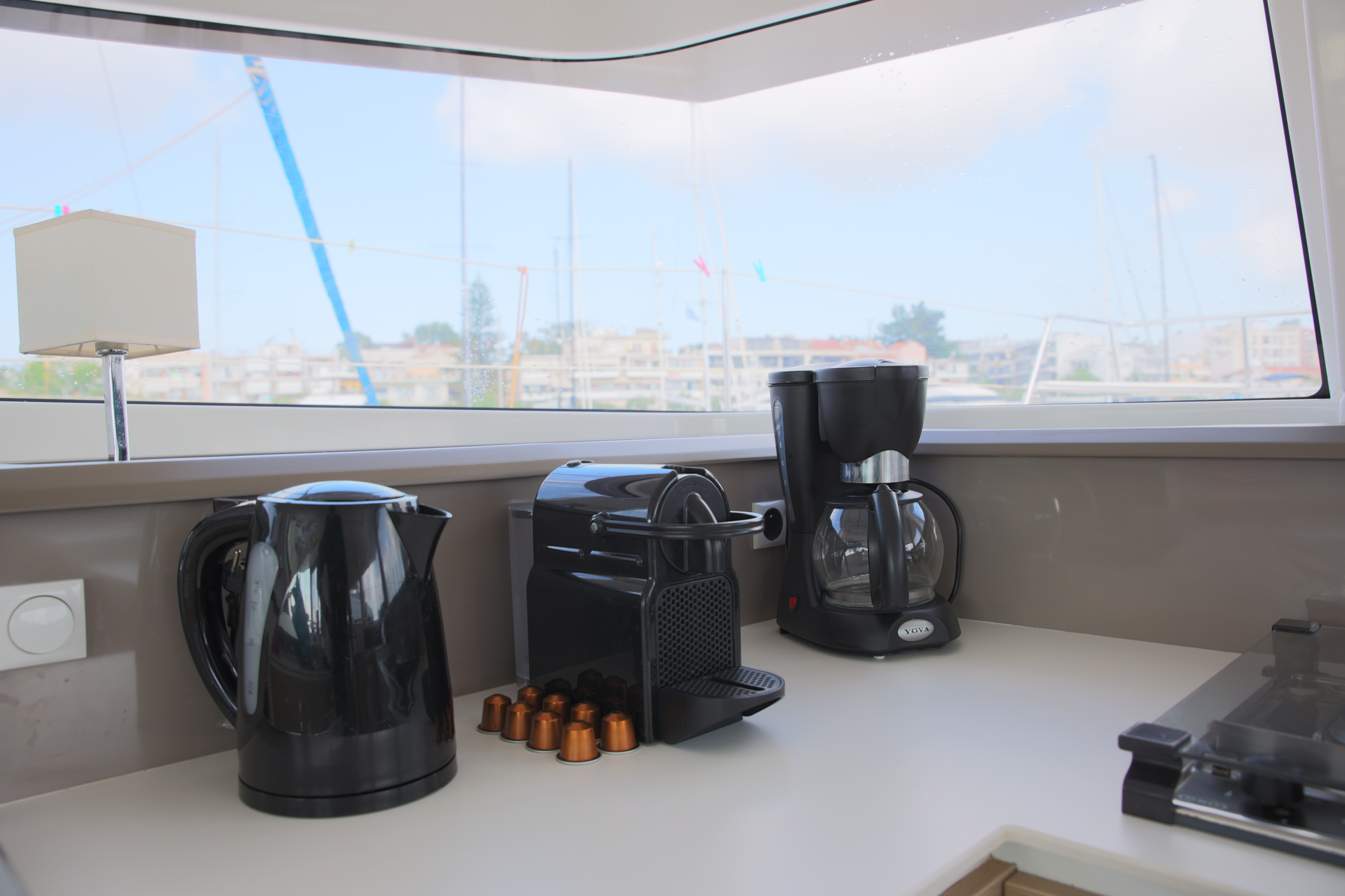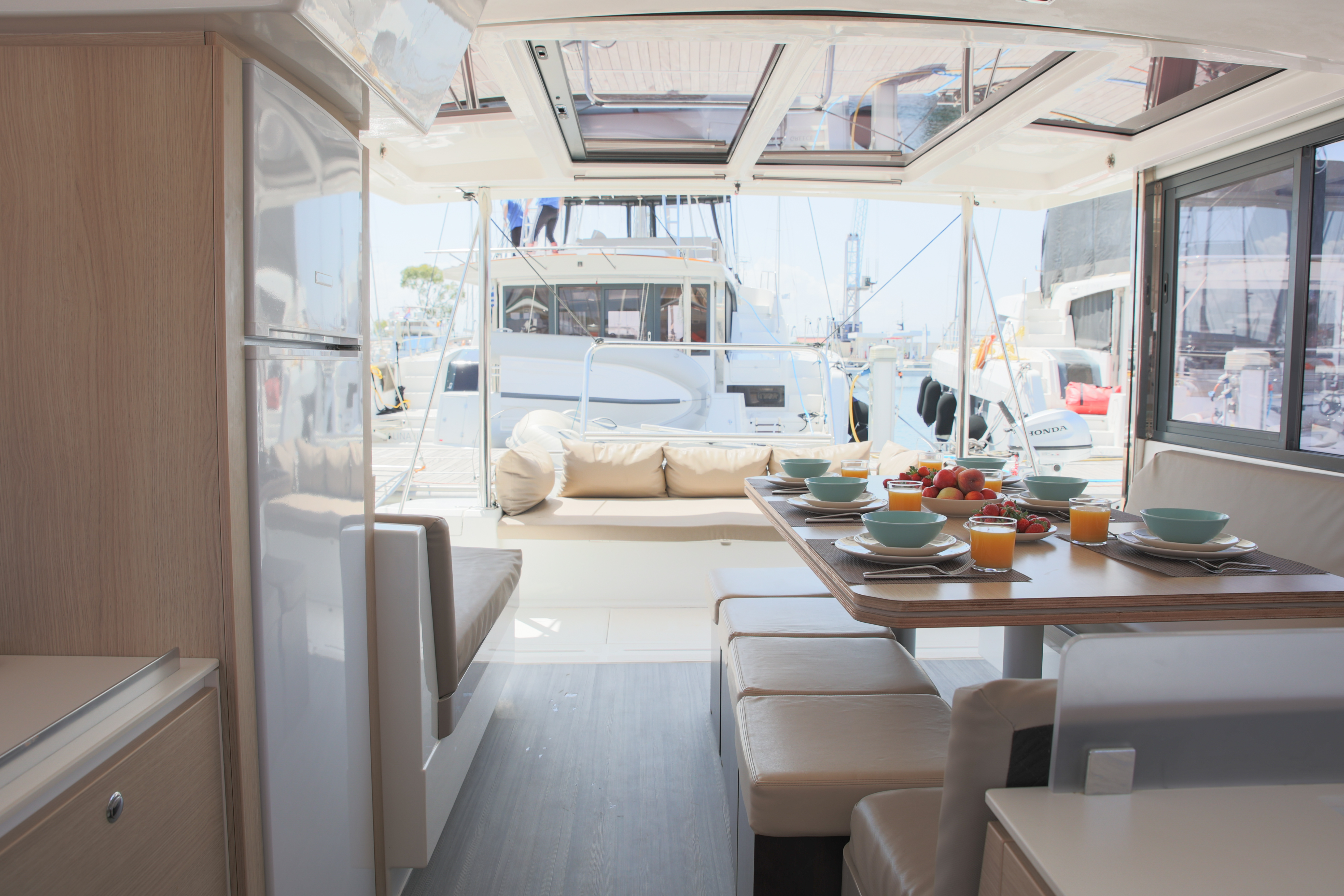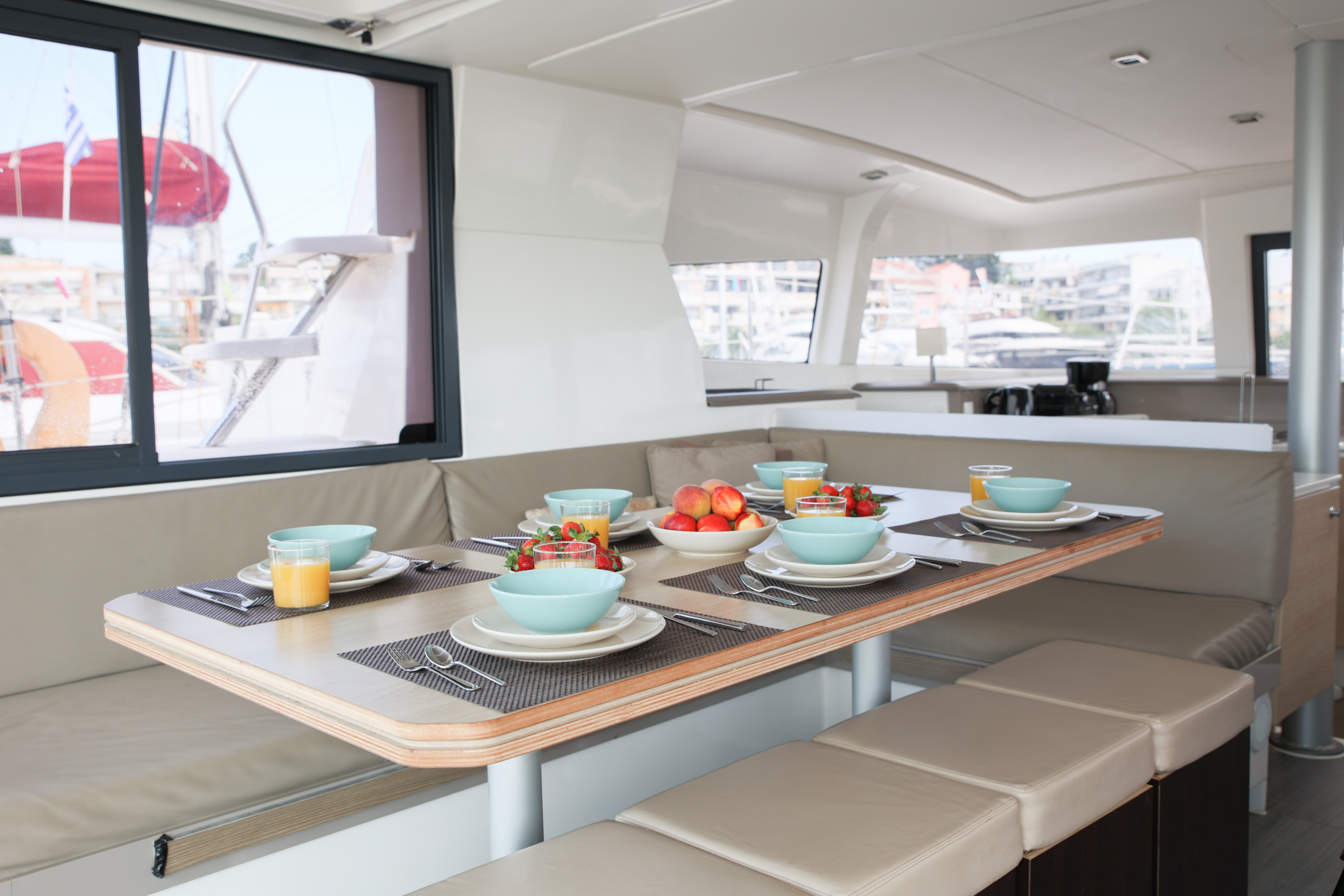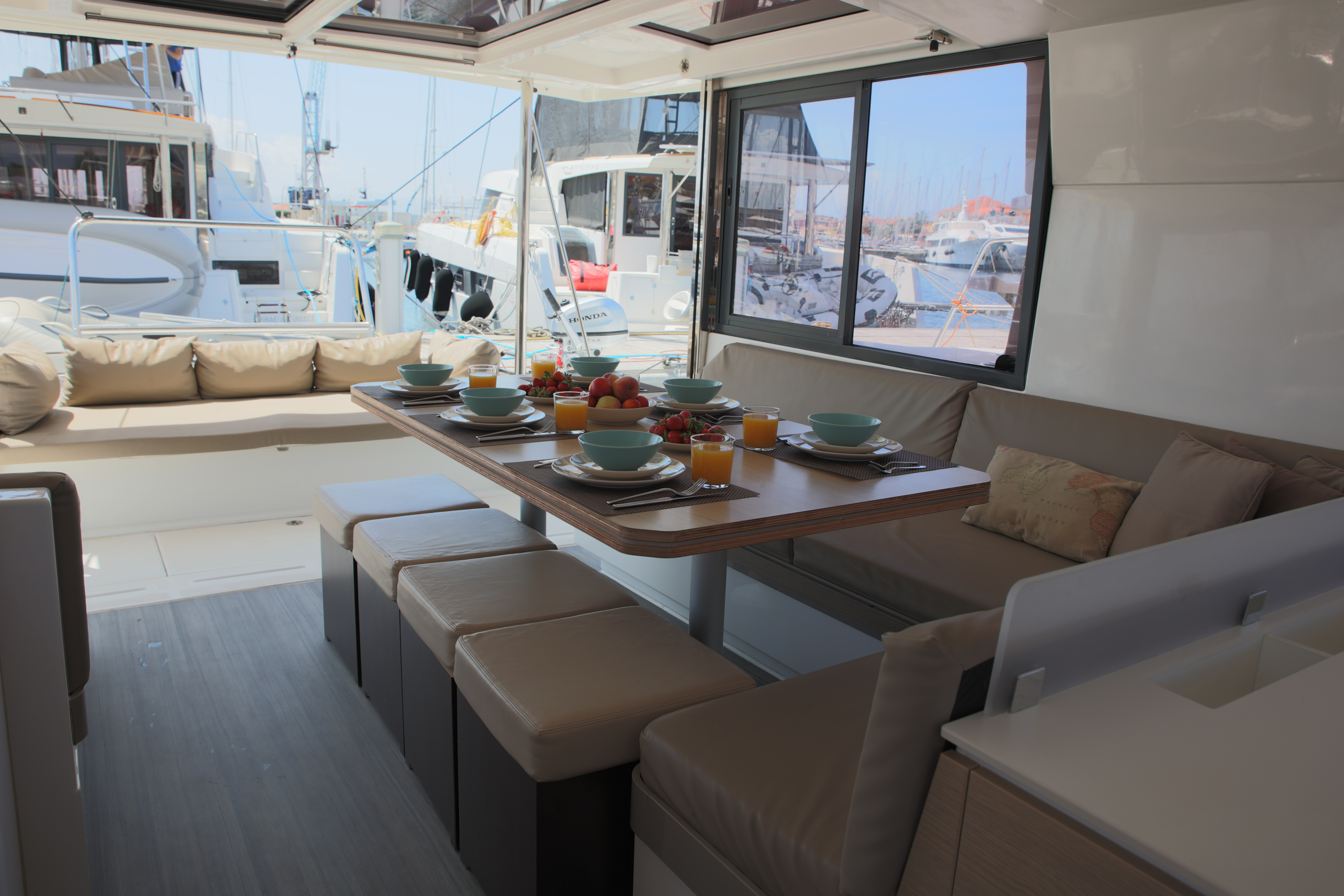 | Outside | Badeplattform, Biminitop auf Flybridge, Cockpitdusche, Cockpitpolster, Davits, elektr. Ankerwinsch, elektr. Winsch, Polster auf Flybridge, Schnorchelausrüstung, Selbstholende Winschen, Solaranlage, Sprayhood, Windex |
