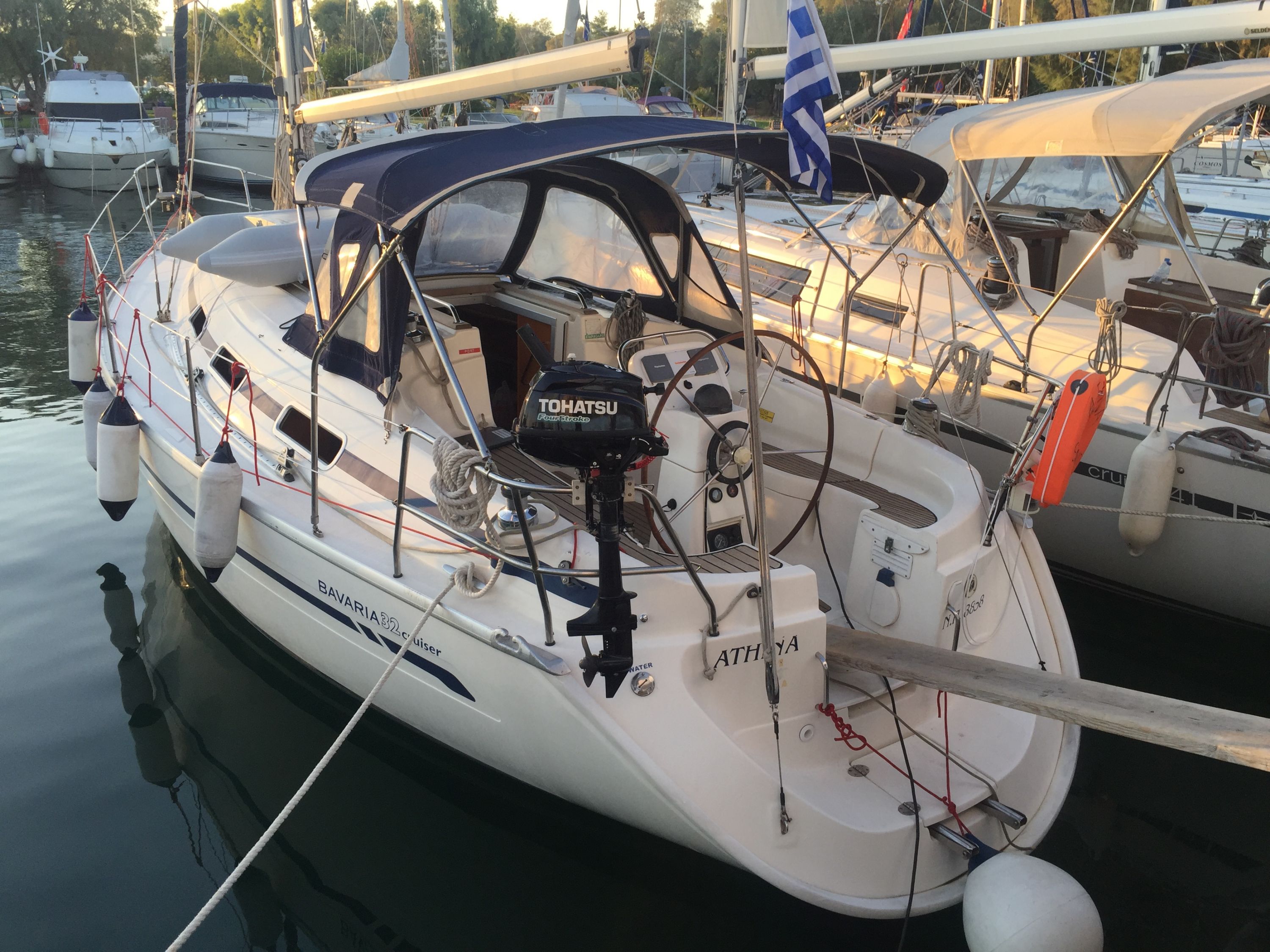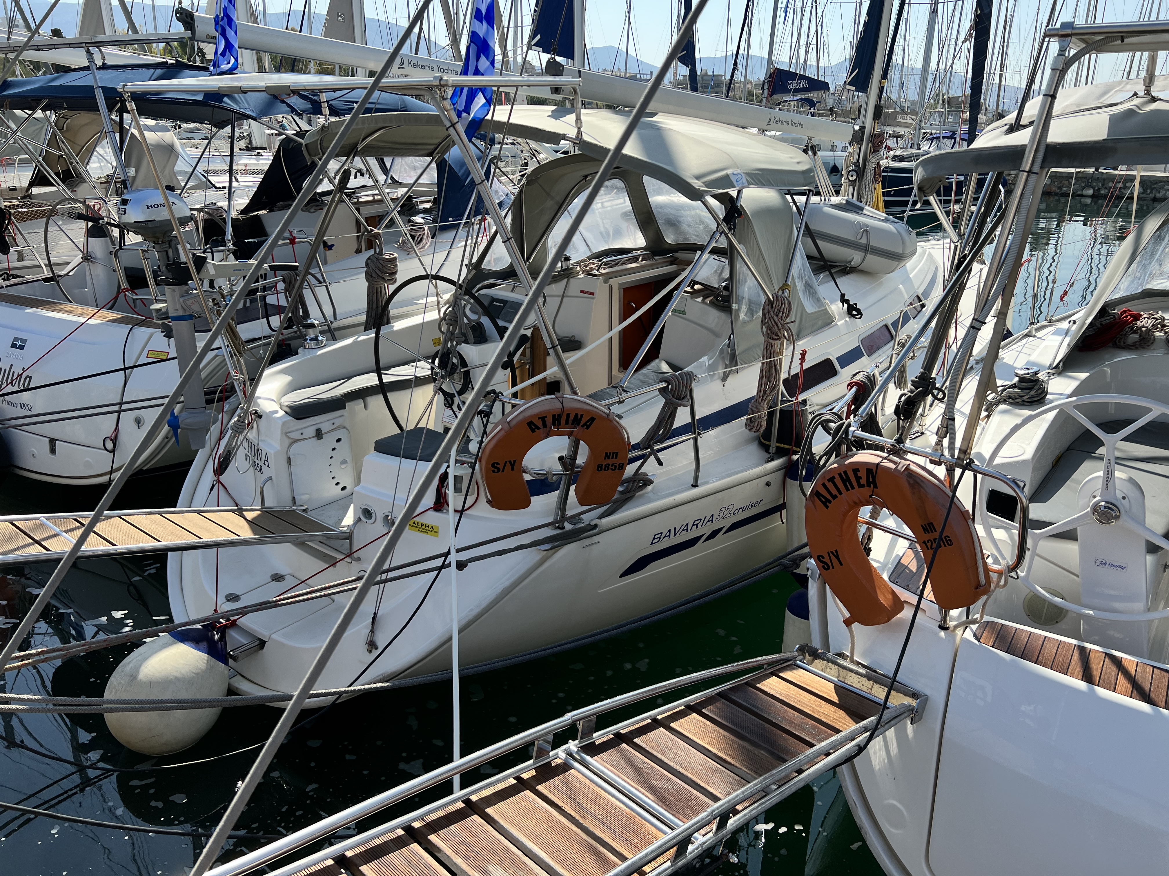 Unsere Bavaria 32 (Athina) war für ihre 16 Jahre sehr gut in Schuss. Alles funktionierte (nun ja - der Mülleimer ... aber das kennt man ja auch von jüngeren Yachten). Wen das Klettern um das Steuerrad und der Auf- und Abbau des Tisches in der Plicht nicht stört, ist mit dem Boot gut bedient.