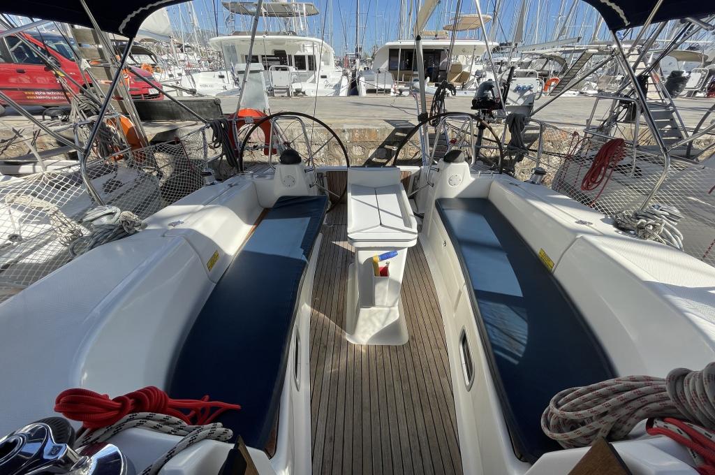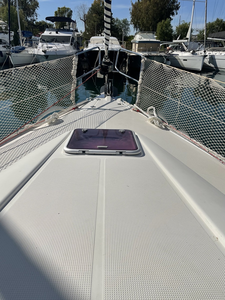 | Outside | 220 V-Landanschluss, Anker mit Kette, Biminitop, Bootshaken, Cockpitdusche, Cockpitlautsprecher, Cockpitpolster, elektr. Ankerwinsch, Festmacherleinen, Solaranlage, Sprayhood, Wantenschneider |