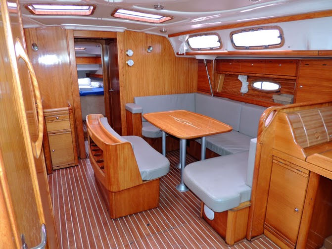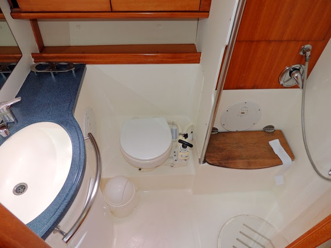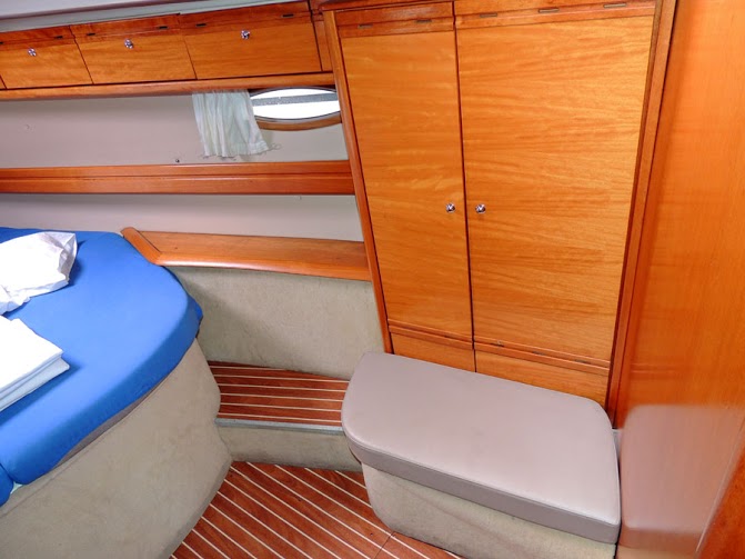| Outside | Anker mit Kette, Badeleiter, Biminitop, Cockpitdusche, Cockpitlautsprecher, Cockpittisch, elektr. Ankerwinsch, Fender, Festmacherleinen, Gangway, Solaranlage, Sprayhood, Teak im Cockpit |