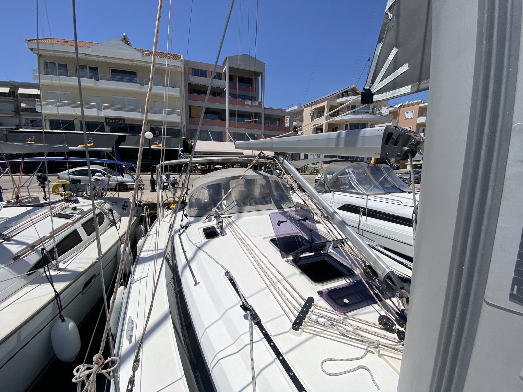 Kurze Anreise vom Flughafen Preveza. Liegeplatz des Bootes direkt mit dem Auto erreichbar. Einkaufmöglichkeit auf gegenüberliegender Seite des Häuserblocks, wo die Verkäuferin selbst den Transport zum Boot übernahm!
