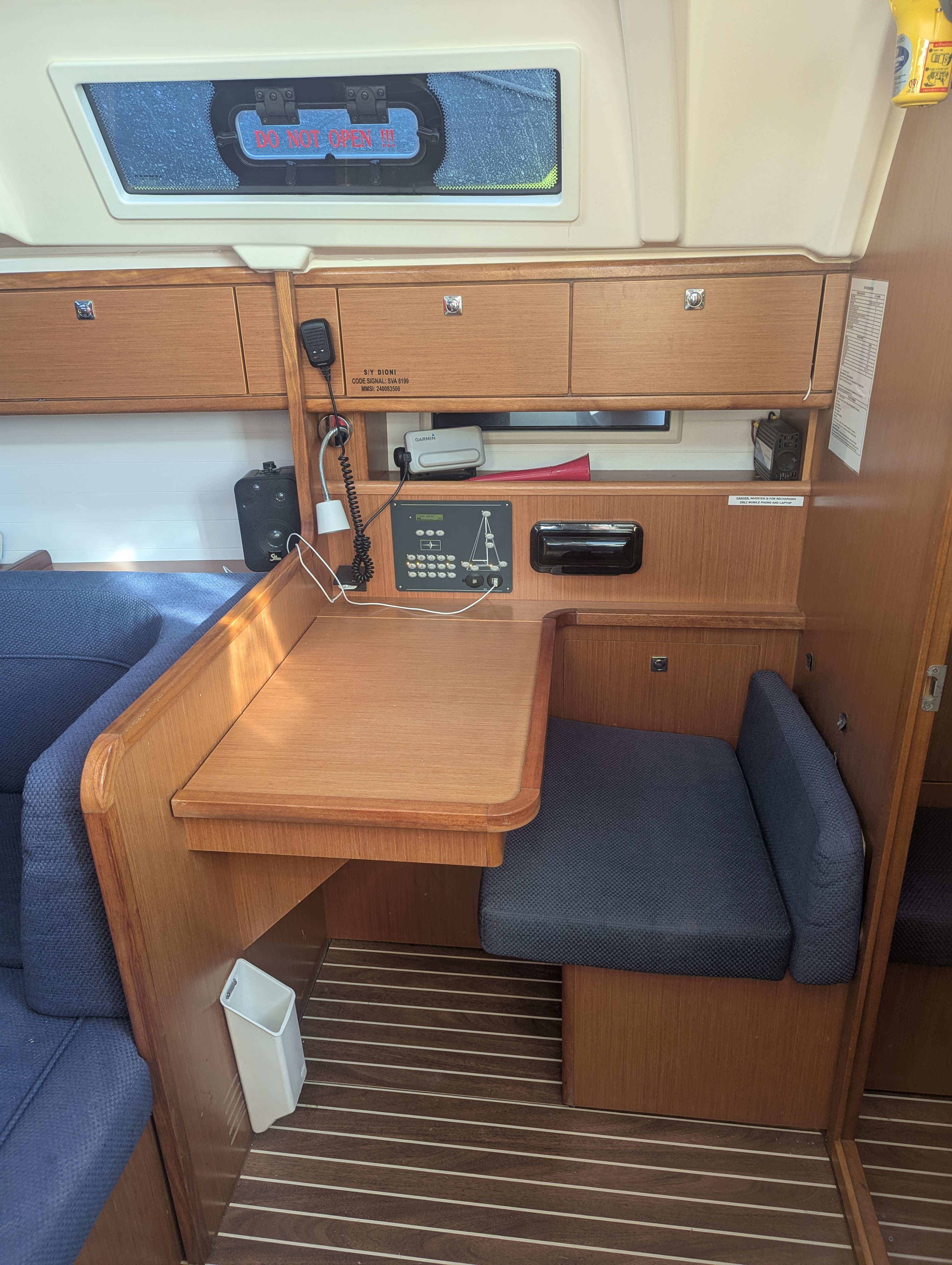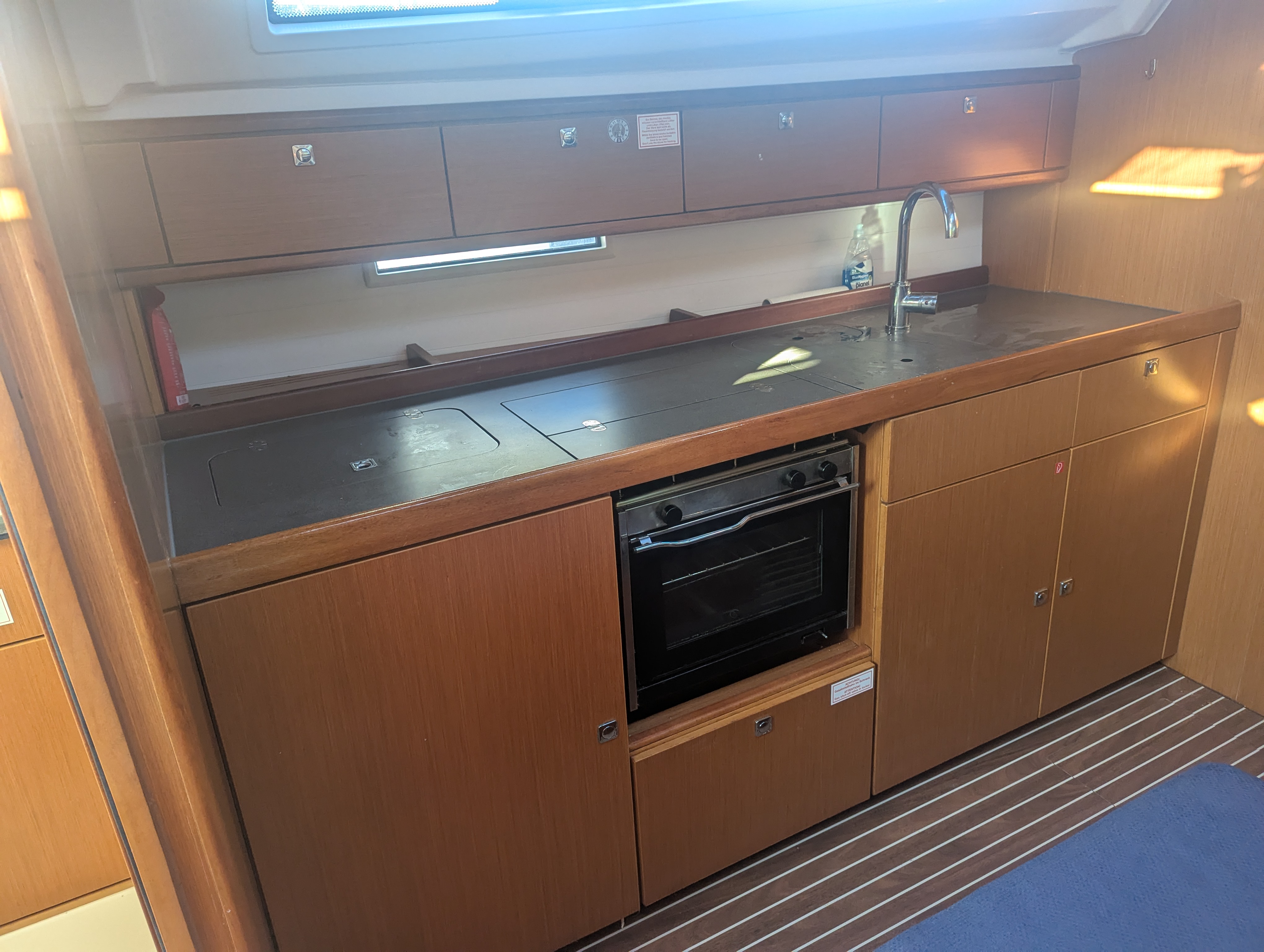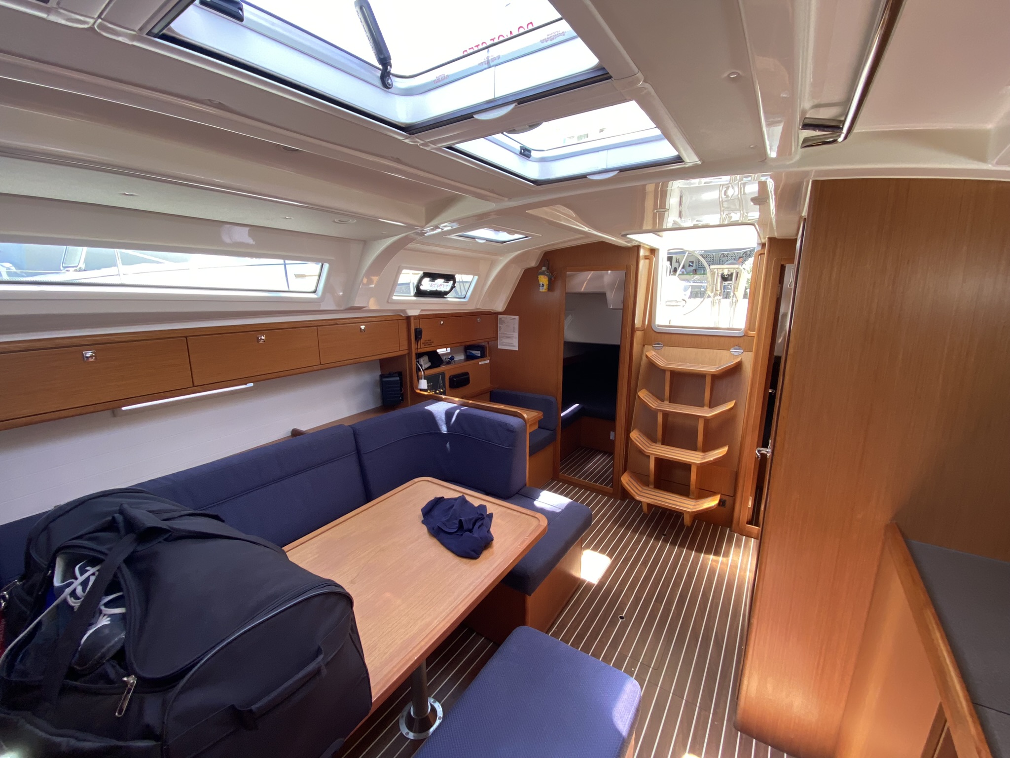 Boot in für das Alter in sehr gutem Zustand. Es ist zu vermuten, dass der Eigner das Boot regelmäßig selbst benutzt, da vieles für den Erhalt getan wurde (neues Großsegel, etc) und verschiedene Extras vorhanden sind (EPIRP, elektrische WC Spülung, etc.)