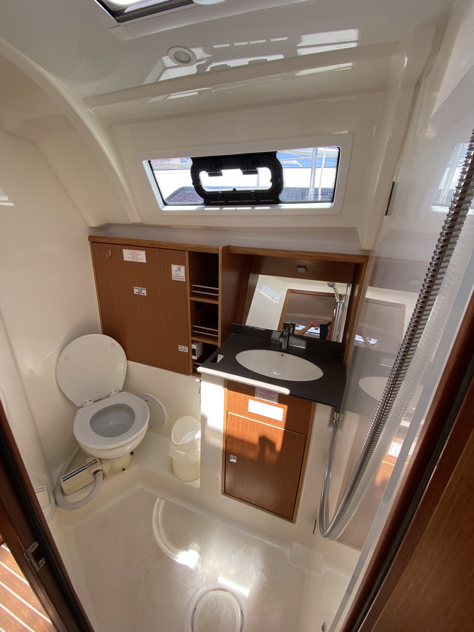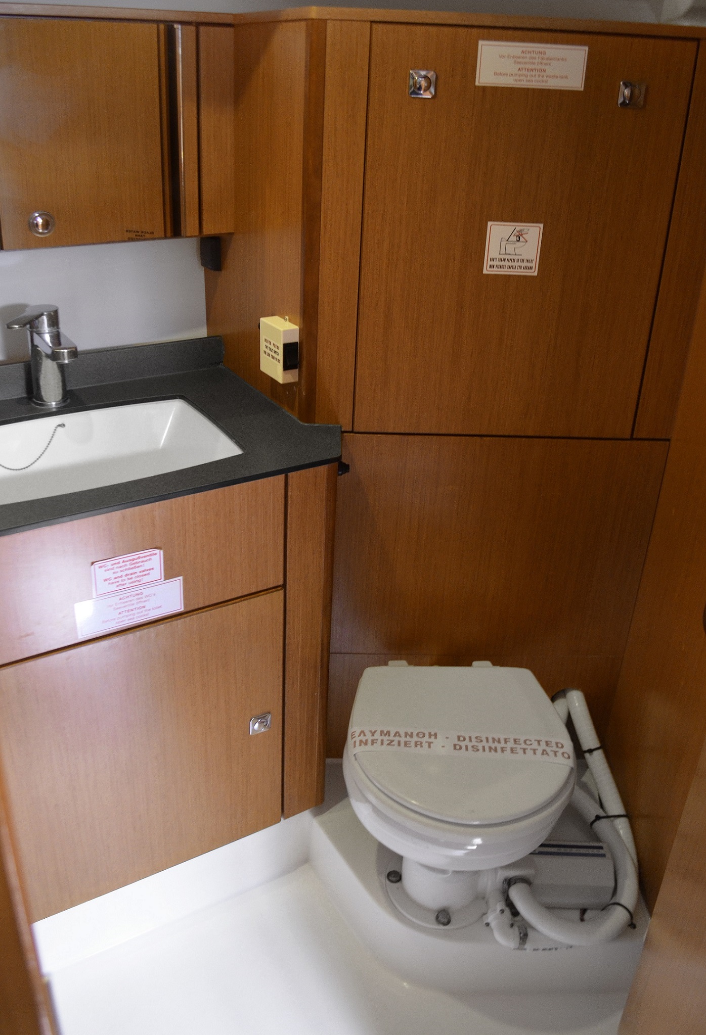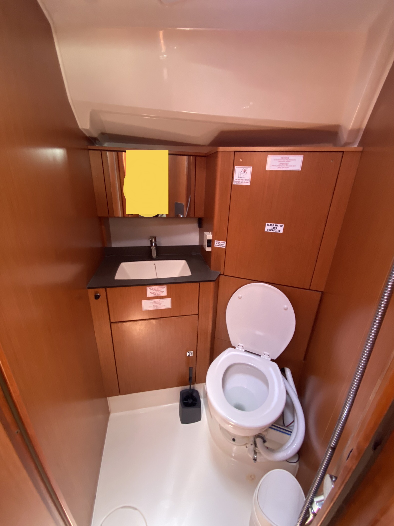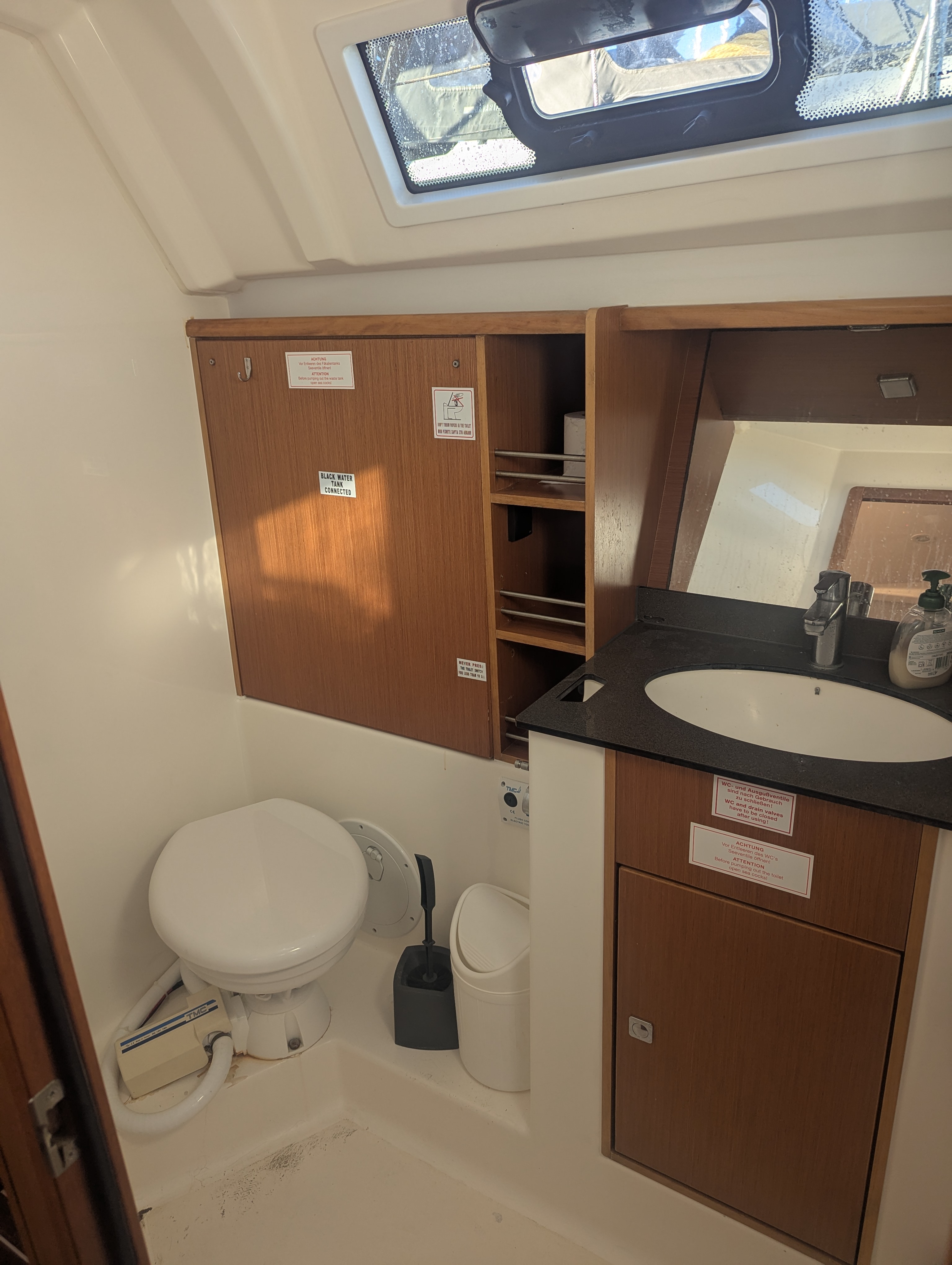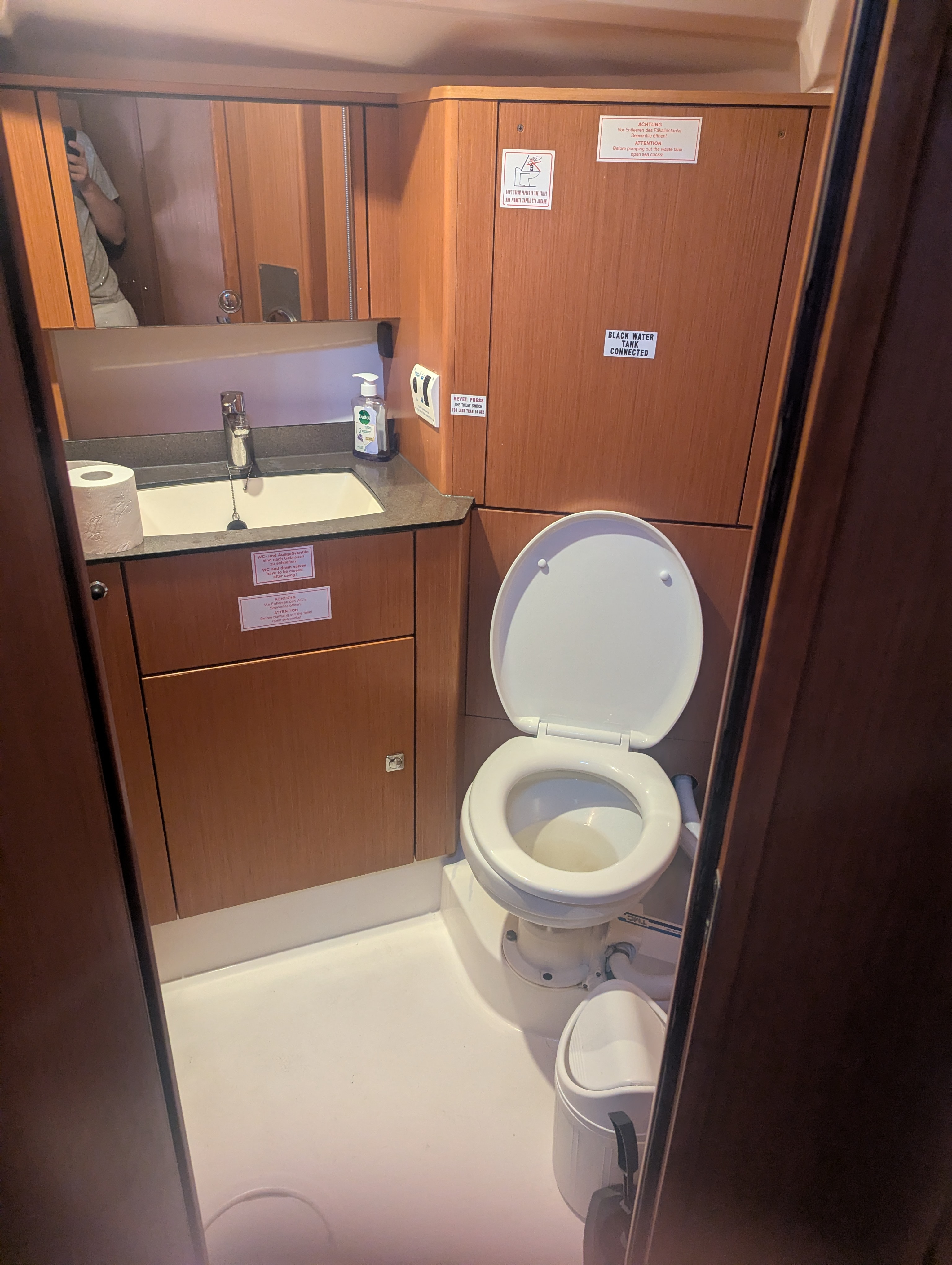 Wir hatten ein Problem mit der vorderen Toilette. Diese ist komplett übergelaufen (ca. 10min nach dem letzten Toilettengang). Zum Glück haben wir das Plätschern relativ schnell gehört und konnten es durch Öffnen aller Seeventile und betätigen der Spülung stoppen. Laut Vercharterer war wohl der Fäkalientank voll. Ein Rückfluss ins Boot ist aber aus unserer Sicht eine Katastrophe!