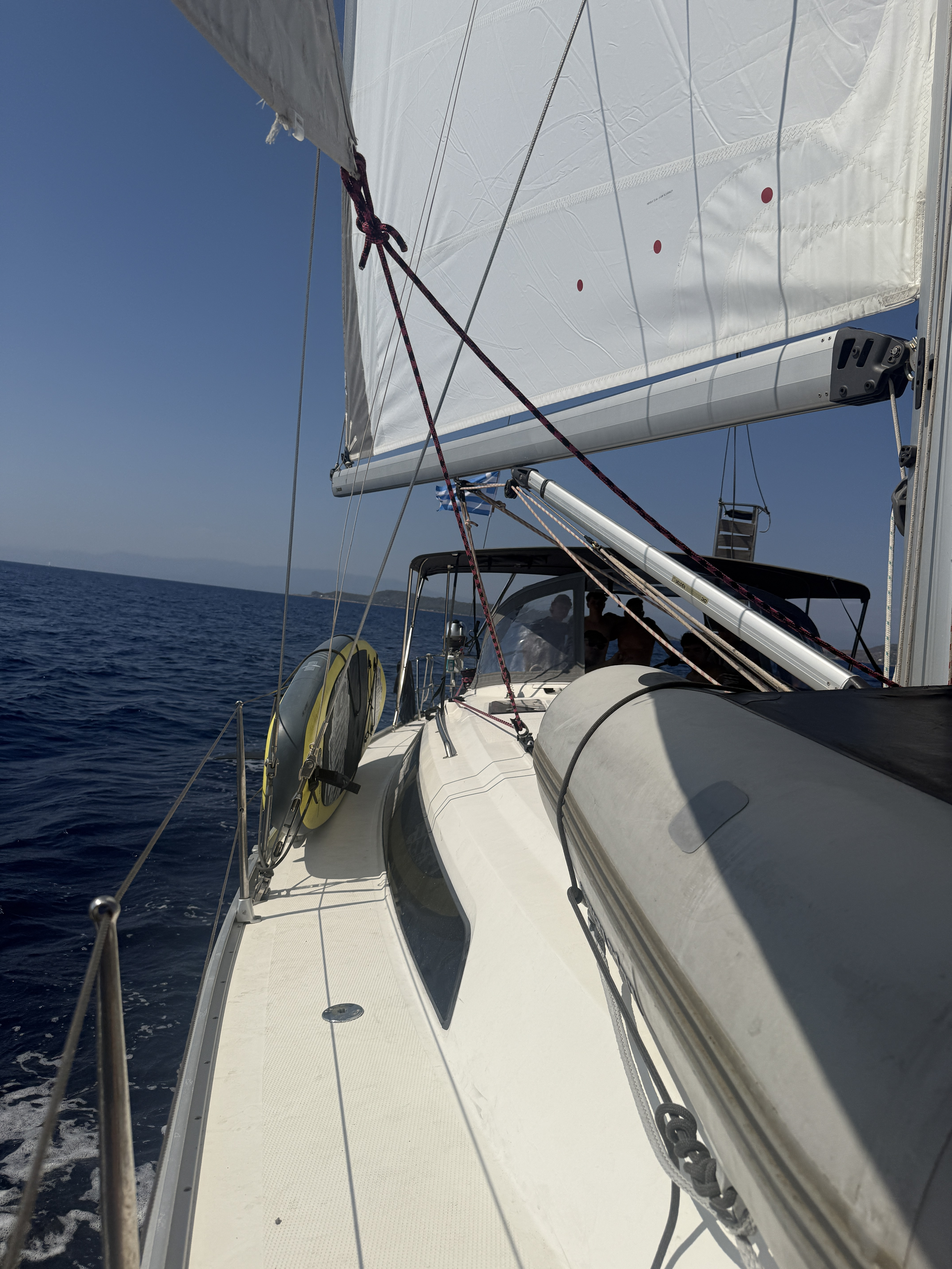 Die Fock ist leider sehr klein, nur etwas größer als eine "Selbstwendefock". Da wir mit Kindern unterwegs waren, war uns die Performance aber nicht so wichtig.