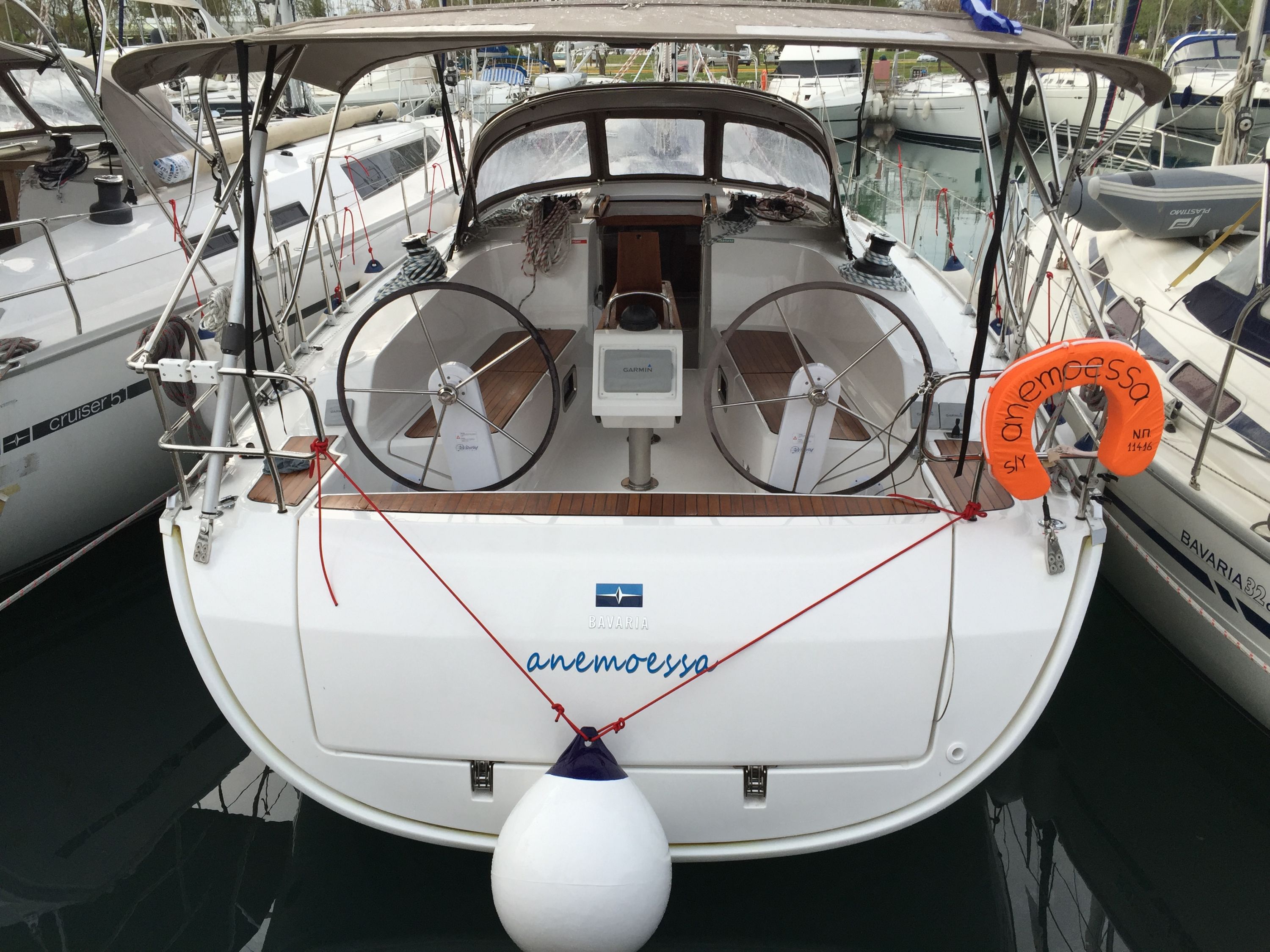 | Safety | Autopilot, Bootsmannstuhl, Bordapotheke, Bordwerkzeug, Bugstrahlruder, elektr. Bilgepumpe, Feststoffschwimmwesten, Feuerlöscher, Flaggen, Lifebelts, Motor-Ersatzteile, Nebelhorn, Notsignale, Reparaturset für Beiboot, Reserve-Motoröl, Rettungsinsel, Rettungskragen, Schwimmleine, Taschenlampe, UKW-Funk, Zweitanker |
