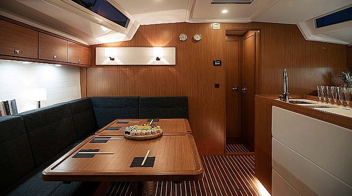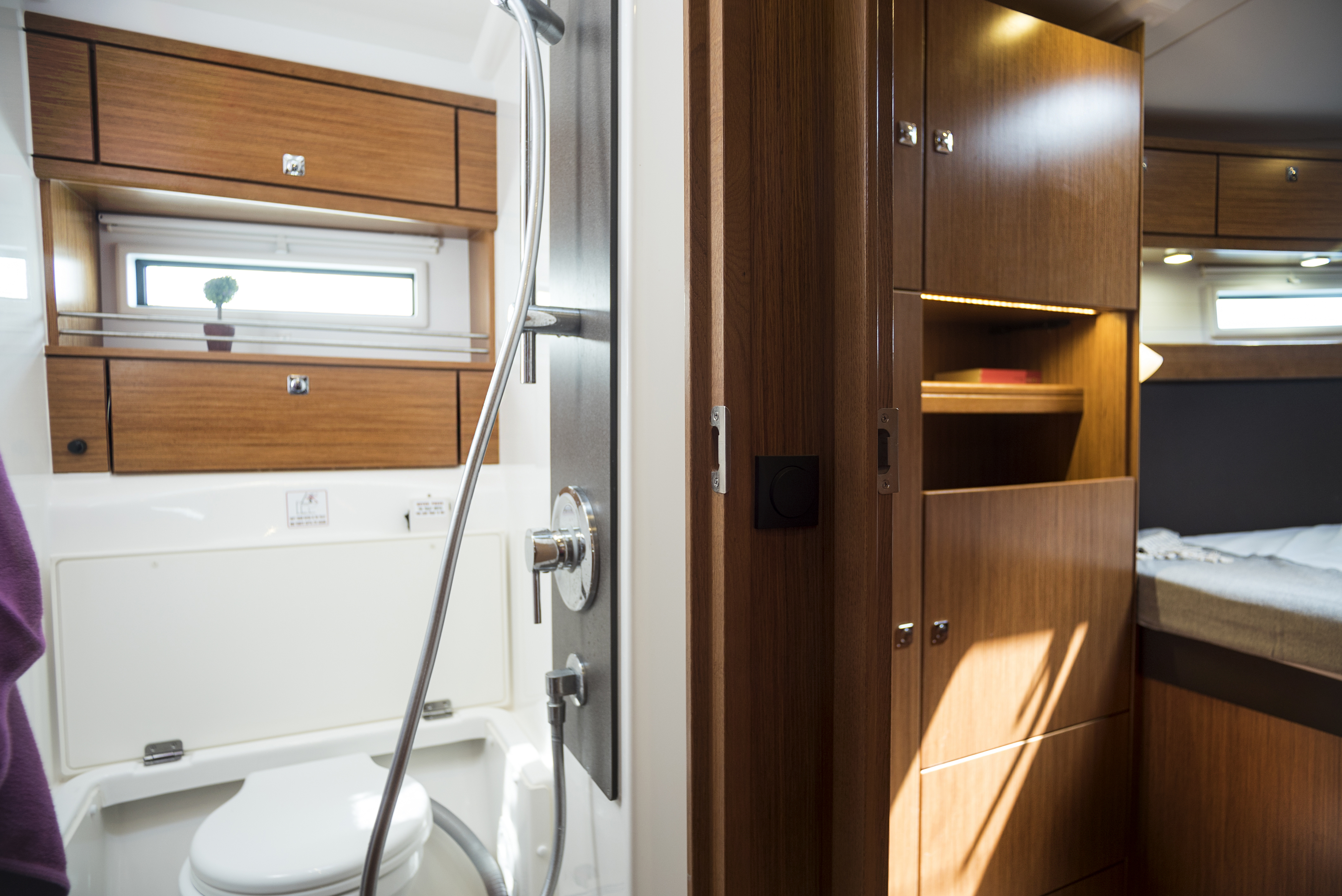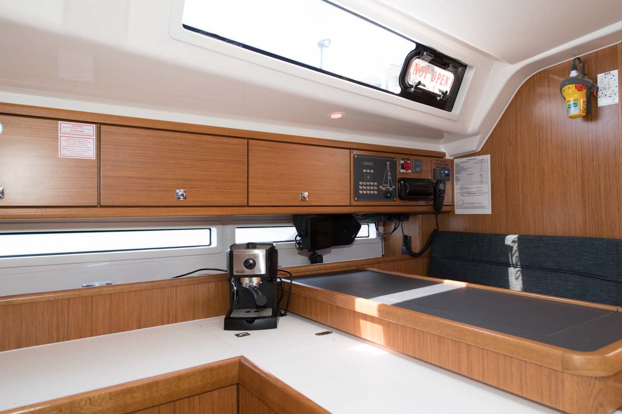 | Safety | Autopilot, Bordapotheke, Bordwerkzeug, Bugstrahlruder, Feststoffschwimmwesten, Feuerlöscher, Flaggen, Navigationslichter, Nebelhorn, Notpinne, Notsignale, Radarreflektor, Reserve-Motoröl, Rettungsinsel, Rettungskragen, Sicherheitsgurt, Signalspiegel, Taschenlampe, UKW-Funk |