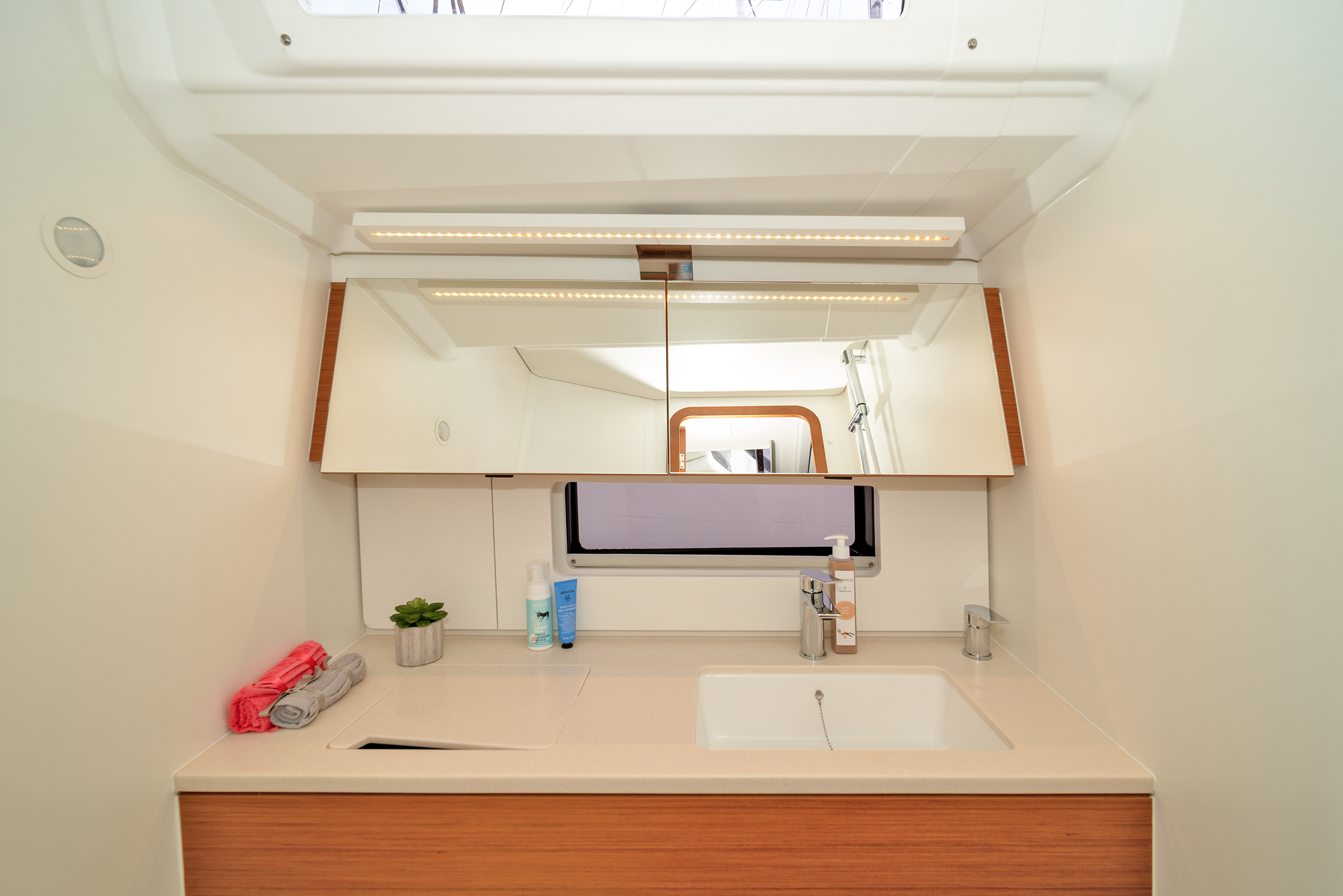 | Outside | 220 V-Landanschluss, Cockpitkühlschrank, Gangway, Grill, Teak im Cockpit |