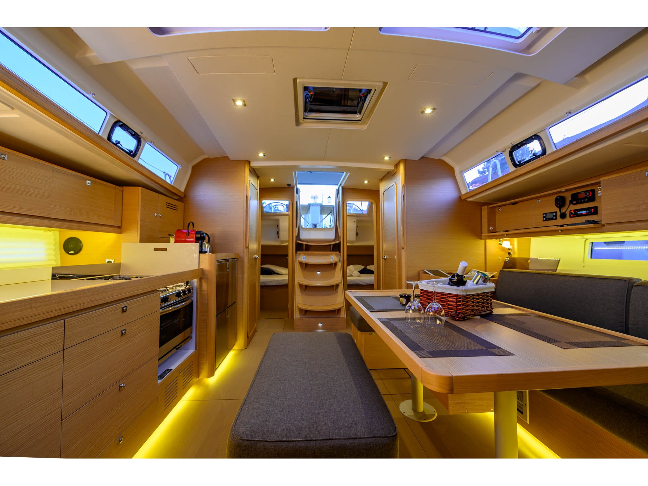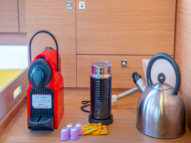 | Inside | 2. Kühlschrank, Generator, Heizung, Inverter 12V/220V, Klimaanlage (ohne Landstrombedarf), Nespresso-Maschine, Radio mit CD und MP3, Salontisch absenkbar, Warmwasser |