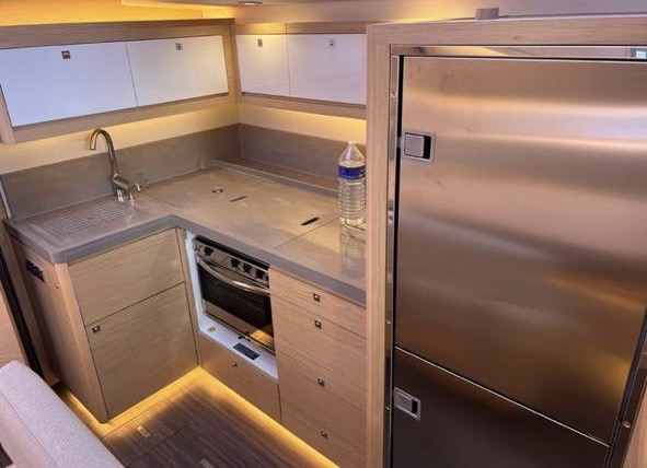 | Outside | Badeleiter, Badeplattform, Biminitop, Cockpitdusche, Cockpitpolster, Cockpittisch, Grill, Schnorchelausrüstung, Solaranlage, Sprayhood |